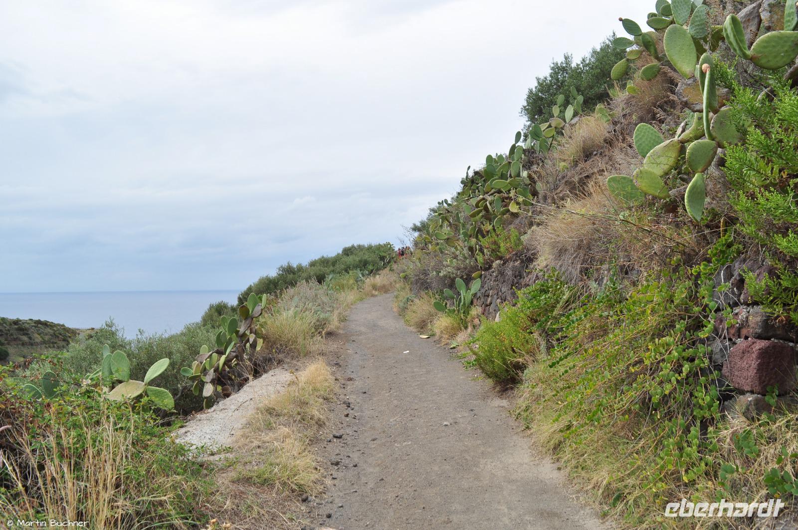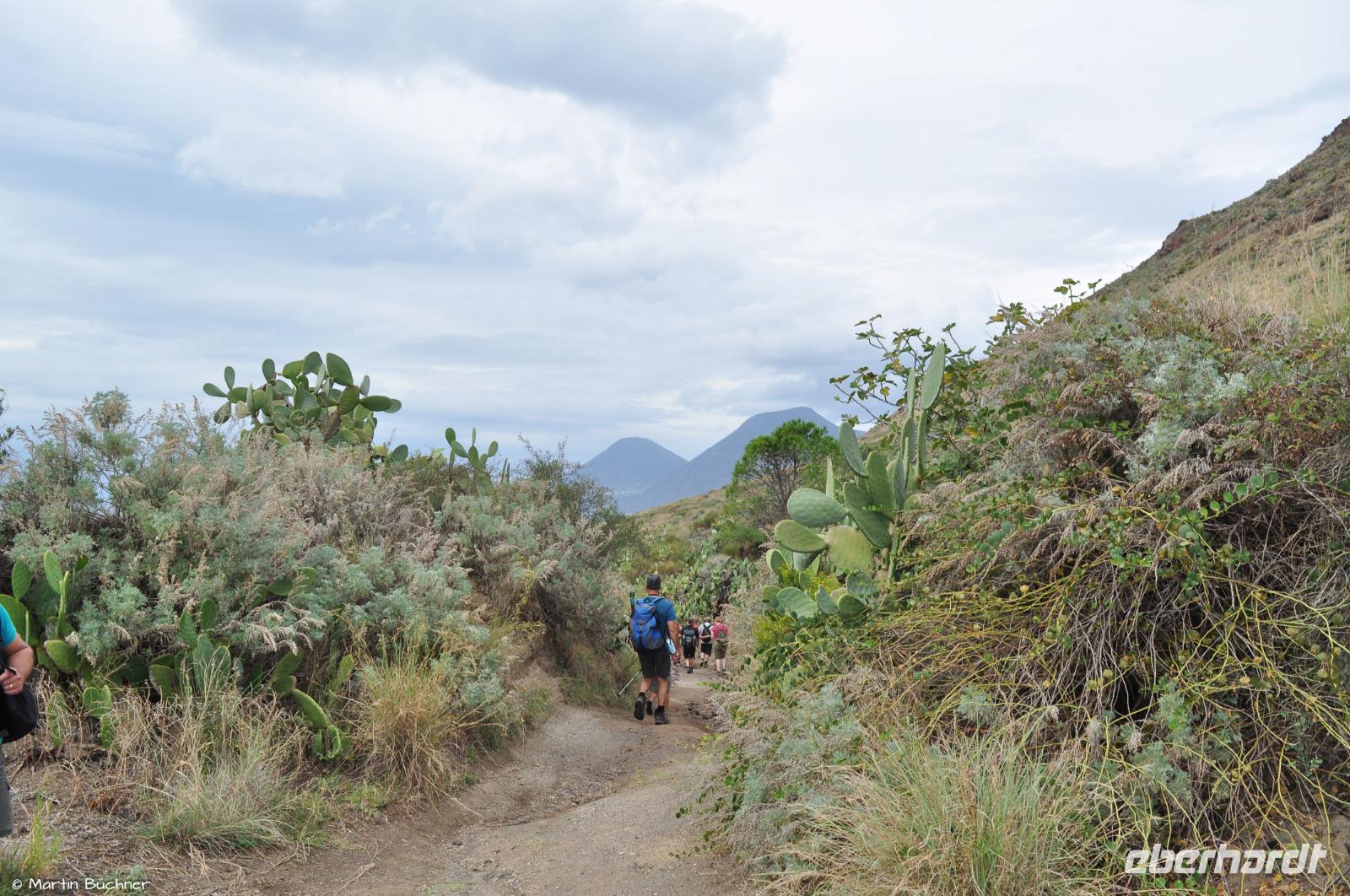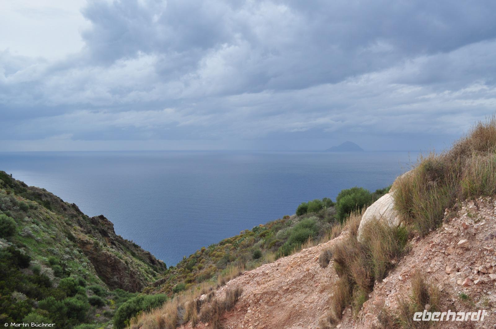 Am Horizont liegen Alicudi und Filicudi, später dann auch die Insel Salina. Unsere Wanderung verläuft durch ein UNESCO Weltnaturerbe. Unser Weg verläuft immer oberhalb der rauen Steilküste.