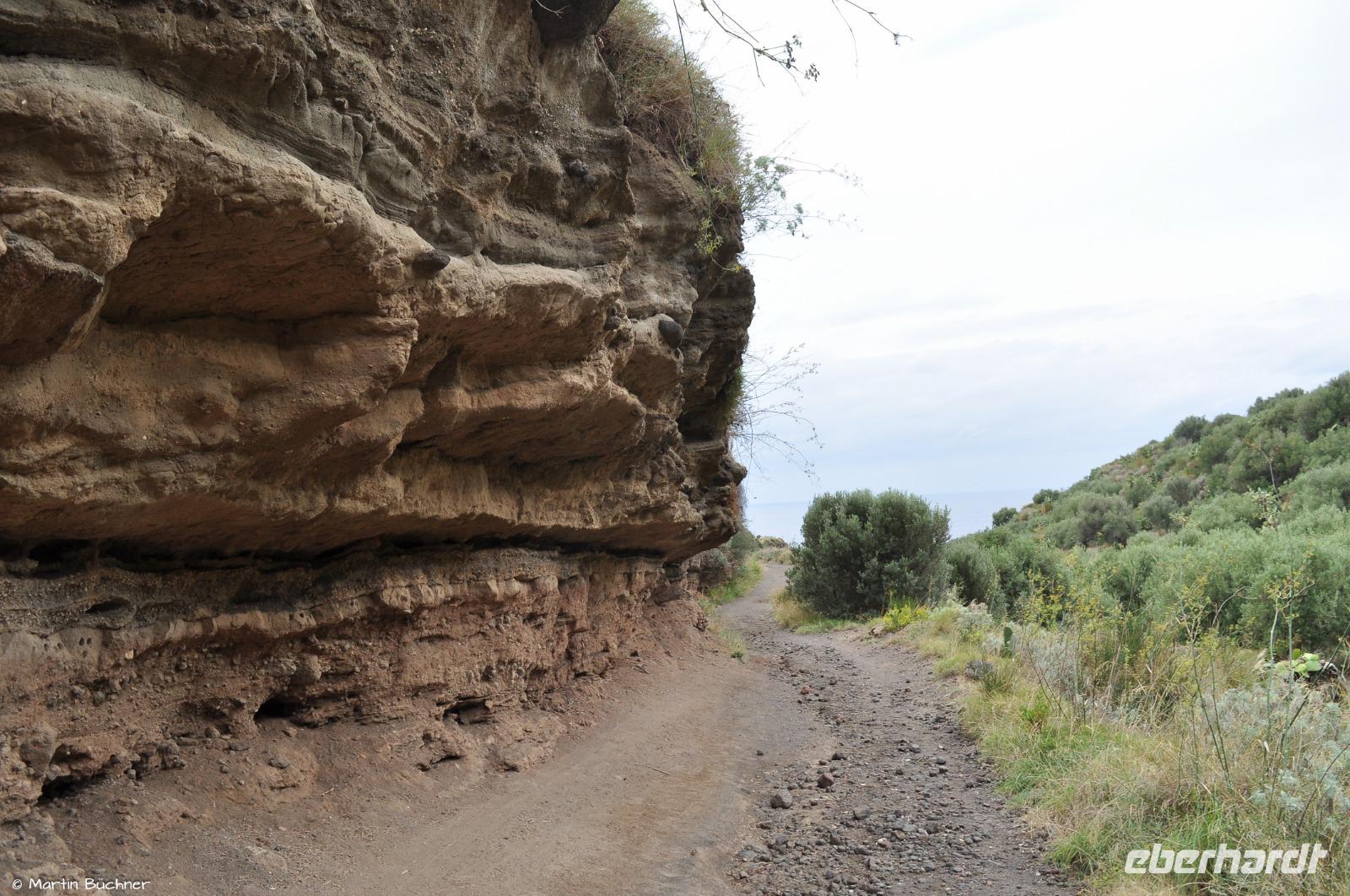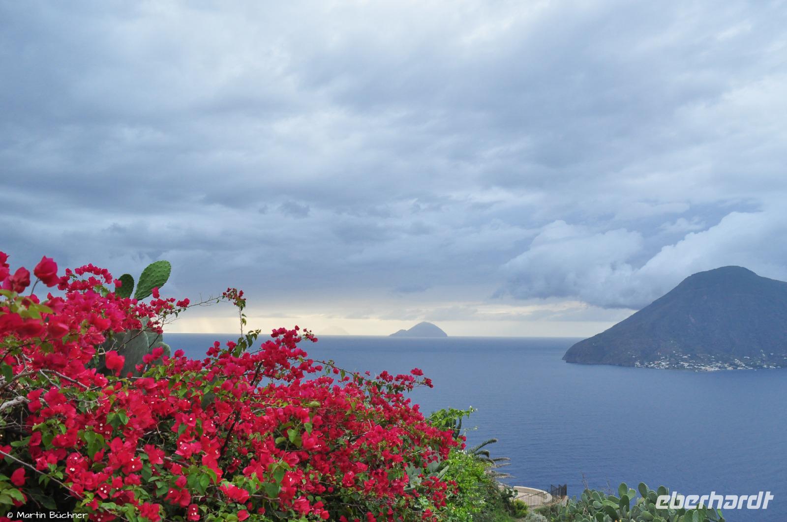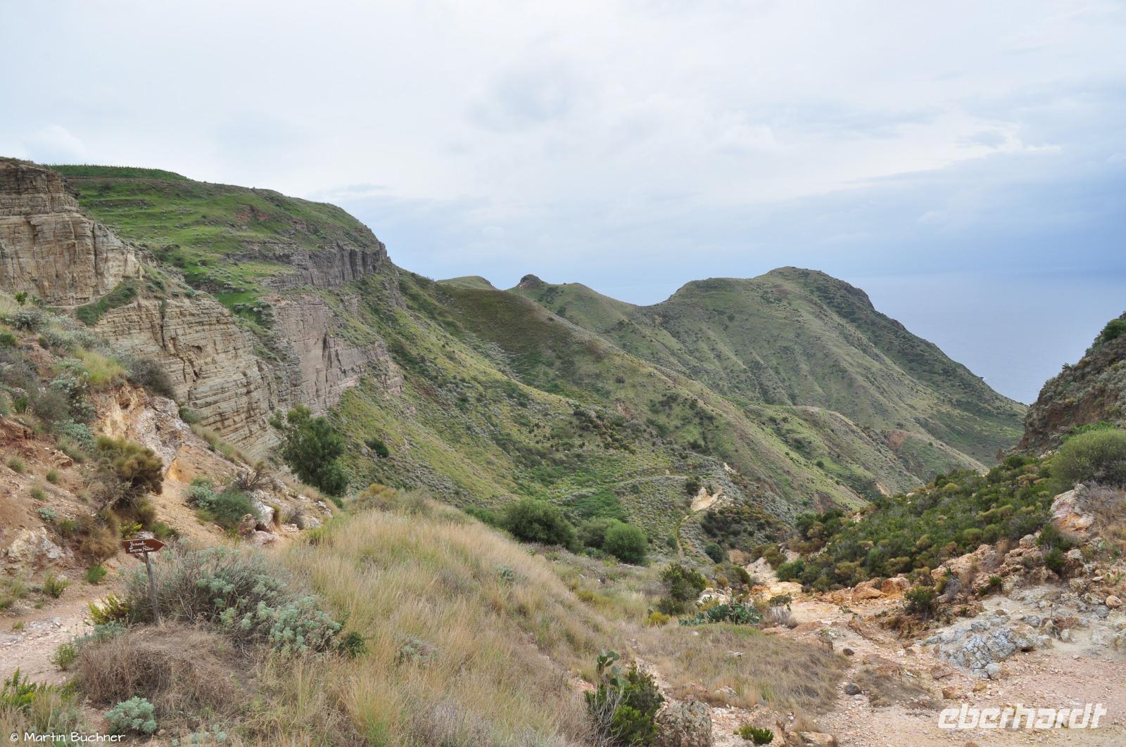 Am Horizont liegen Alicudi und Filicudi, später dann auch die Insel Salina. Unsere Wanderung verläuft durch ein UNESCO Weltnaturerbe. Unser Weg verläuft immer oberhalb der rauen Steilküste.