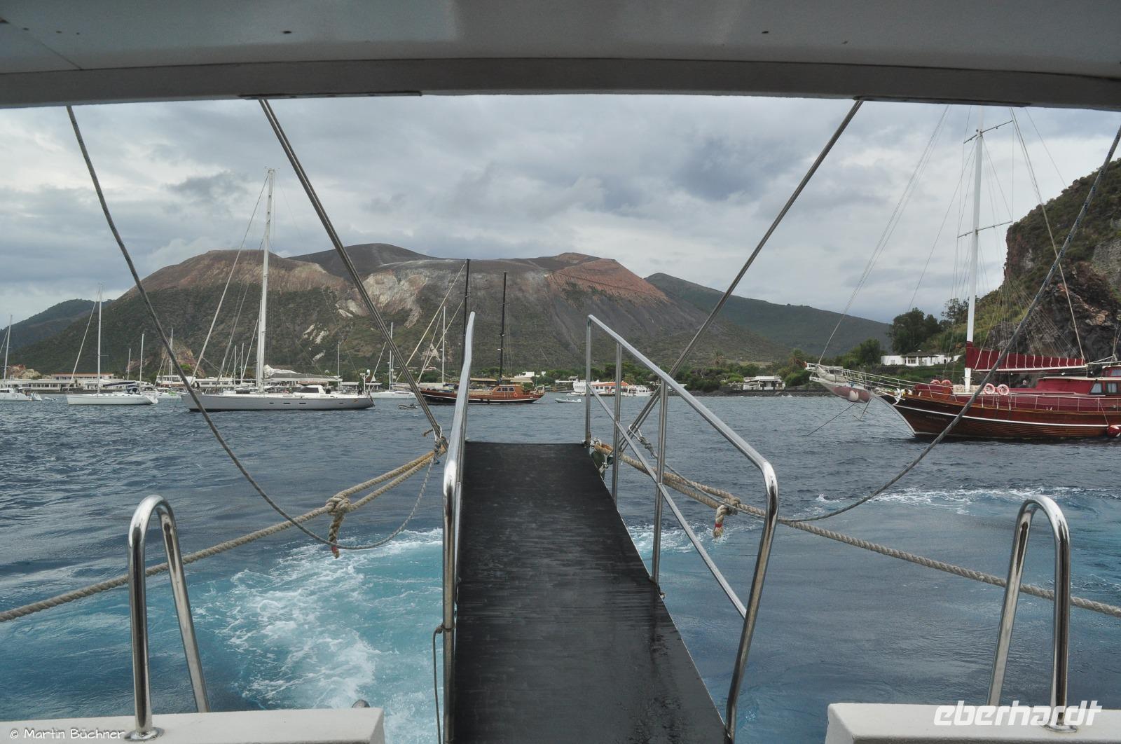 Am Vormittag sieht das Wetter noch vielversprechend aus, es geht es hinüber zur Insel Vulcano. Die Rückfahrt muss aufgrund starker vorhergesagter Winde bereits vorverlegt werden.
