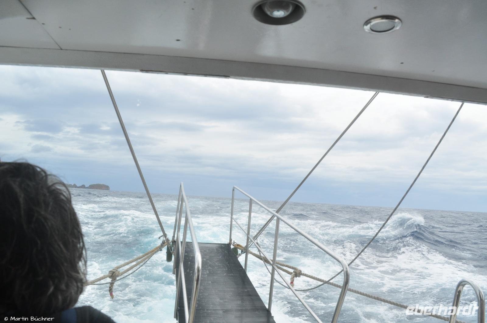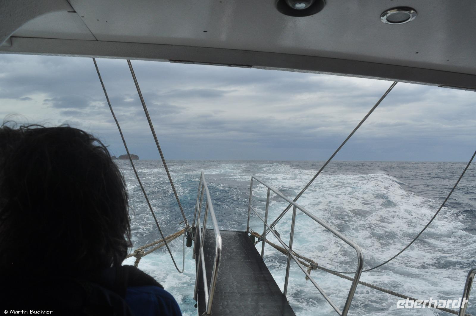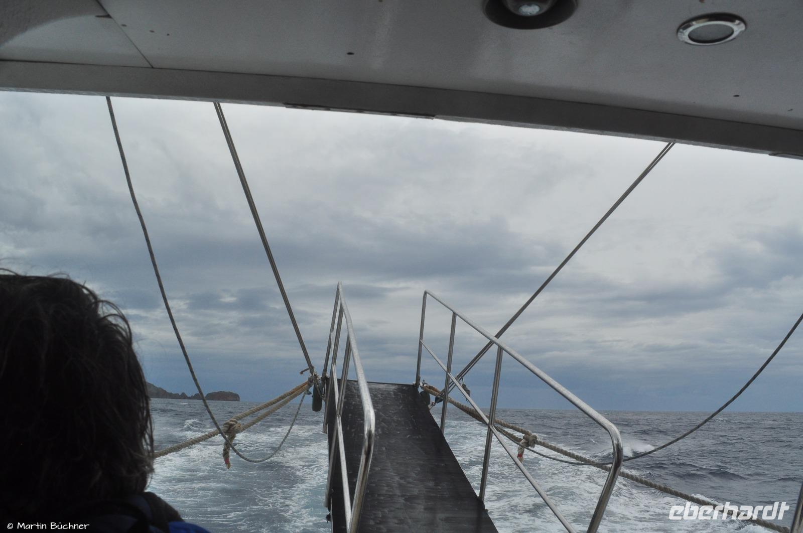 Der Skipper erwartet uns sehnsüchtig. Nach seinem Gespür wäre am liebsten noch eher nach Lipari zurückgefahren. Der Wind ist stürmisch, die See ist stark aufgewühlt.