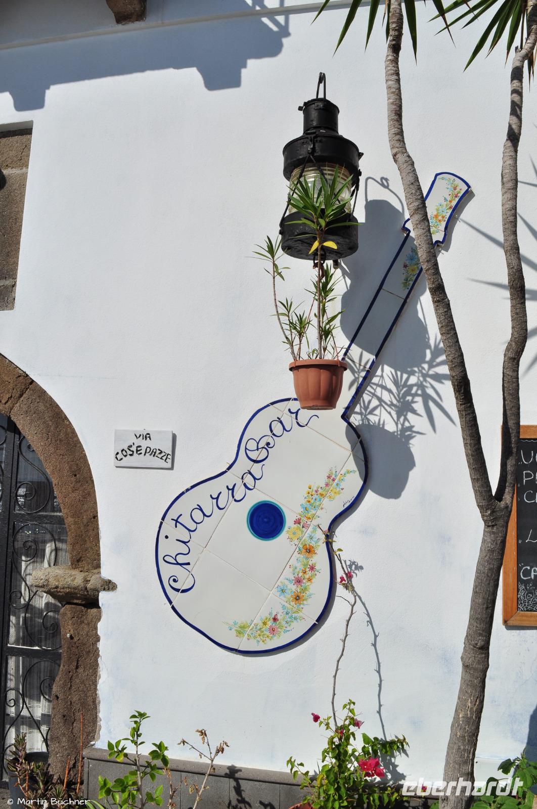 Nach dem Abendessen haben wir eine weitere Einladung, diesmal in der Chitarra Bar, sie liegt direkt an der Marina Corta. Die bar und ihr Besitzer sind weit über die Grenzen Liparis hinaus bekannt, hier spielt und verzaubert Nikola Merlo & Freunde seine Zuhörer.