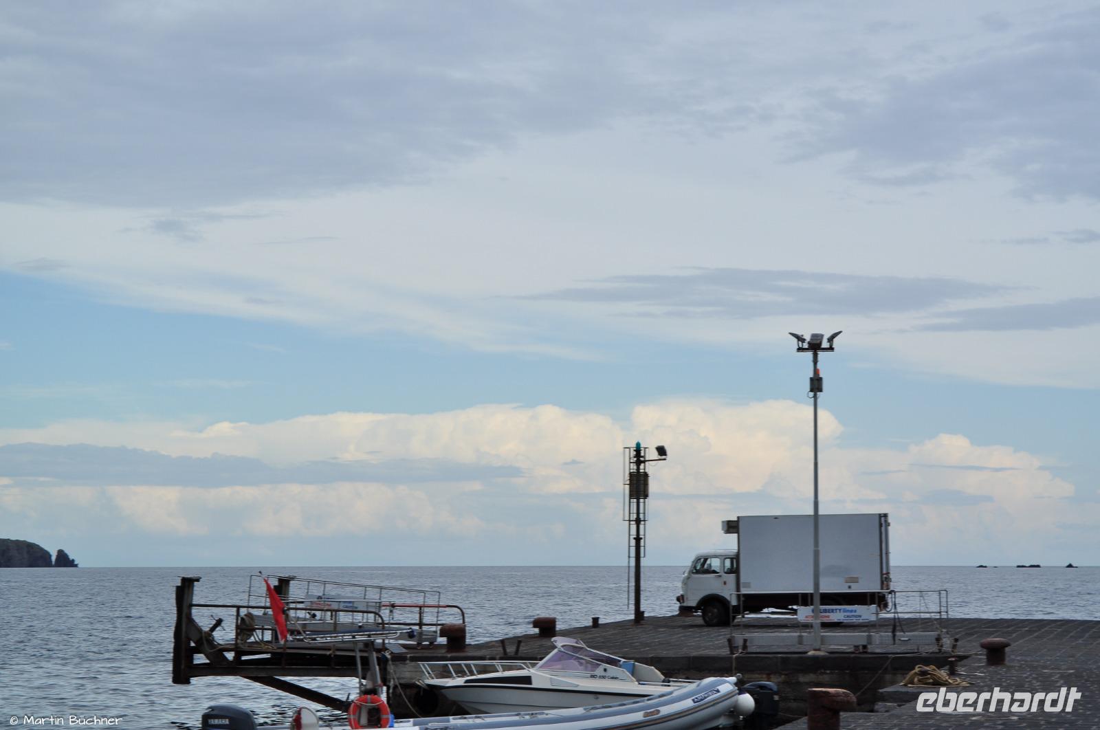 Wir sind dankbar, dass es das Wetter zugelassen hat die Insel Stromboli zu erreichen. Nun erfasst und eine intensive Kaltfront. Sie bringt Gewitter und starke Blitzschläge in unmittelbarer Umgebung. An einen Aufstieg zur 400-Metermarke mit dem Blick auf die berühmte Sciara del Fuoco ist heute nicht zu denken.