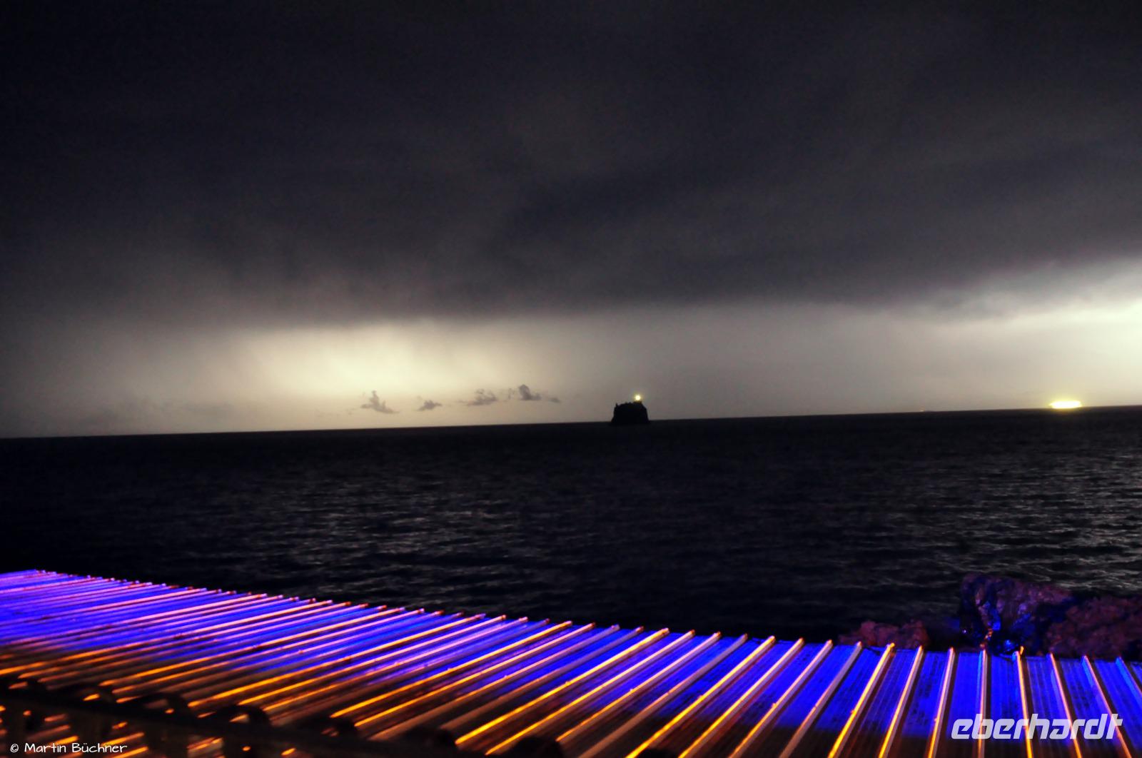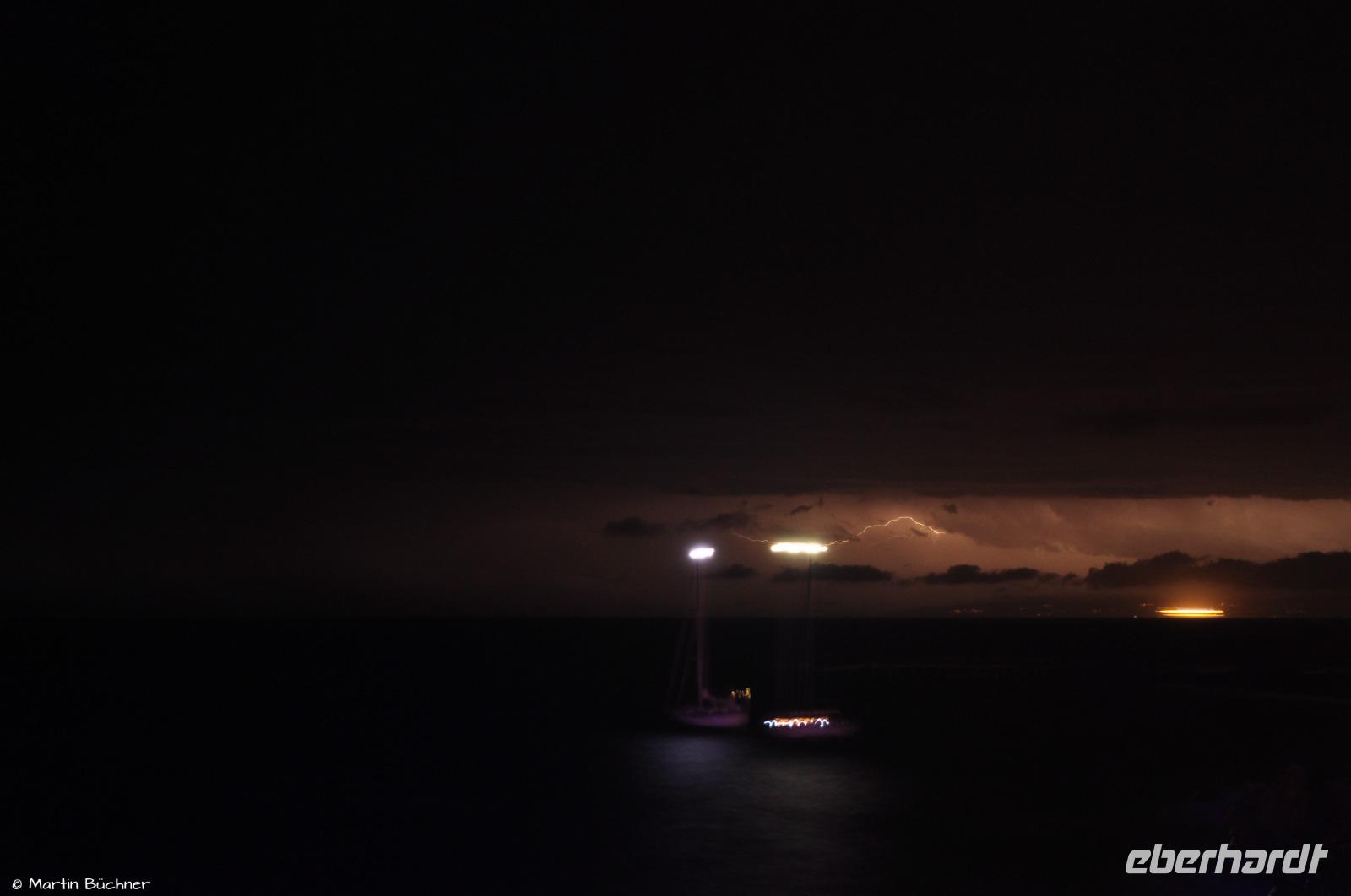 Statt atemberaubender Stromboli-Vulkan-Lightshow gibt es heute nun eine atemberaubende Lightning-Show (lightning = engl. Blitz).