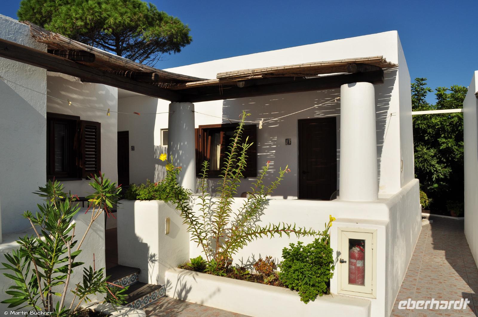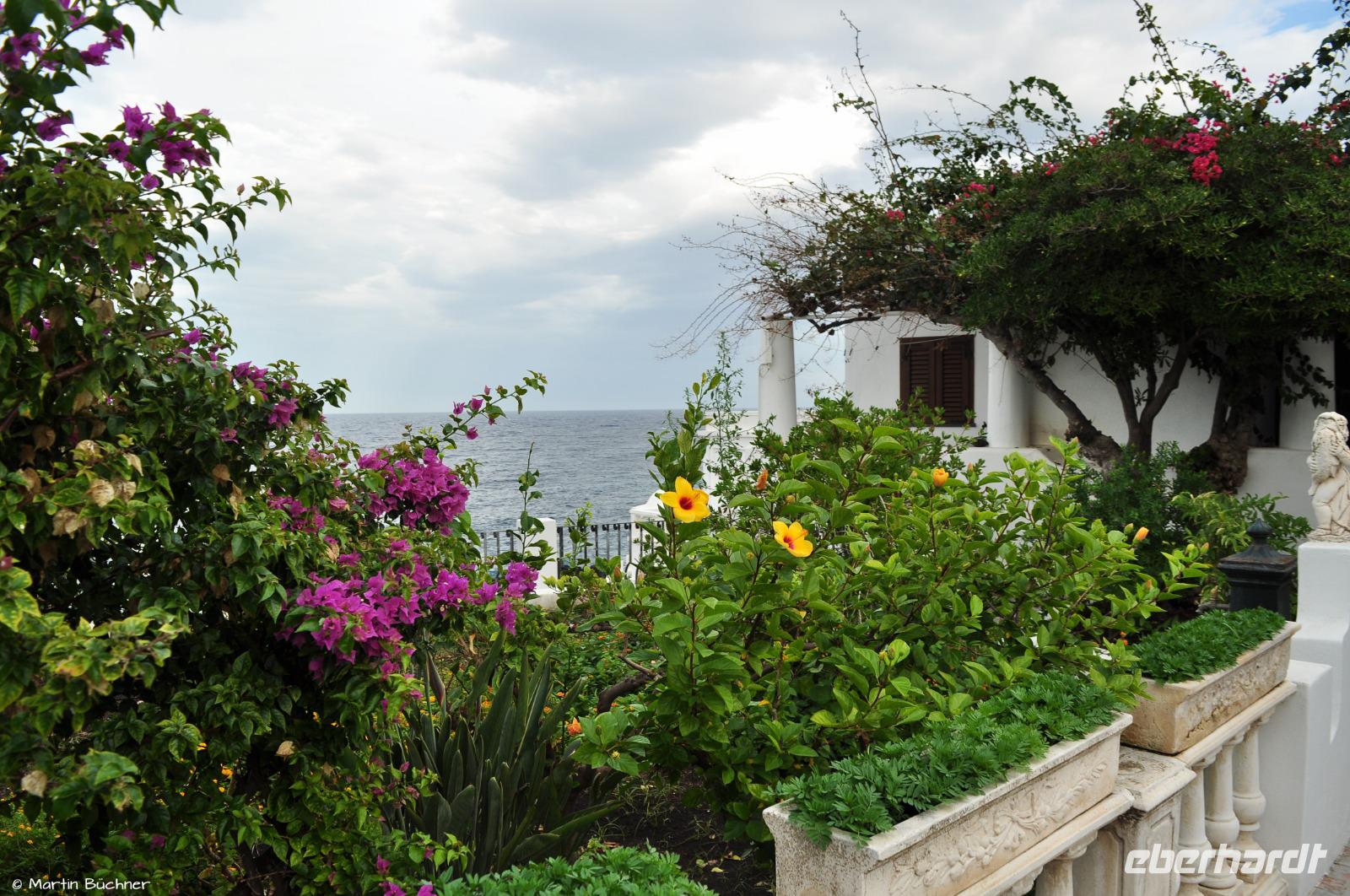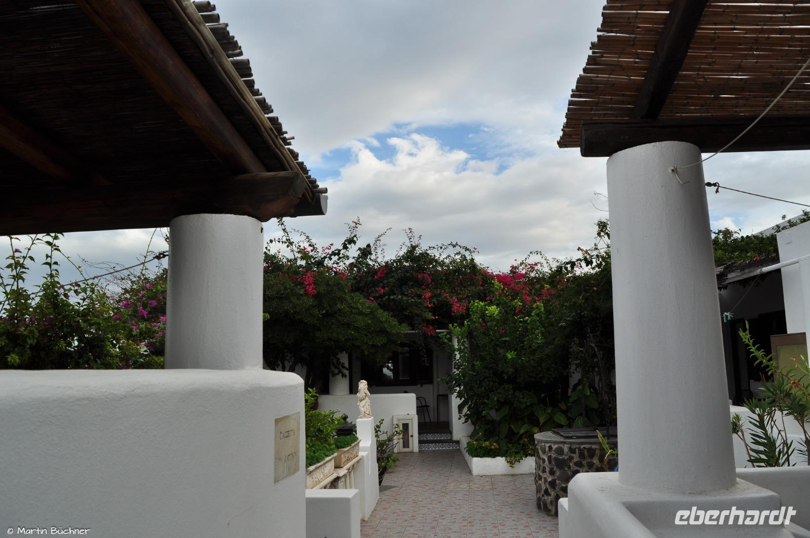 Nach einem ersten Eindruck von den kleinen Gassen von Lipari Stadt erreichen wir unser Hotel Rocce Azzure. Sehr hübsch in ruhiger Lage angelegt mit Blick auf das Meer.