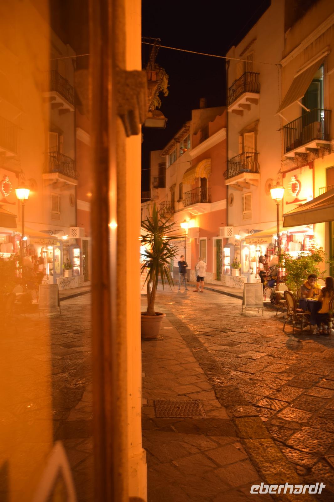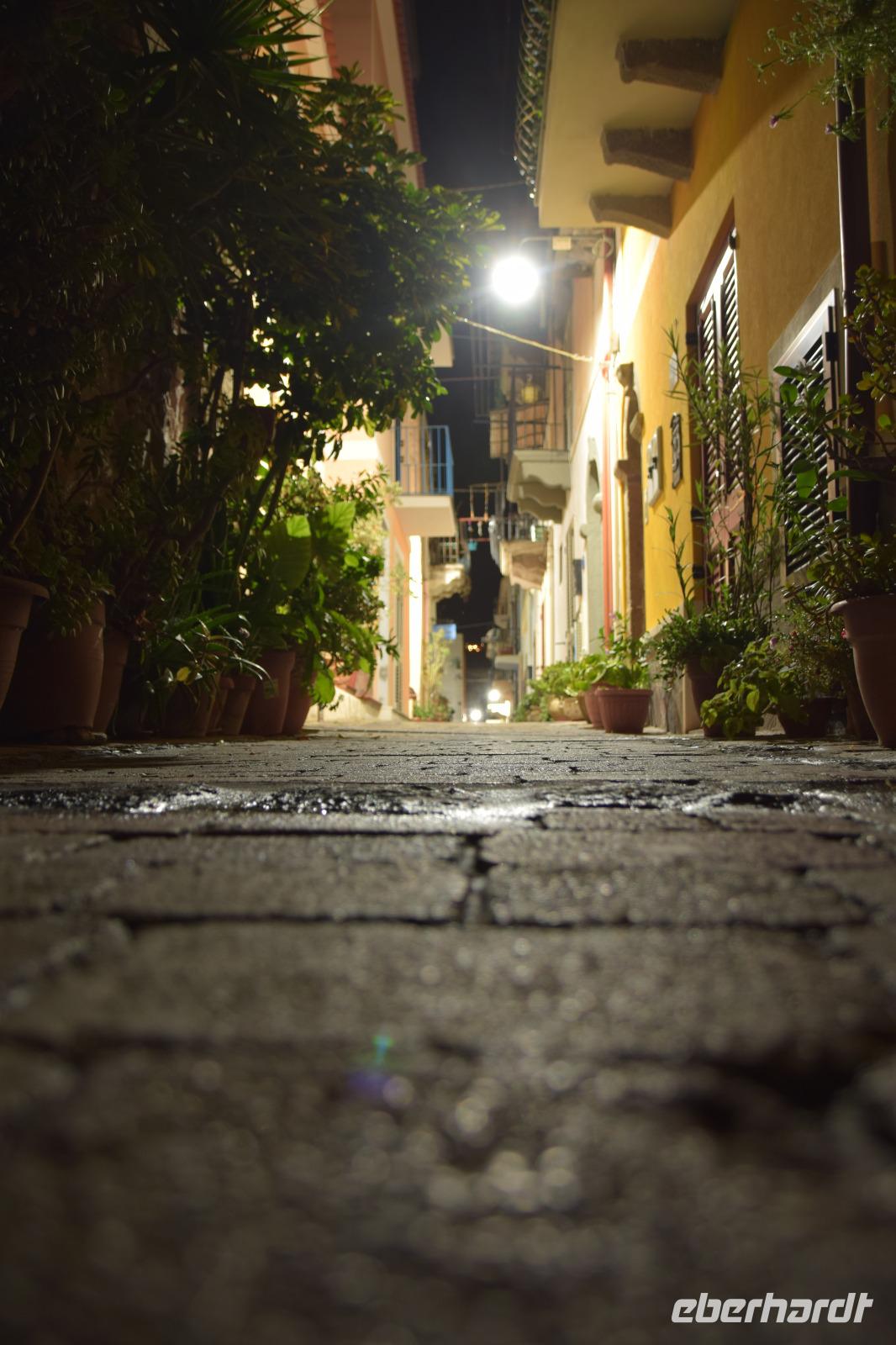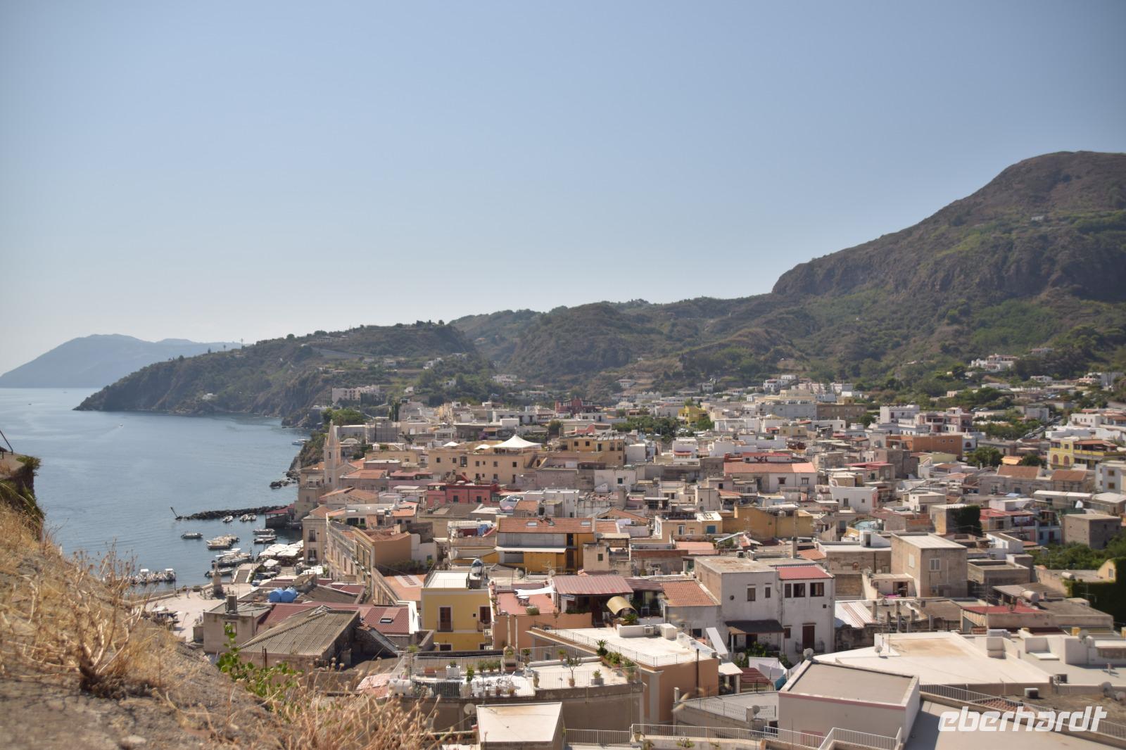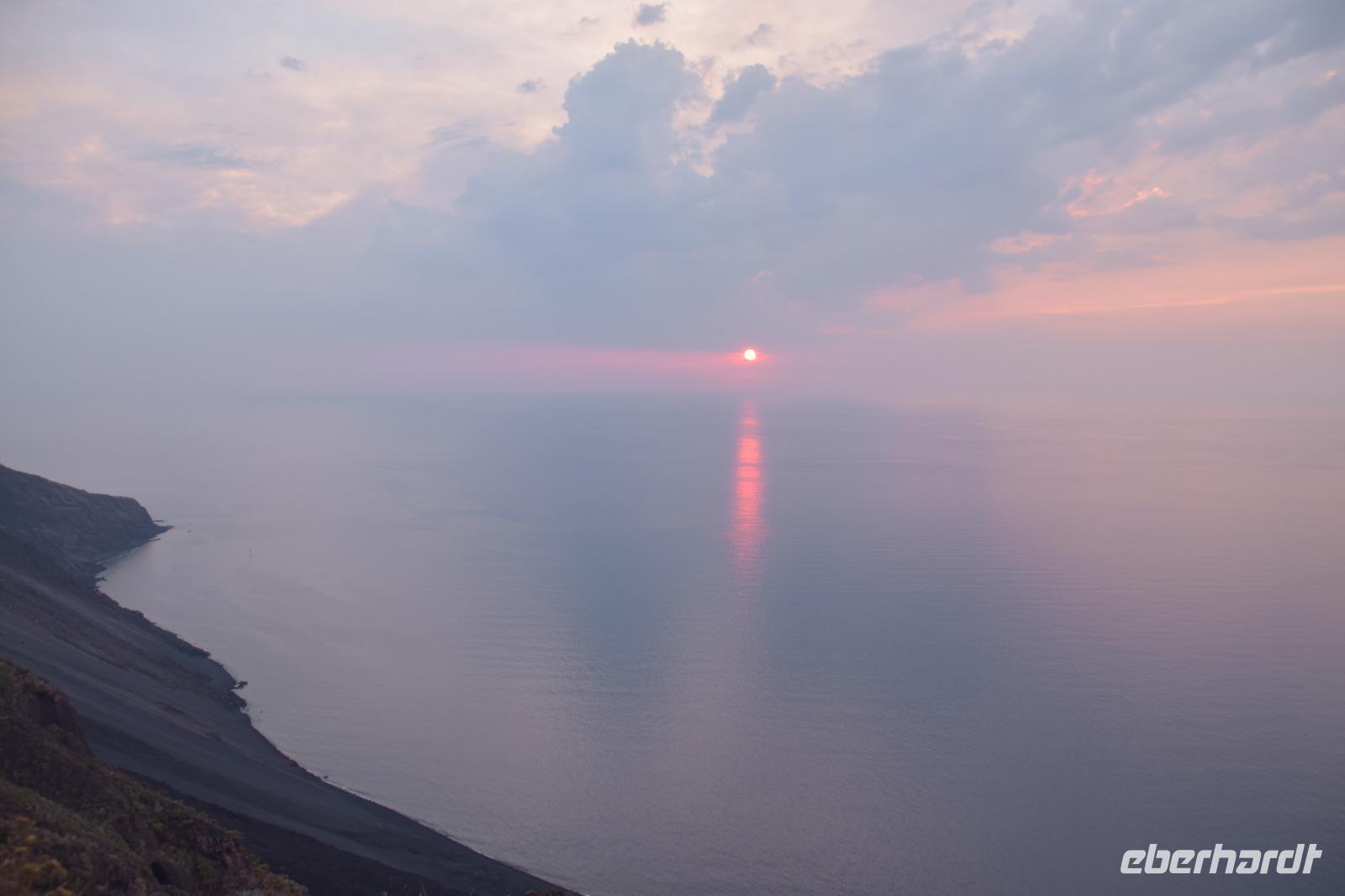 Eines der Highlights der Reise stand heute auf dem Tagesplan. Da unsere Wanderung entlang des Stromboli aber erst am Nachmittag anstand, konnten alle den Vormittag frei nutzen. Der strahlende Sonnenschein und die ruhige See lockten zu einem erfrischenden Bad. Zum Mittag trafen wir uns alle im Hotelrestaurant. Wieder waren wir, abgesehen von der Familie des Besitzers die einzigen Gäste und wurden dementsprechend kulinarisch verwöhnt. Um 16 Uhr startete dann die lang ersehnte Wanderung vom Kirchenvorplatz aus. Zuerst ein gutes Stück bergauf, bis wir etwa 400 Höhenmeter erreichten. Dann wanderten wir auf etwa einer Höhe bleibend entlang des Vulkans. Ab und zu passierten wir auch eine Schlucht. Der späte Nachmittag brachte auch viel Schatten, was das wandern noch angenehmer machte. Unser Ziel erreichten wir mit der einzigen noch begehbaren Aussichtsterrasse. Wir hatten großes Glück, denn wir waren fast die ersten dort und konnten deshalb schon so einige Eruptionen mit folgender Rauchwolke und herabfallenden Geröll in Ruhe bewundern. Je weiter der Abend voran rückte, desto voller wurde die Terrasse. Kurz nach Sonnenuntergang, welcher heute aufgrund von einigen Wolken etwas verhalten war, entschieden wir uns zu unseren Abendessen im alten Observatorium zu gehen. Hier begann das wahre Spektakel. Unser Tisch war perfekt platziert und wir konnten in etwa 10 minütigen Takt leuchtend orange-rote Eruptionen bewundern, während wir genüsslich unsere Antipasti und Pizza verspeisten. Es viel uns schwer nach einigen Stunden diesen wunderbaren Ort zu verlassen. Aber auf dem Heimweg gab es noch einen kleinen Bonus für Auge. Wir stellten uns an den Wegesrand, knipsten unsere Taschenlampen aus und genossen einen atemberaubenden Sternenhimmel. Durch die fehlende Straßenbeleuchtung ist die Lichtemission sehr gering und dadurch kann man in wolkenfreien Nächten diesen bewundern. Mit tollen Eindrücken vom Tag ging es danach direkt ins Bett.
