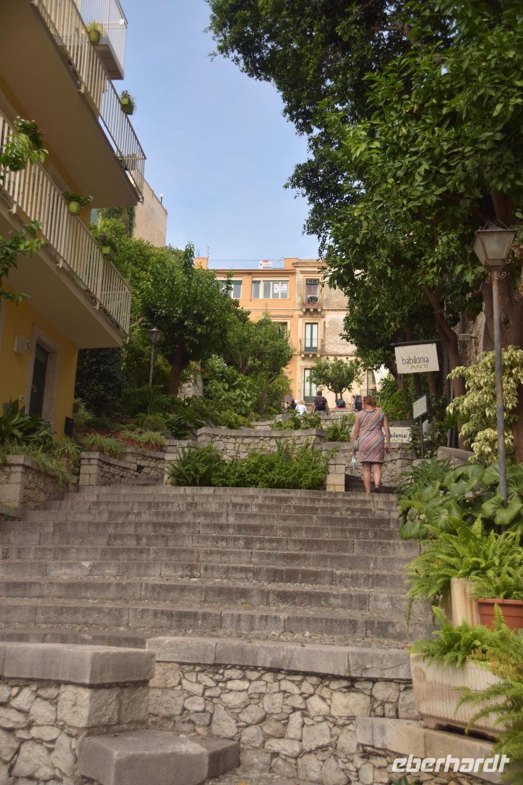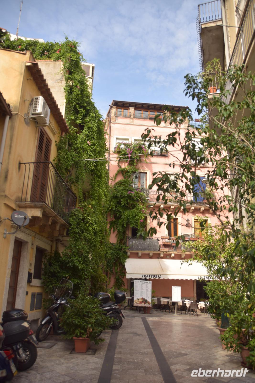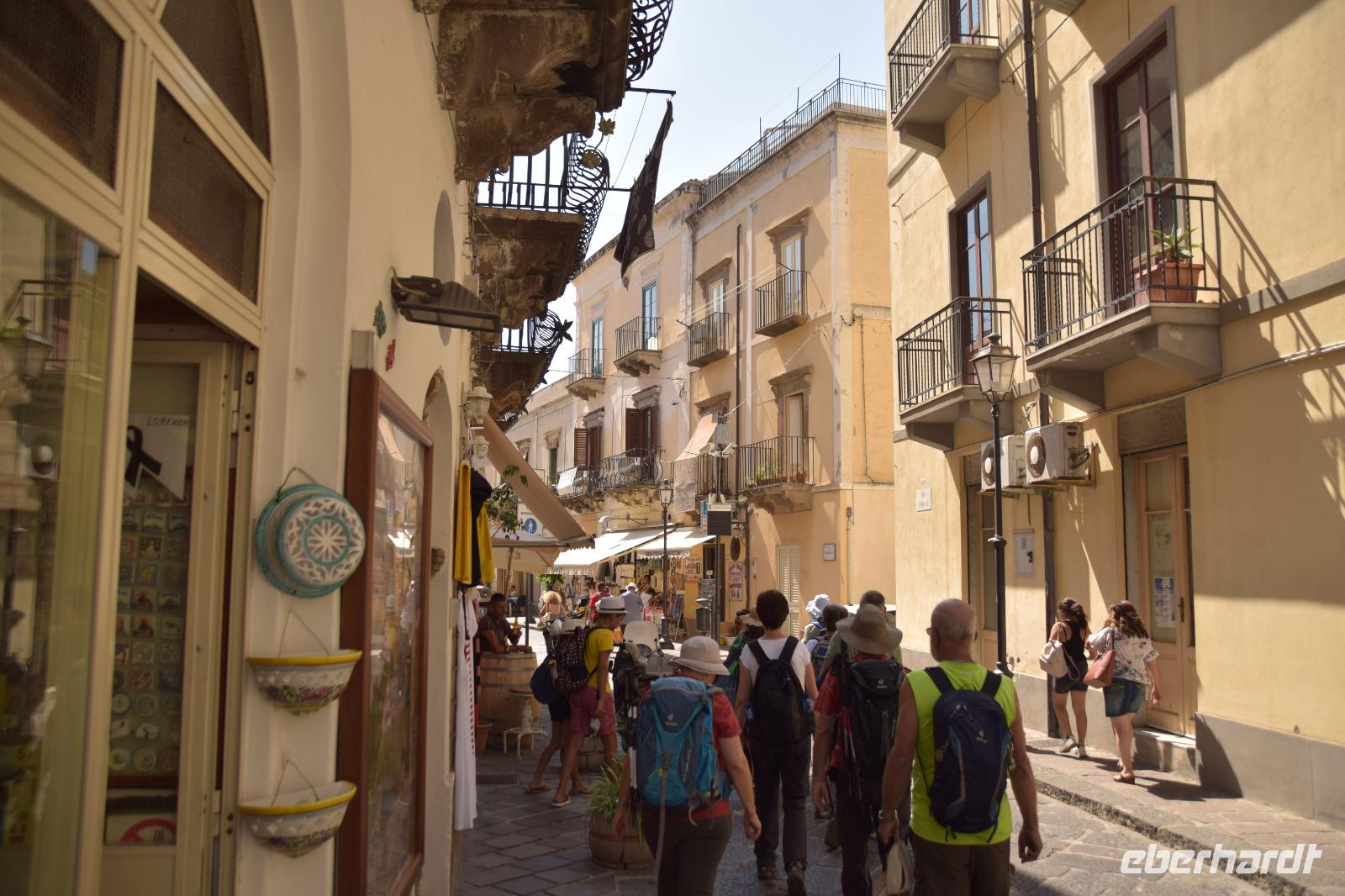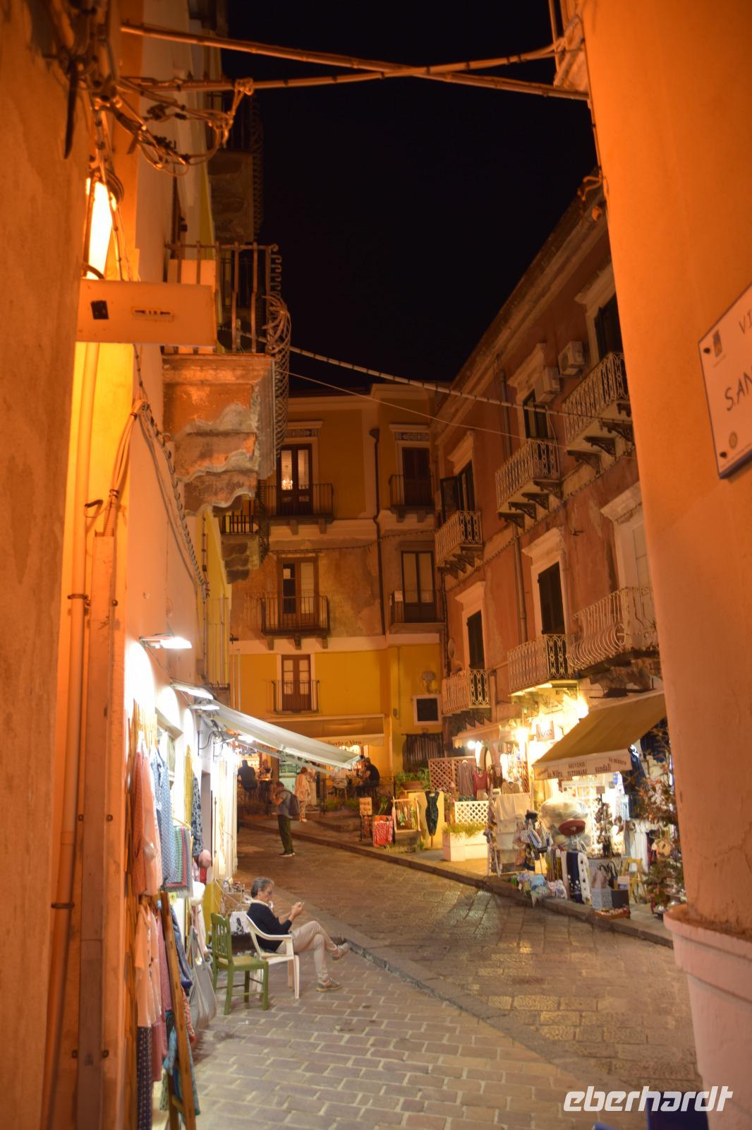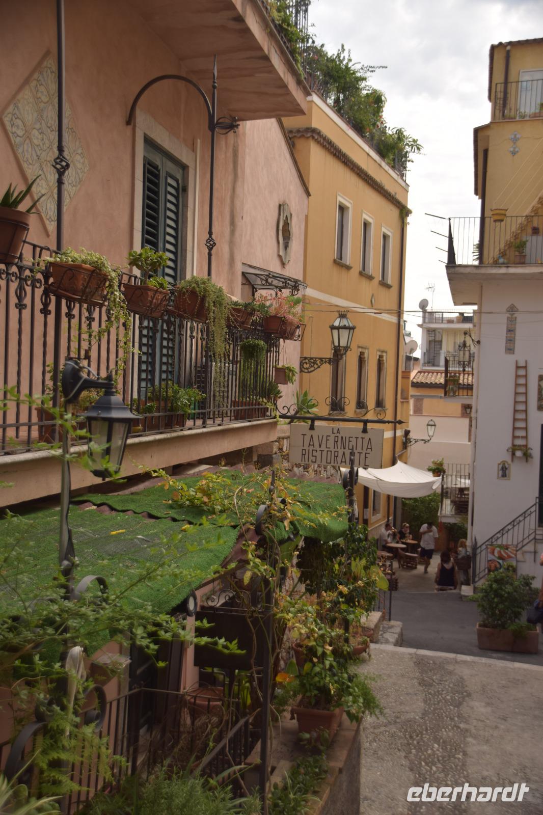 Mit Gedanken noch im letzten Abend, mussten wir am heutigen Morgen Abschied von Stromboli nehmen. Ein letztes Mal für diese Reise ging es auf das Tragflügelboot. Wir passierten auf dem Rückweg noch einmal die Inseln Panarea, Lipari und Vulcano. Dabei konnten wir schon einmal die letzten Tag Revue passieren lassen. In Milazzo angekommen erwartete uns schon der Bus. Mit diesen machten wir auf Weg nach Taormina entlang der Nord-Ostküste Siziliens. Die Stadt an der Buch von Naxos erwartete uns schon in ihrer vollen Pracht. Durch die wenigen Touristen konnte man die antike Stadt noch intensiver erleben. Einige Gassen fand man menschenleer auf. Nachdem alle Winkel von Taormina erkundet und die letzten Dinge für Zuhause besorgt waren, machten wir uns auf den Weg zu unseren Aschlussabendessen. Auf einen typischen Bauernhof in der Nähe von Giarre tischte uns die Besitzerin zahlreiche lokale und landestypische Leckereien auf. Dazu gab es jede Menge Wein und einen vorzüglichen Pistazienlikör. Alle waren danach gut gesättig und dadurch müde, weshalb wir uns auf dem Weg zu unseren letzten Hotel machten. Kurz eingecheckt und von Angela verabschiedet, welche uns gut durch die Reise brachte, gingen alle auf ihre Zimmer.
