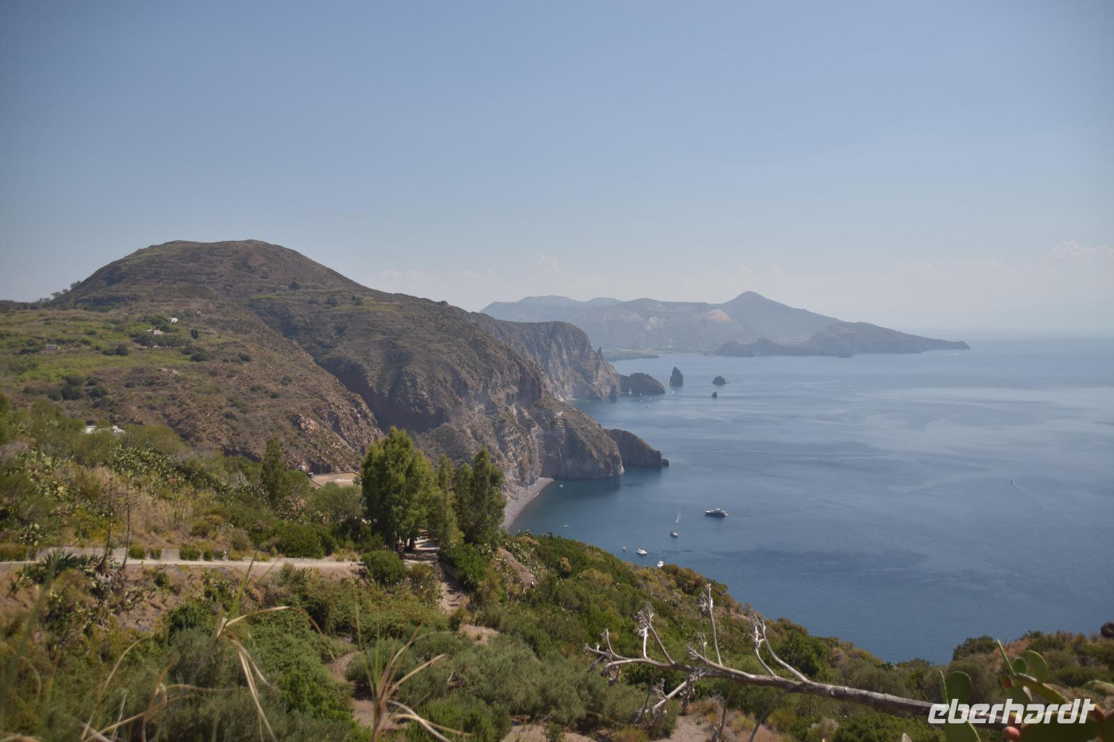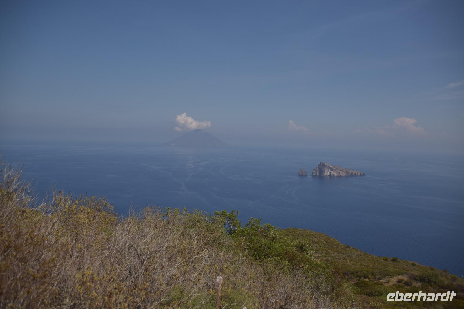 Heute hieß es schon wieder Abschied nehmen von Lipari. Nach einen leckeren Frühstück und dem Check-out machten wir einen kurzen durch die Gassen zum Hafen. Hier warteten schon die Koffer und Angela auf uns. Wieder durften wir uns mit dem Tragflügelboot aufs Meer begeben und nach kurzen Halt auf Salina, erreichten wir auch schon nach einer reichlichen Stunde Panarea. Nachdem wir unsere Koffer bei Carola, einer hafennahen Bar, eingestellt hatten, starteten wir um die Insel zu erkunden. In der Mitte des beschaulichen Örtchens, trennten sich die Wege der Gruppe. Nur zwei Herren wollten die doch anspruchsvolle Inselumrundung wagen. Die restlich Gruppe unternahm einen Spaziergang zur Cala Junco und legte dort im kristallklaren Meer einen Badetag ein. Für die Wanderer ging es zuerst steil bergauf über felsige Wege und vorbei an tiefen Abgründe, welche im Meer endeten. Die Flora war zwar bereits verblüht, bietet aber mit ihren satten grün immer noch einen schönen Anblick. Auf etwa 380 m erreichten wir den höchsten Punkt der Insel und legten hier unsere kurze Mittagspause ein. Im Anschluss ging es ebenso steil bergab wie zuvor aufwärts. Beim Abstieg konnten wir auch perfekt die in der Bronzezeit angelegten Terrassen bewundern. Den krönenden Abschluss bildete auch für uns die traumhafte Cala Junco. Für ein Bad reichte es leider nicht mehr. Aber der Anblick begeisterte schon ausreichend. Die restliche Gruppe trafen wir wieder bei Carola, wo es zum Abschluss noch einen Granita für jeden im Namen von Eberhardt Travel gab. Das Tragflügelboot kam wieder pünktlich und brachte uns direkt nach Stromboli. Die Koffer wurden wieder am Hafen abgeholt und zum Hotel gefahren. Wir konnten deshalb noch einen kleinen Ortsspaziergang vorbei an der Kirche und dem Haus von Ingrid Bergmann. Im Hotel kurz geduscht ging es auch schon zum Abendessen. Da kaum noch Gäste auf der Insel waren, aß unsere Gruppe fast allein im Hotelrestaurant. Nur die Familie des Hotelbesitzers saß am Nachbartisch. So konnten wir den Tag gemütlich ausklingen lassen.