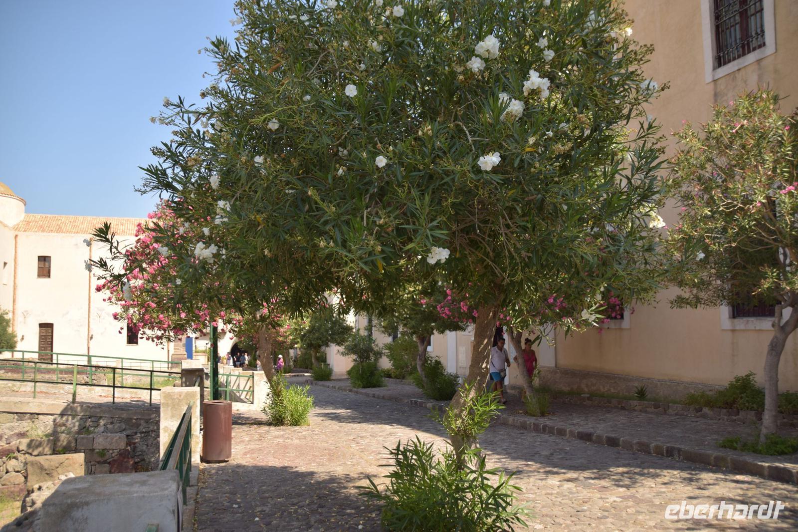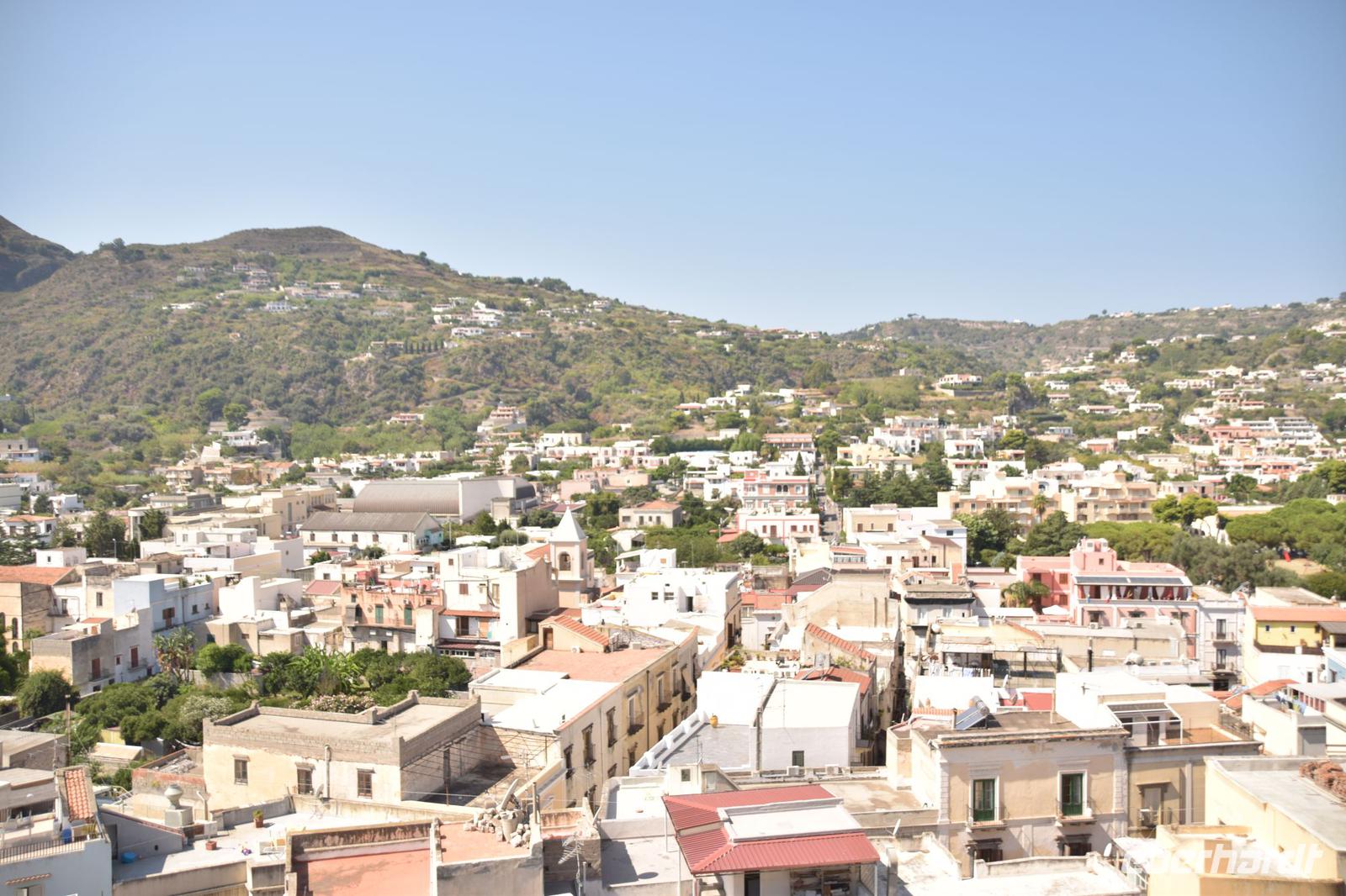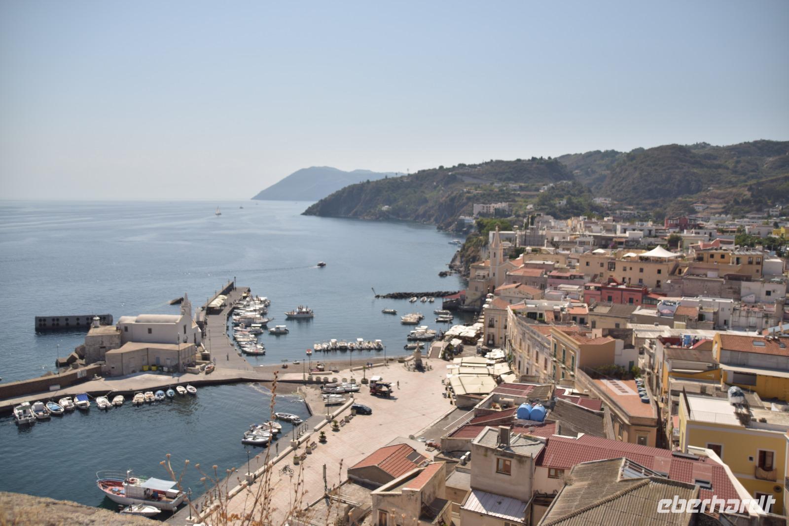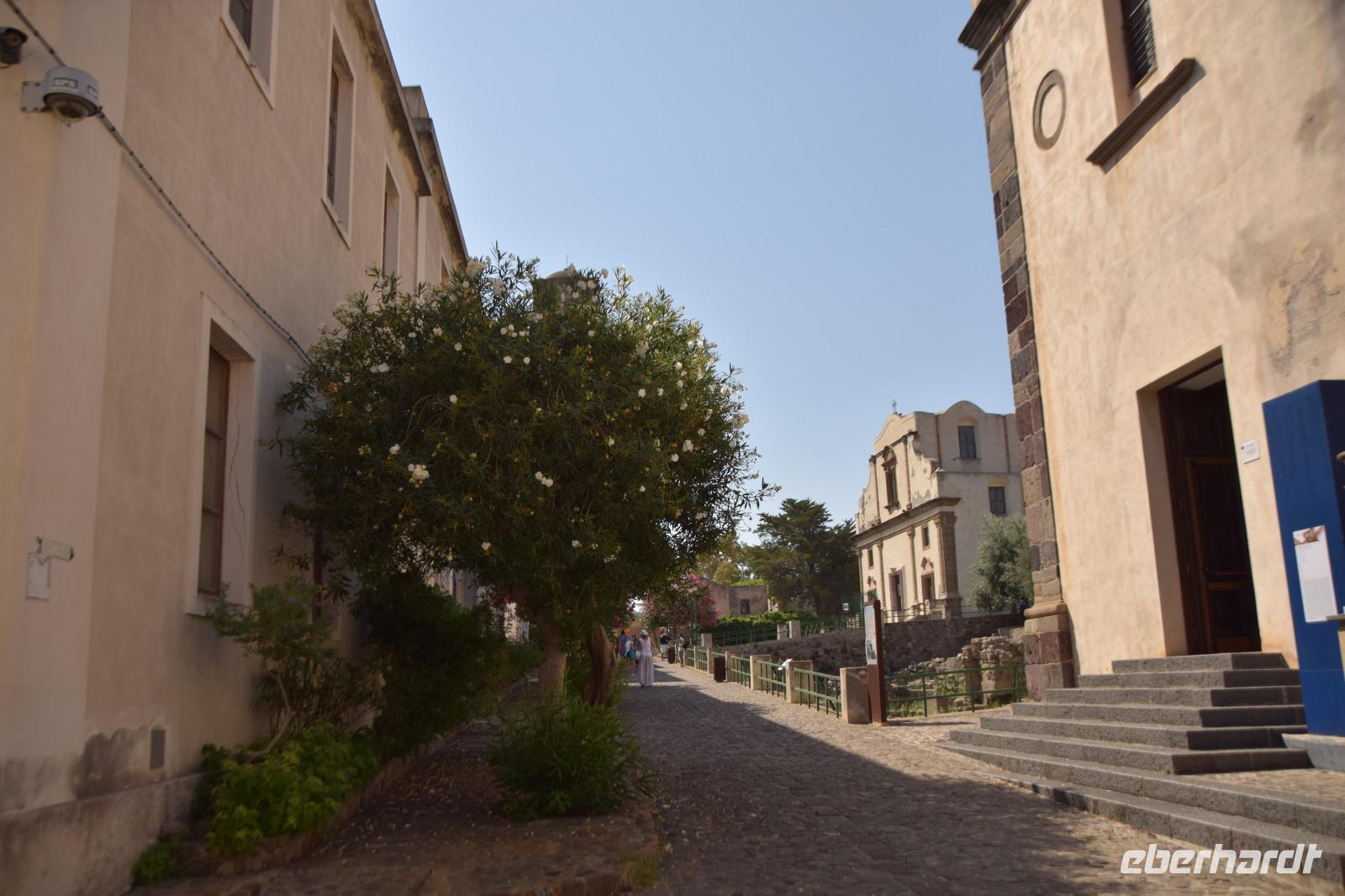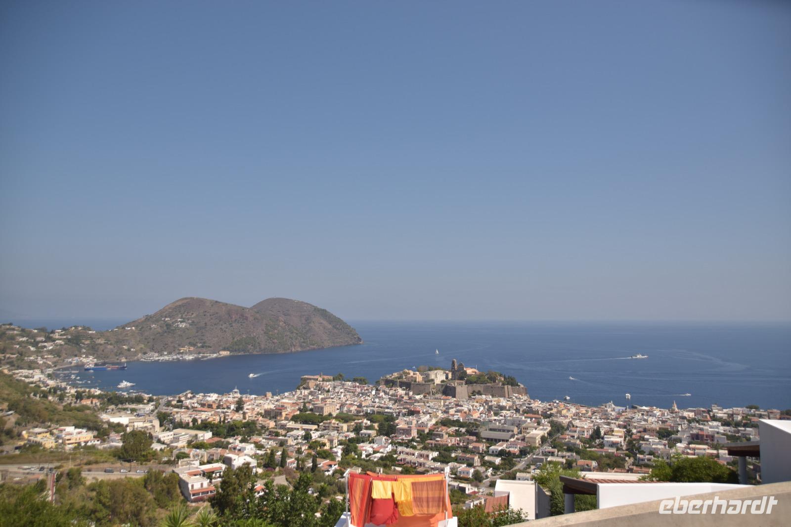Heute hieß es noch zeitiger frühstücken und im Anschluss mit gepackten Koffern vor den Hotel warten. Denn es ging zu unseren nächsten Station, der Insel Lipari. Der Bus fuhr uns entlang der Küste mit den ersten Sonnenstrahlen, welche auf dem Meer glitzerten, vorbei an Messina nach Milazzo. Von hier aus startet das Tragflügelboot zu den Liparischen Inseln. Mit rasanter Geschwindigkeit ging es direkt zum ersten Halt, Vulcano und nach wenigen weiteren Minuten erreichten wir unser Ziel, die Insel Lipari mit der gleichnamigen Stadt. Am Hafen wartete ein Hotelangestellter und nahm direkt unsere Koffer in Empfang, sodass wir direkt zu unseren Stadtspaziergang starten konnten. Durch die schmalen Gassen ging es zuerst hinauf zum Burgberg mit den zahlreichen Kirchengebäuden. Angela erzählte uns viel Wissenswertes über die Geschichte der Insel. Im Anschluss liefen wir vorbei an der kleinen Marine zu unserem Hotel. Nach einem kurzen Stopp mit Zeit für einen Toilettengang und zum Einkauf von Essen und Getränken konnten wir zu unserer Wanderung starten. Vorbei an den blühenden Gärten und Hinterhöfen wanderten wir erstmal bergauf über die Straße zum Aussichtspunkt Quattrocci. Das Wetter meinte es auch etwas zu gut mit uns, denn es herrschte strahlender Sonnenschein. Nach kurzer Rast ging es weiter zu den alten Termen. Diese wurden leider schon vor einigen Jahren verlassen und nur ein einzelner alter Herr bietet hier seine Waren an. Weiter ging es über die alte Römerstraße entlang der Küste. Unser nächstes Ziel sollten die Kaolinsteinbrüche sein. Leider ereilte uns hier ein Notfall, sodass wir die Wanderung und den restlichen Tag abrupt enden lassen mussten.