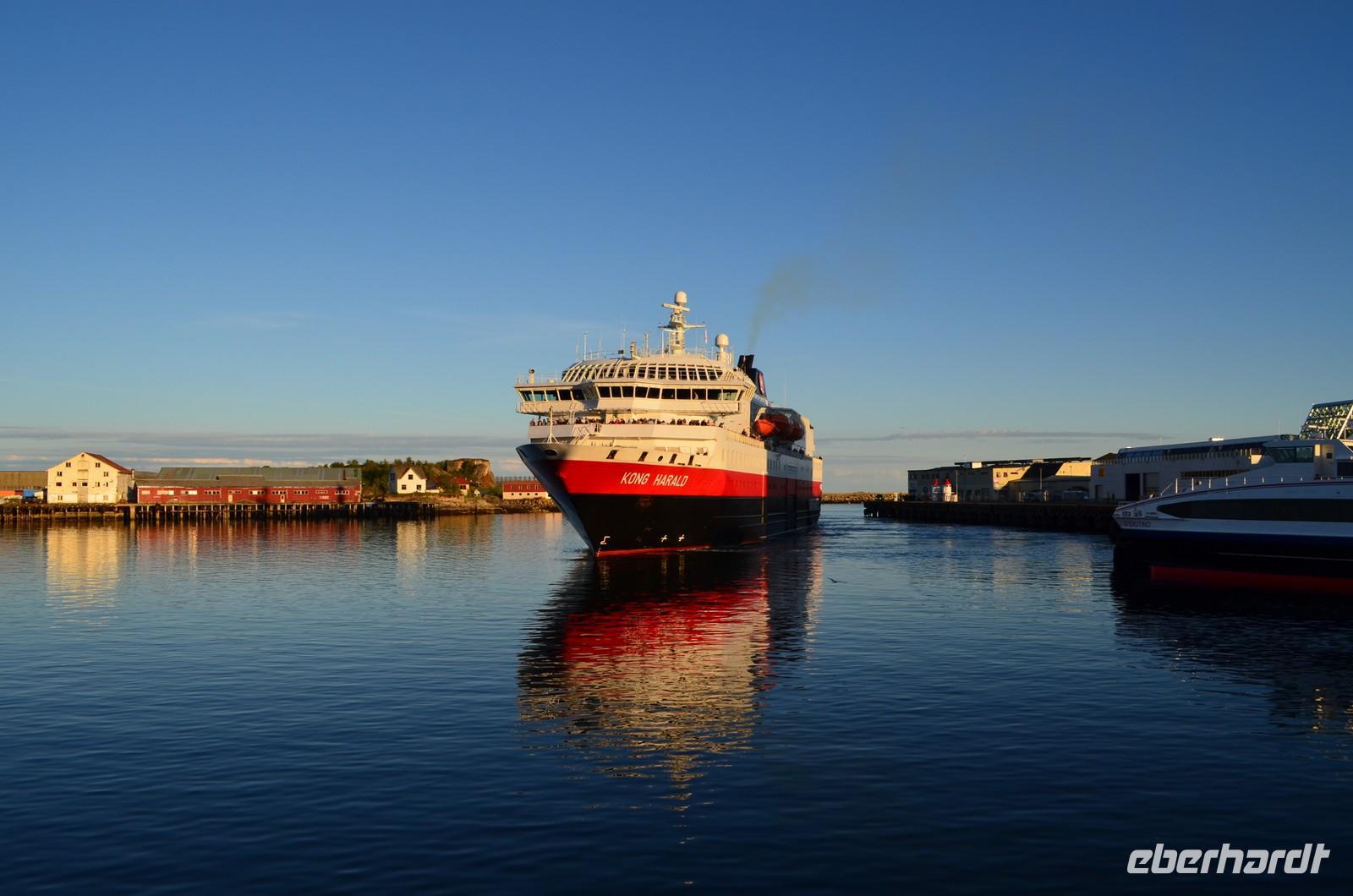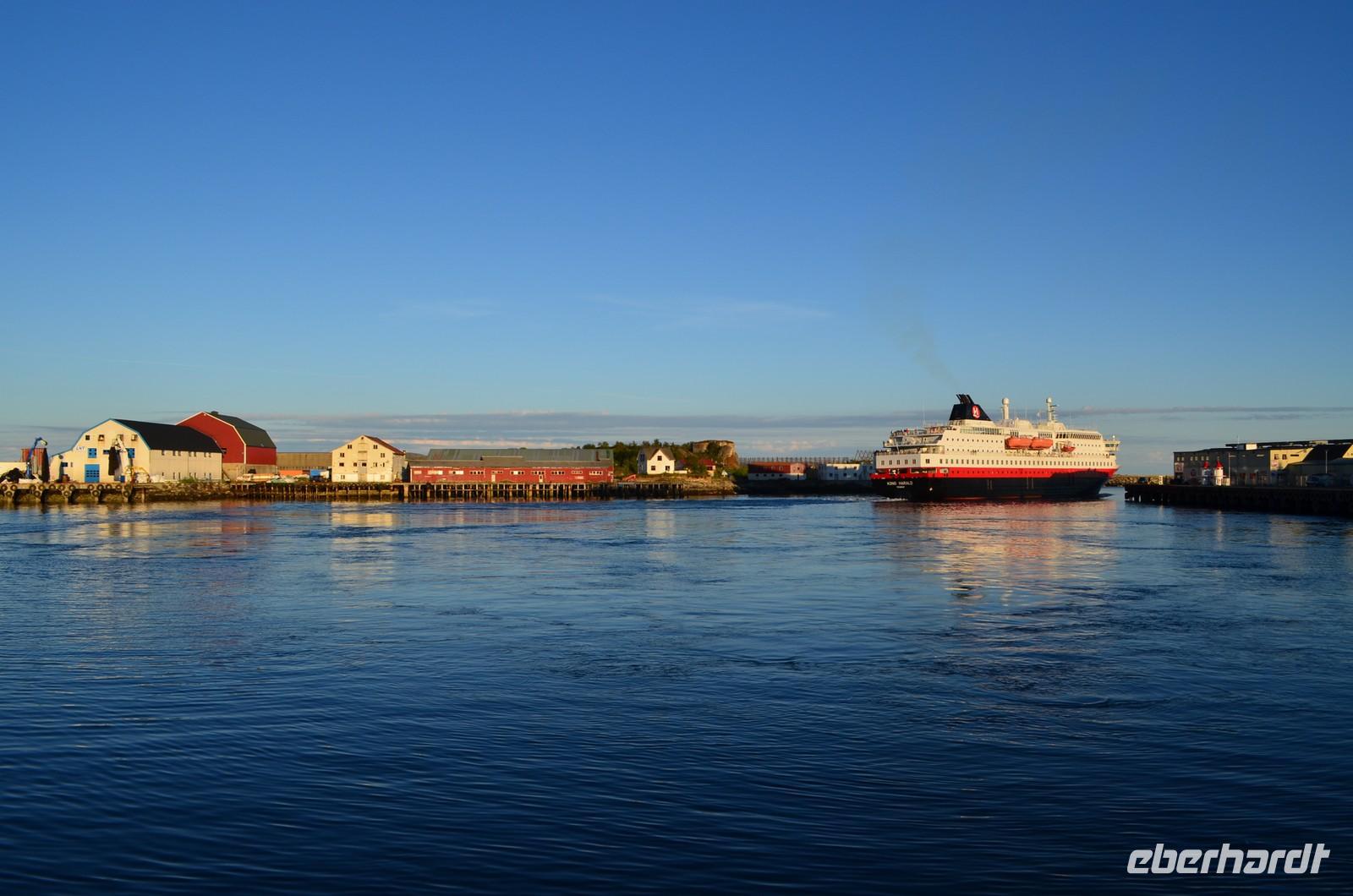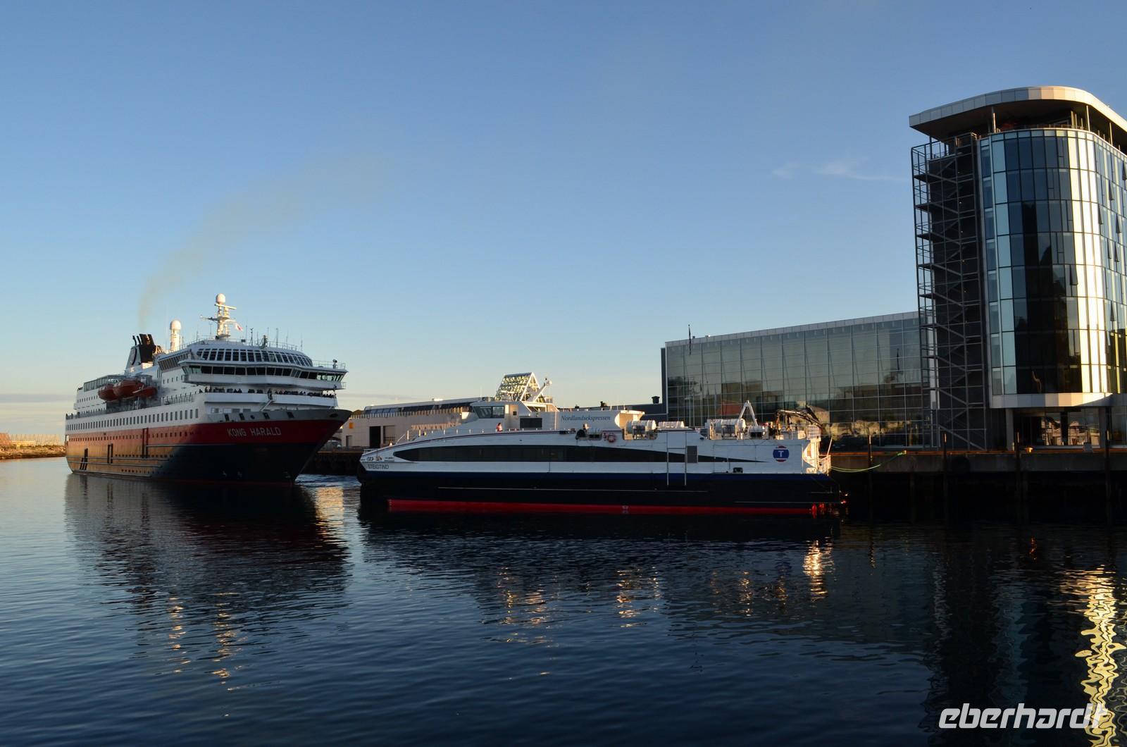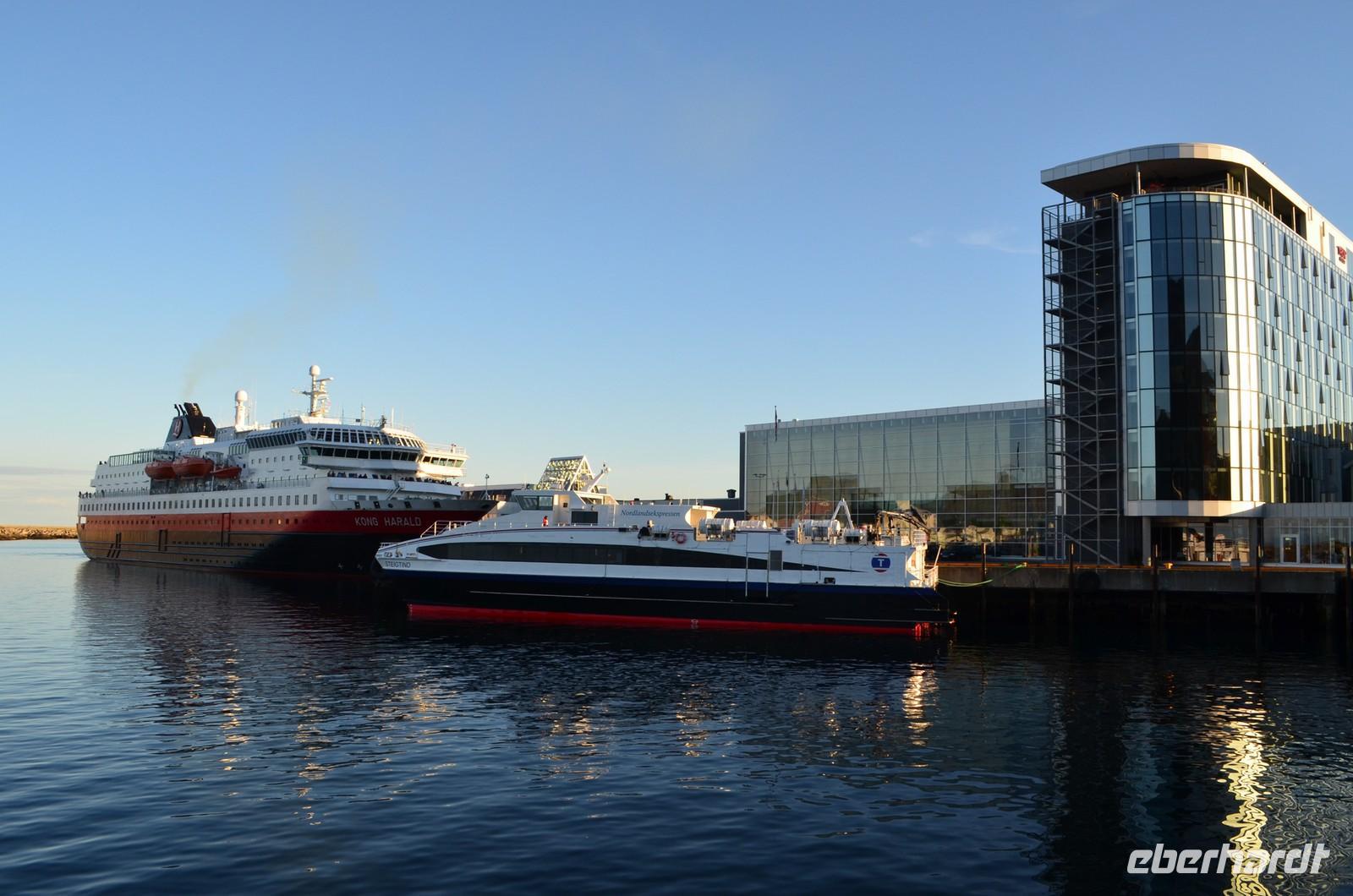 Am Morgen liegen 2 Hurtigrutenschiffe (für beide Richtungen) im Hafen.