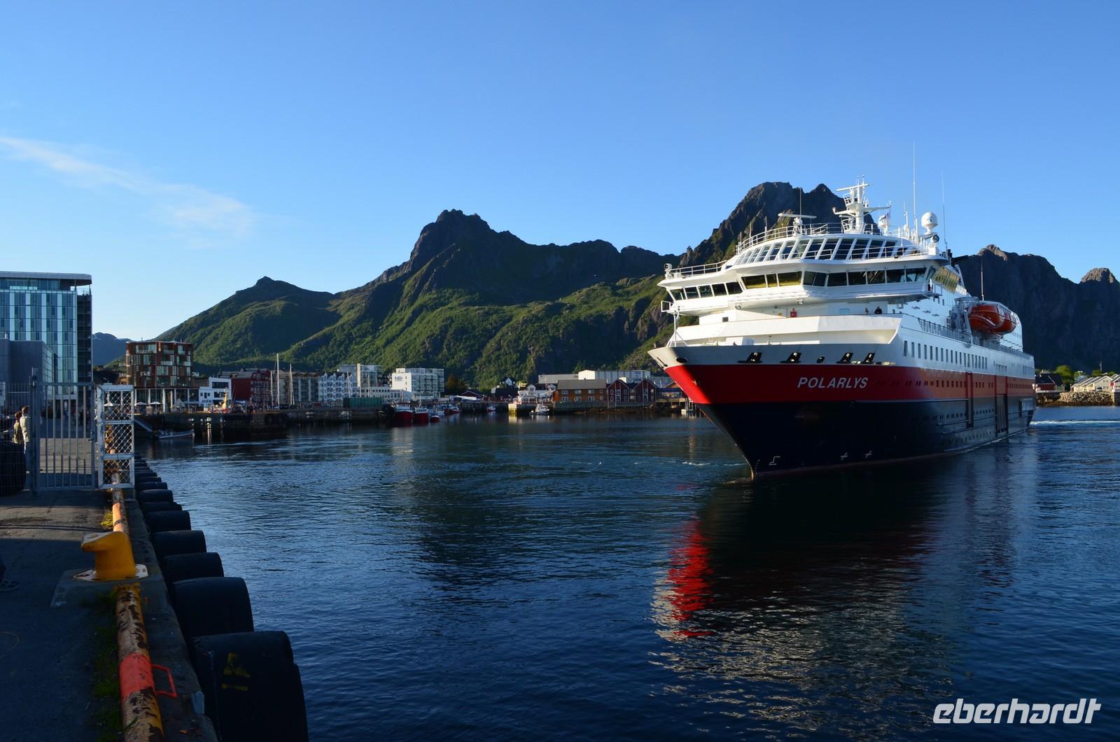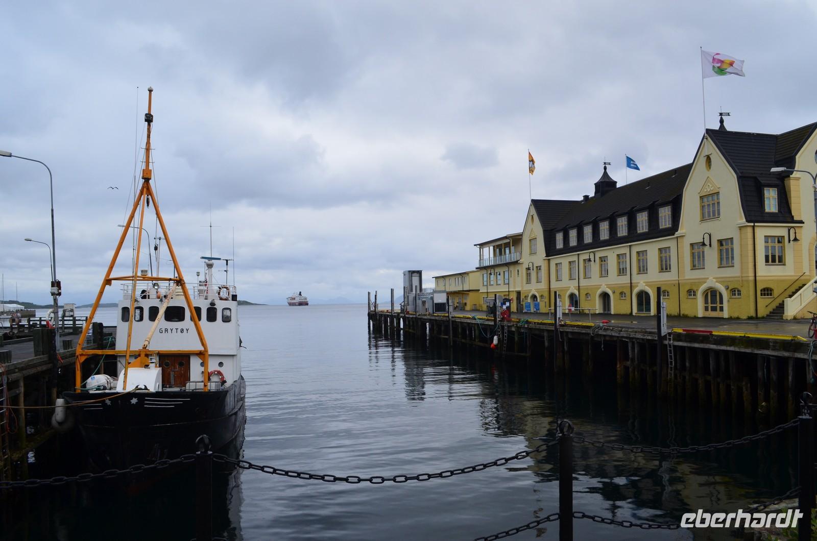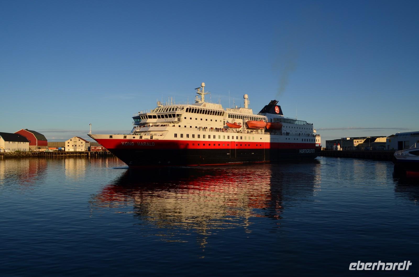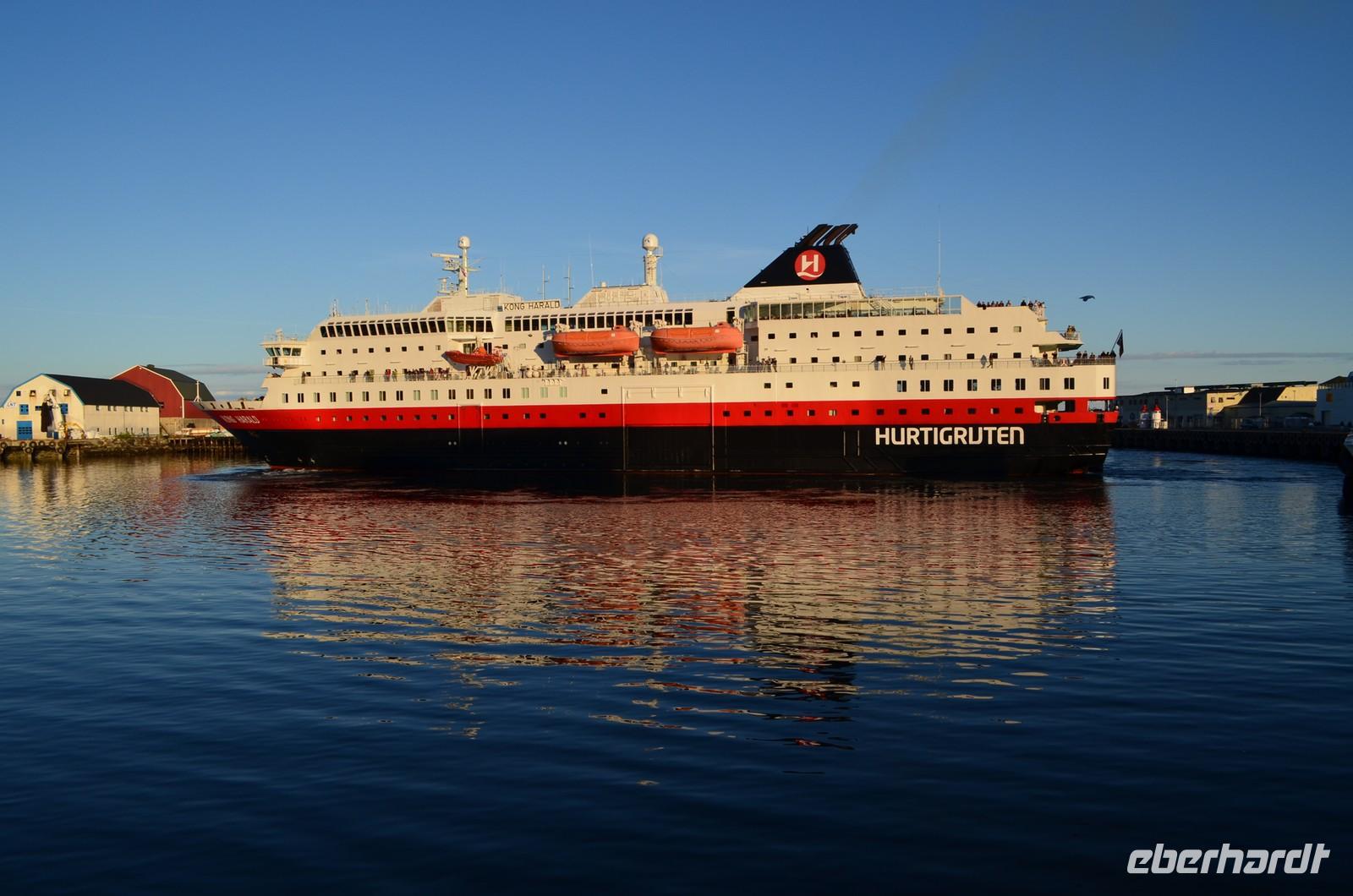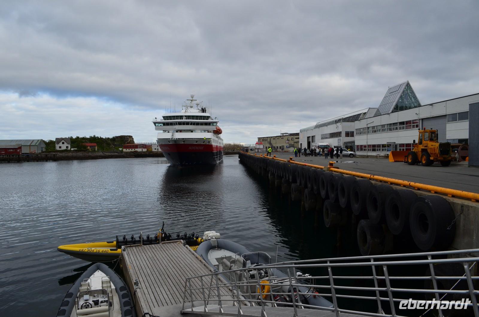 Am Morgen liegen 2 Hurtigrutenschiffe (für beide Richtungen) im Hafen.