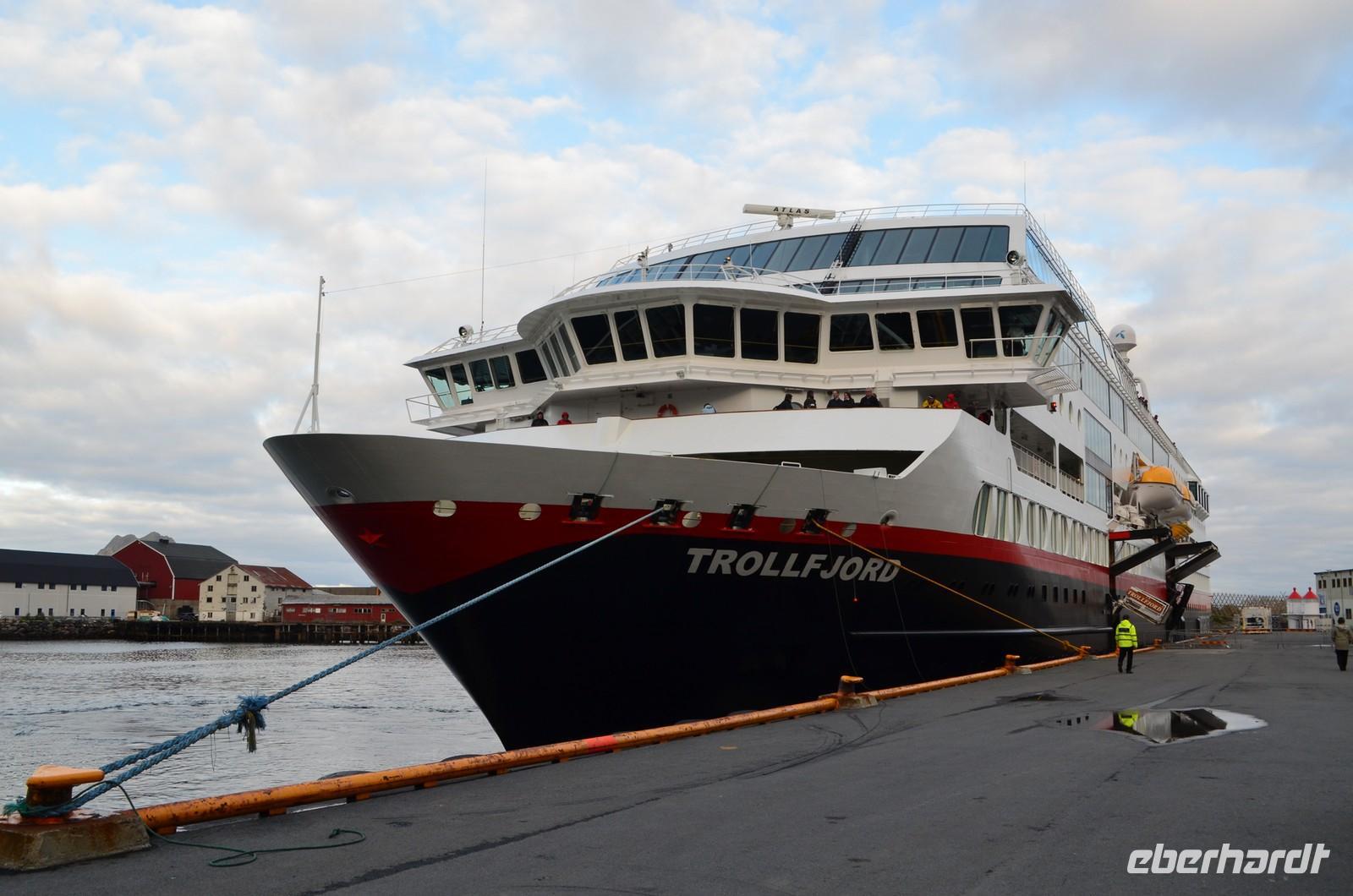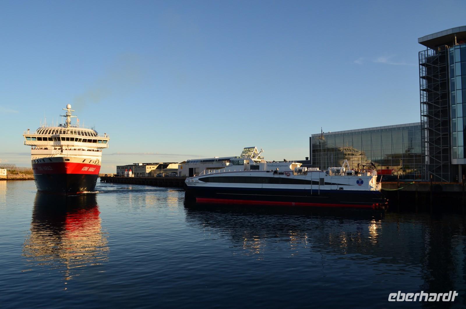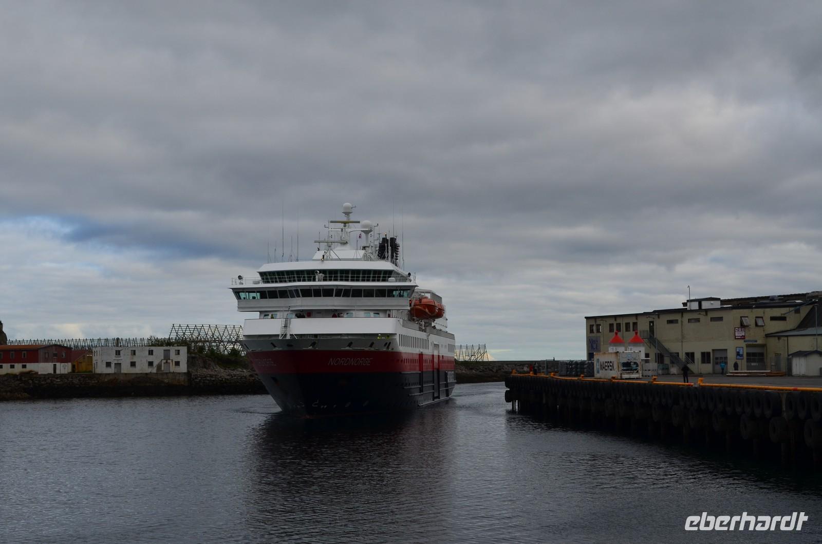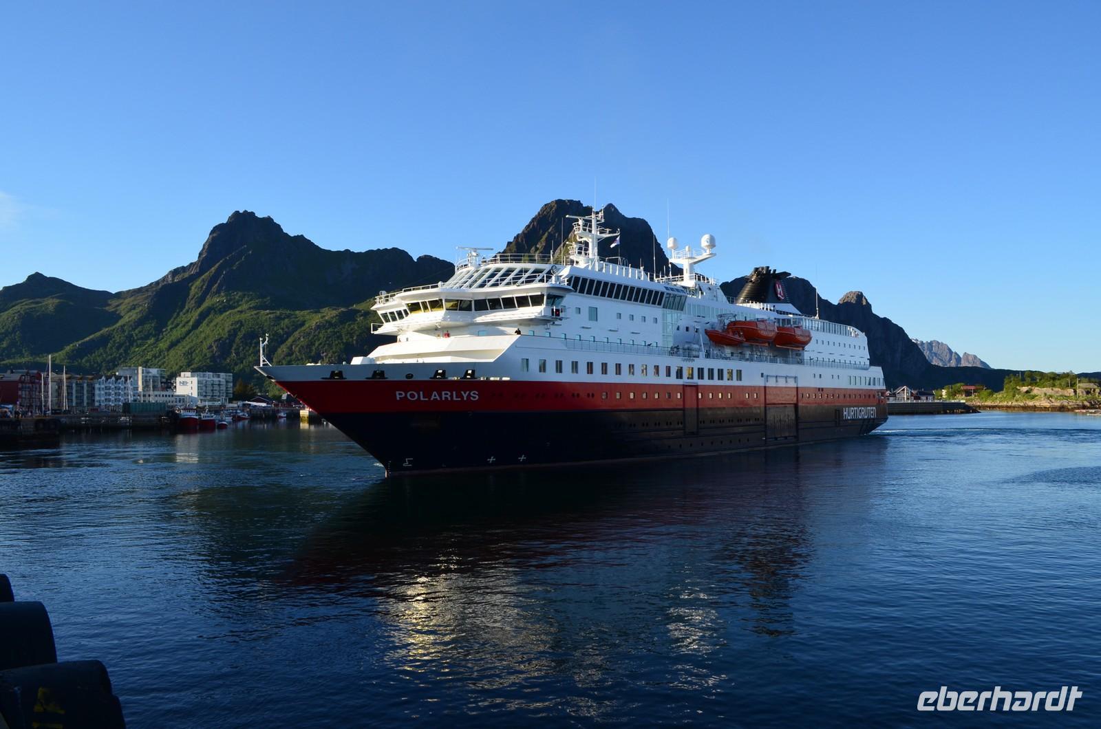 Am Morgen liegen 2 Hurtigrutenschiffe (für beide Richtungen) im Hafen.