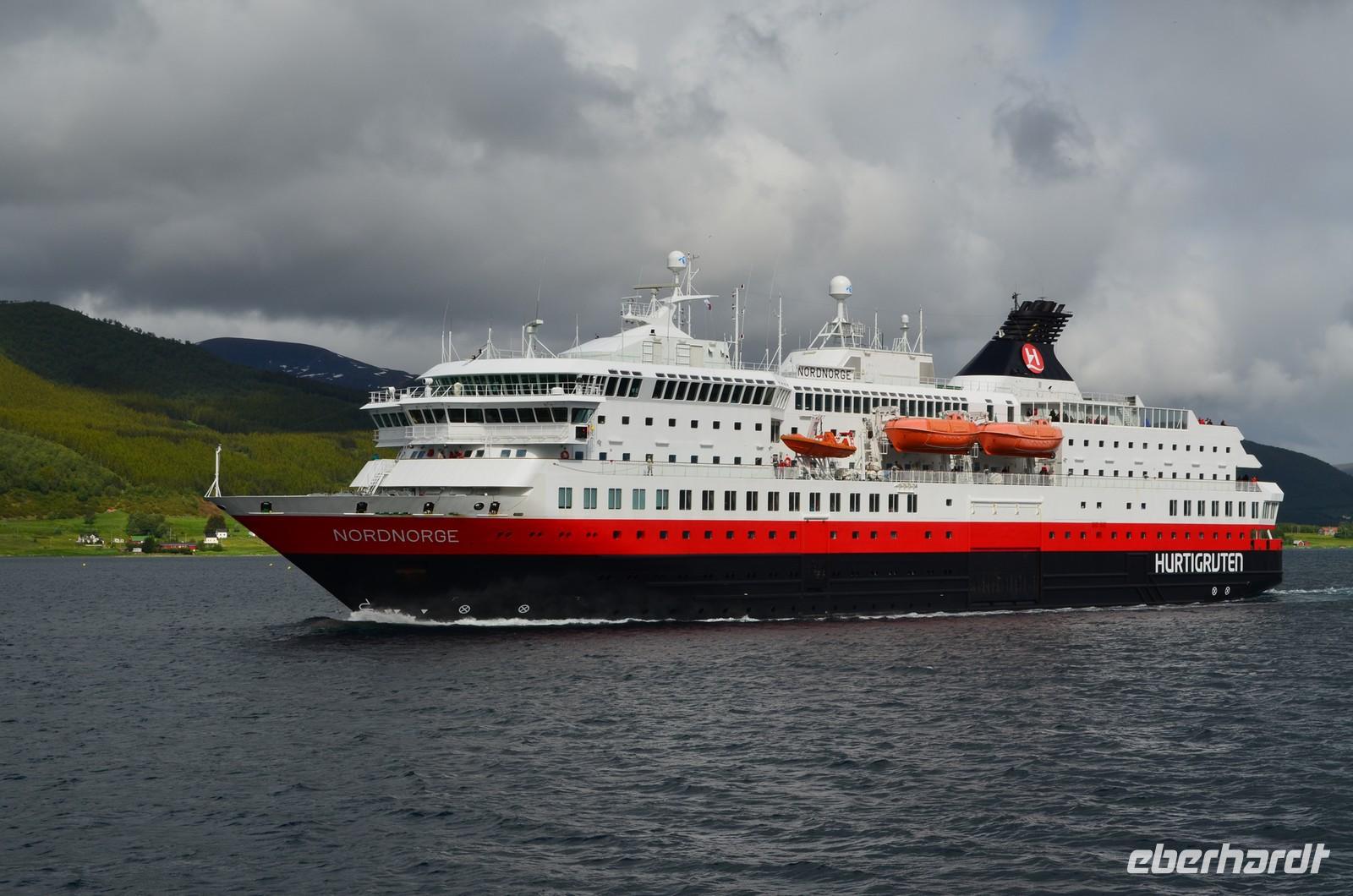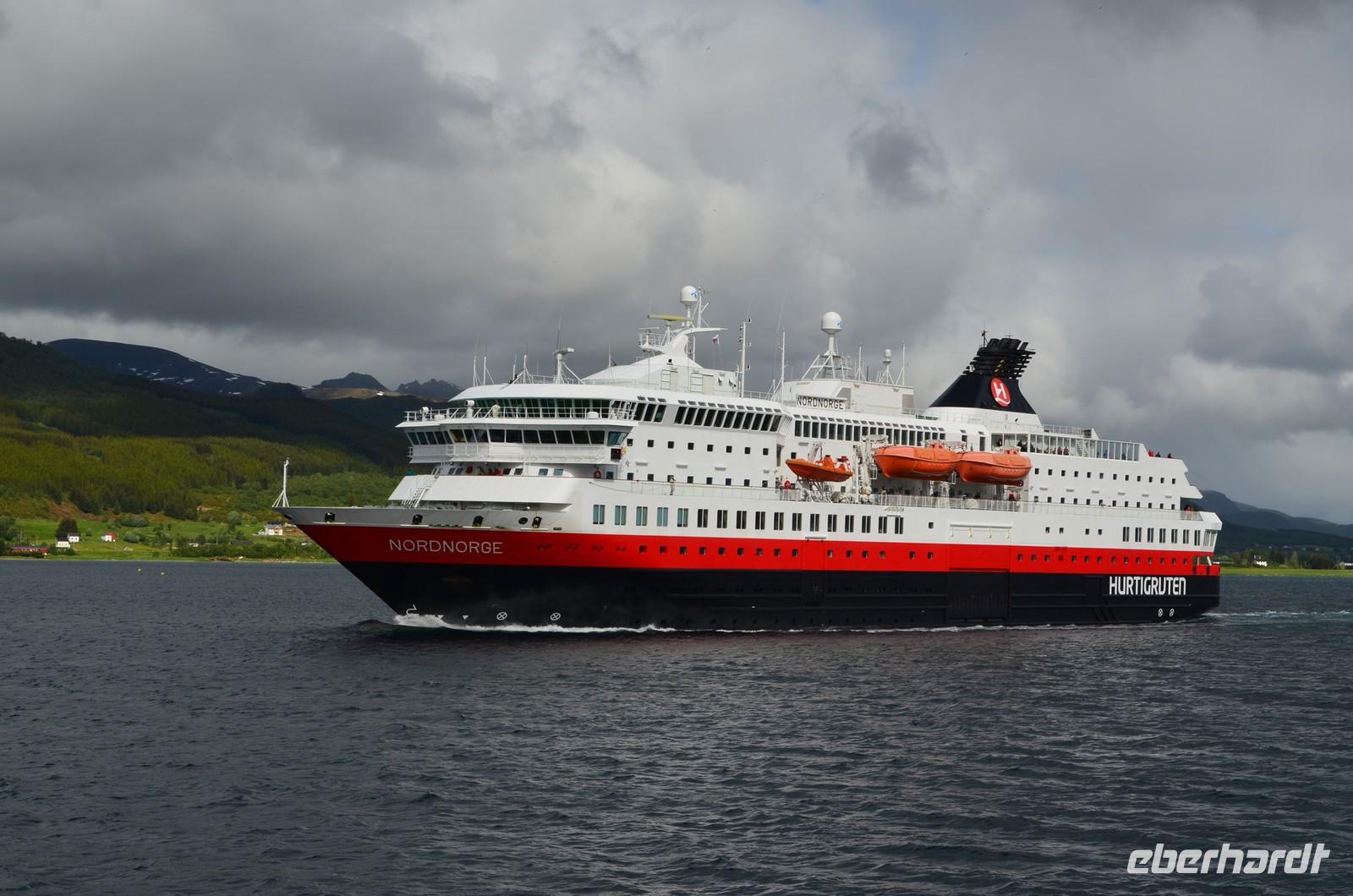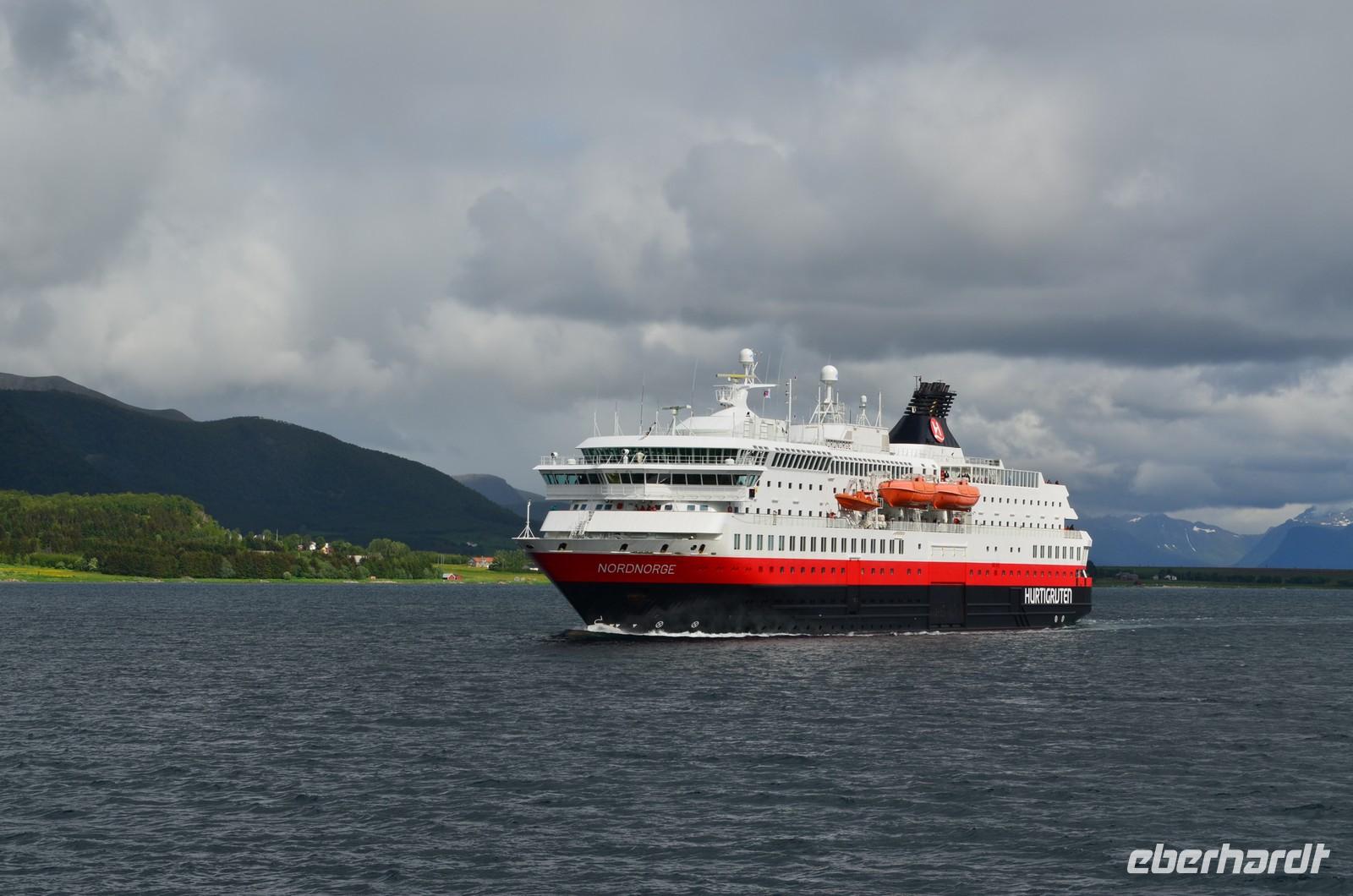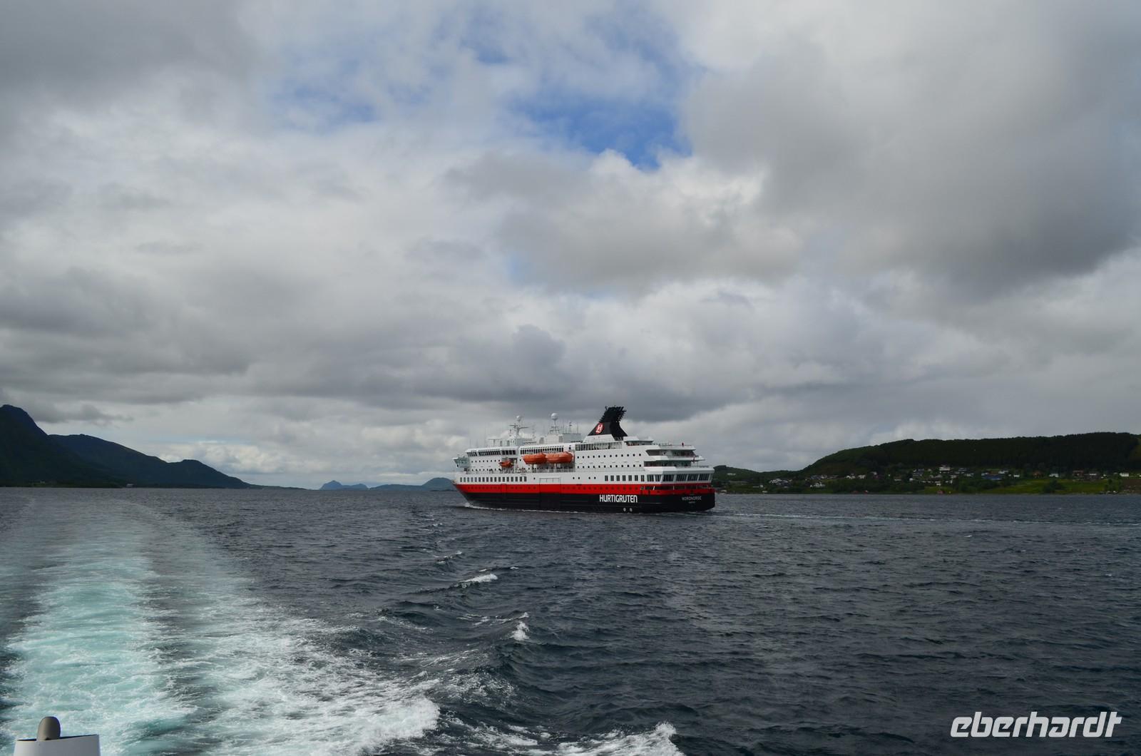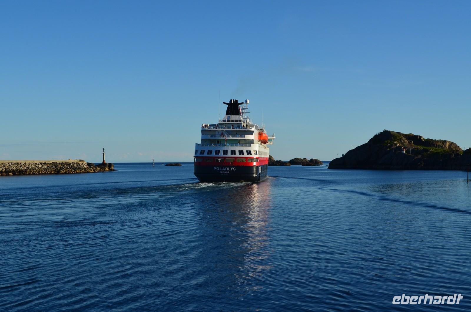 Am Morgen liegen 2 Hurtigrutenschiffe (für beide Richtungen) im Hafen.