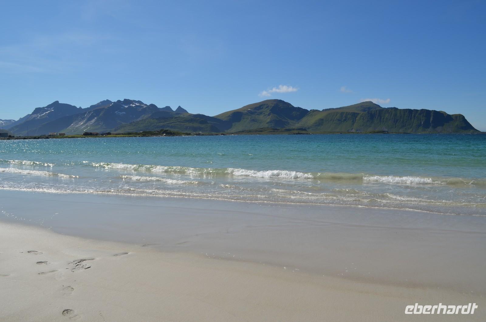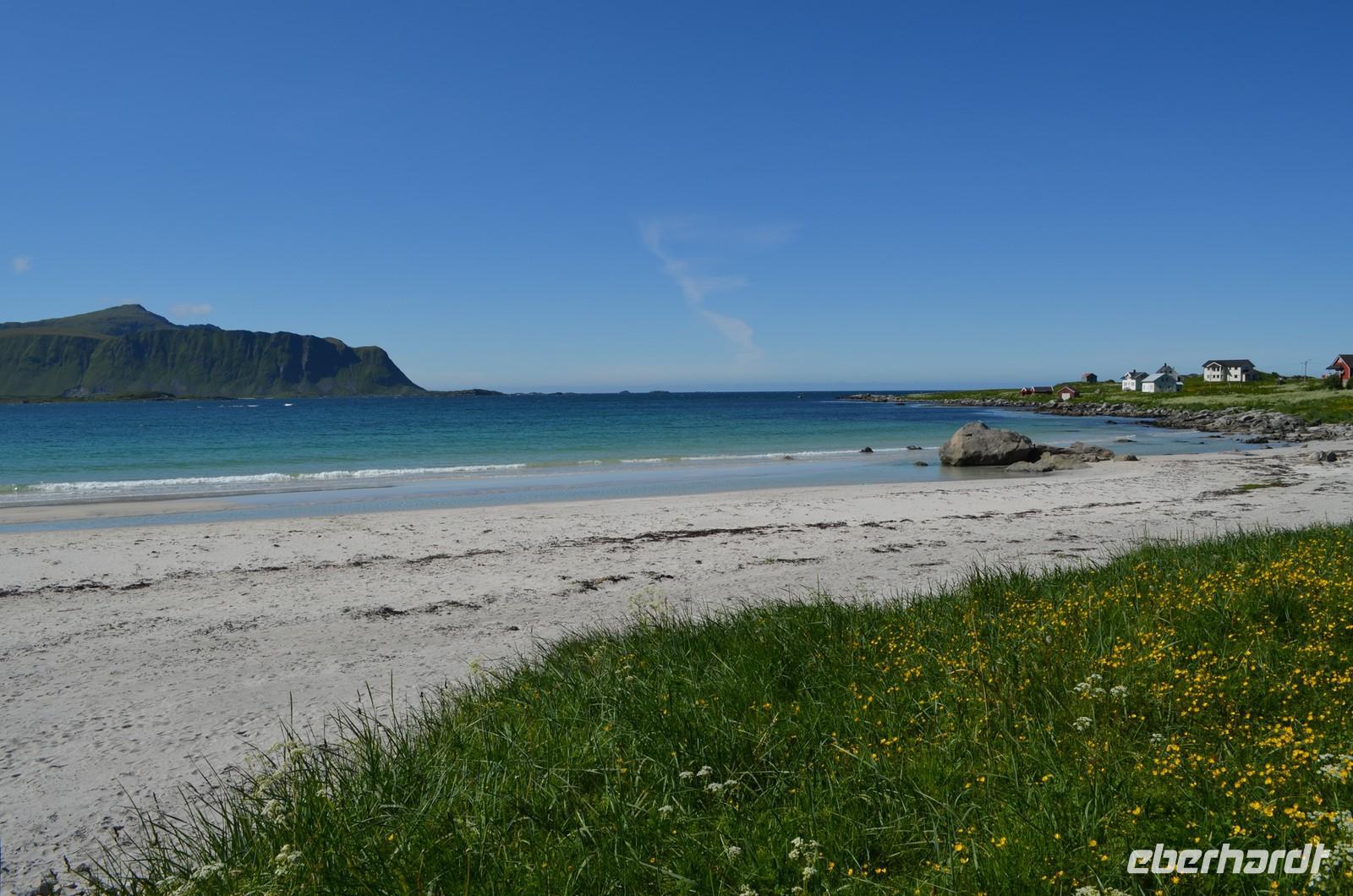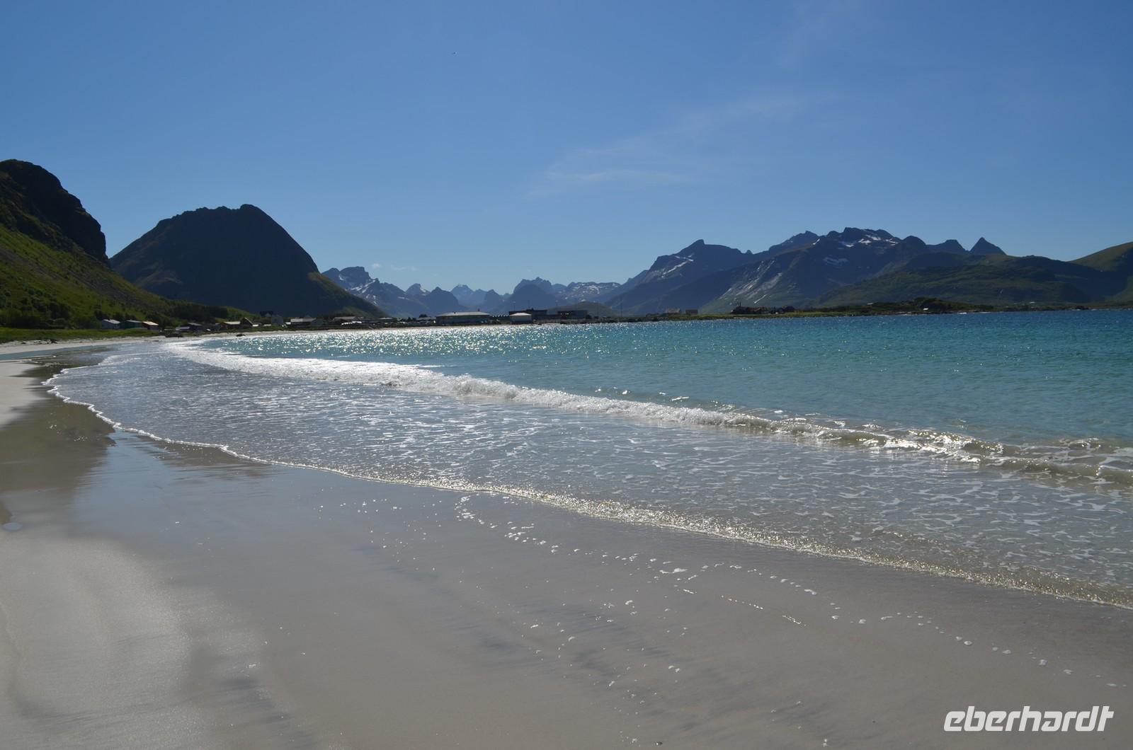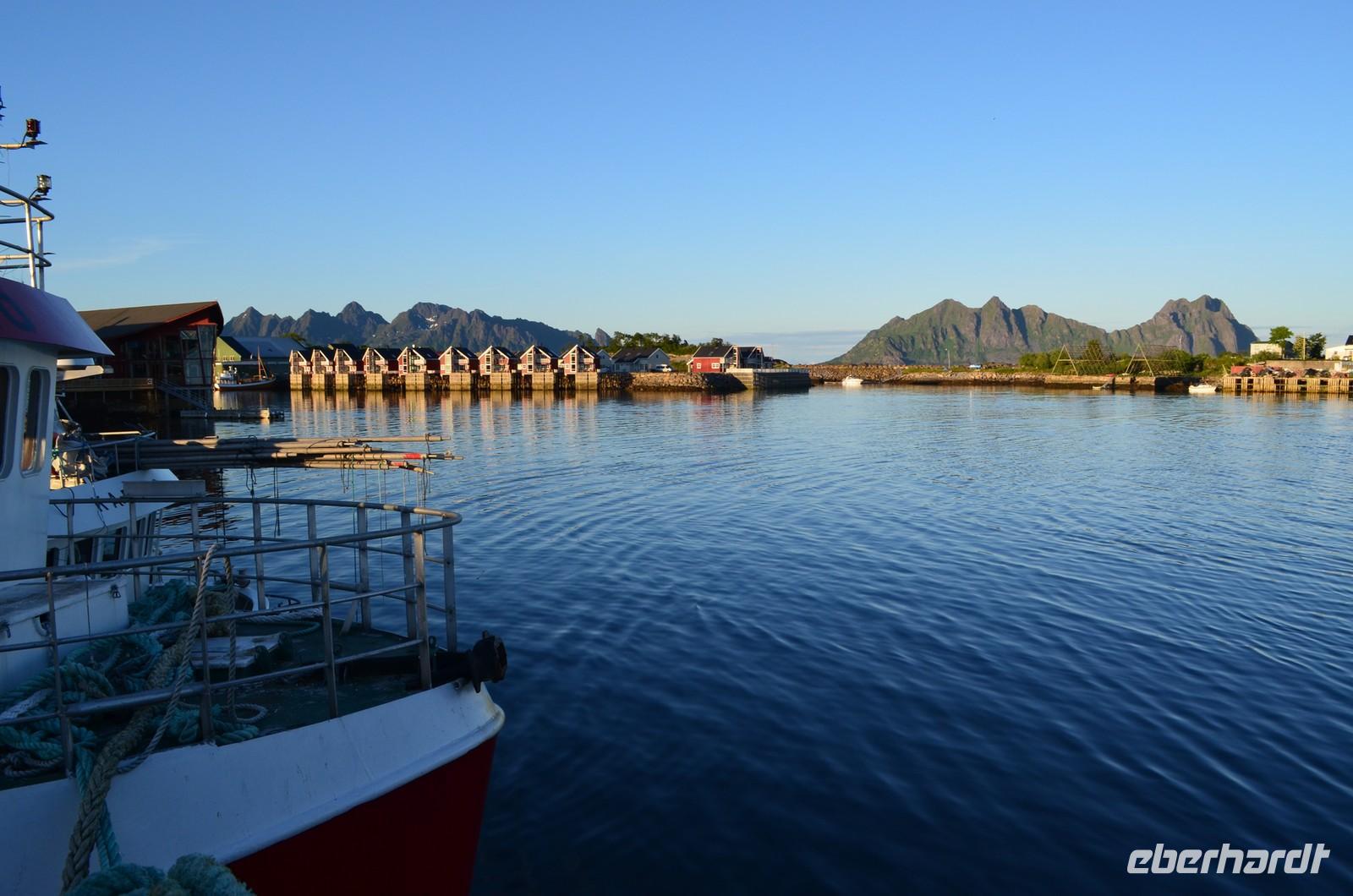 Heute starten wir zur Lofoten-Rundfahrt, erster Fotostopp ist an der Küste nach Honningsvaer, dem schönen Fischerort, den wir anschließend besuchen. Von hier geht es weiter nach Borg, natürlich nicht ohne an der tollen Aussicht davor anzuhalten. In Borg steht der Besuch des Wikinger-Museums auf unserem Programm. Die Führung beginnt mit neuem Ausstellungsteil - der Präsentation von Videos mit Erläuterungen und einem 10 Min.-Film, sowie der Ausstellung aller Fundstücke. Anschließend wird die Führung im Wikingerhaus fortgesetzt und den Abschluss bildet die Wikingersuppe - wobei alle Gäste als eberhardt-WOW je ein Glas Bier erhalten. Die Weiterfahrt führt uns über Lekness und Flakstedt bis Ramberg. Am weißen Sandstrand von Ramberg entsteht unser Gruppenfoto.
