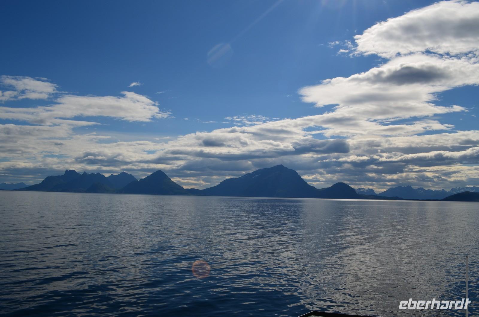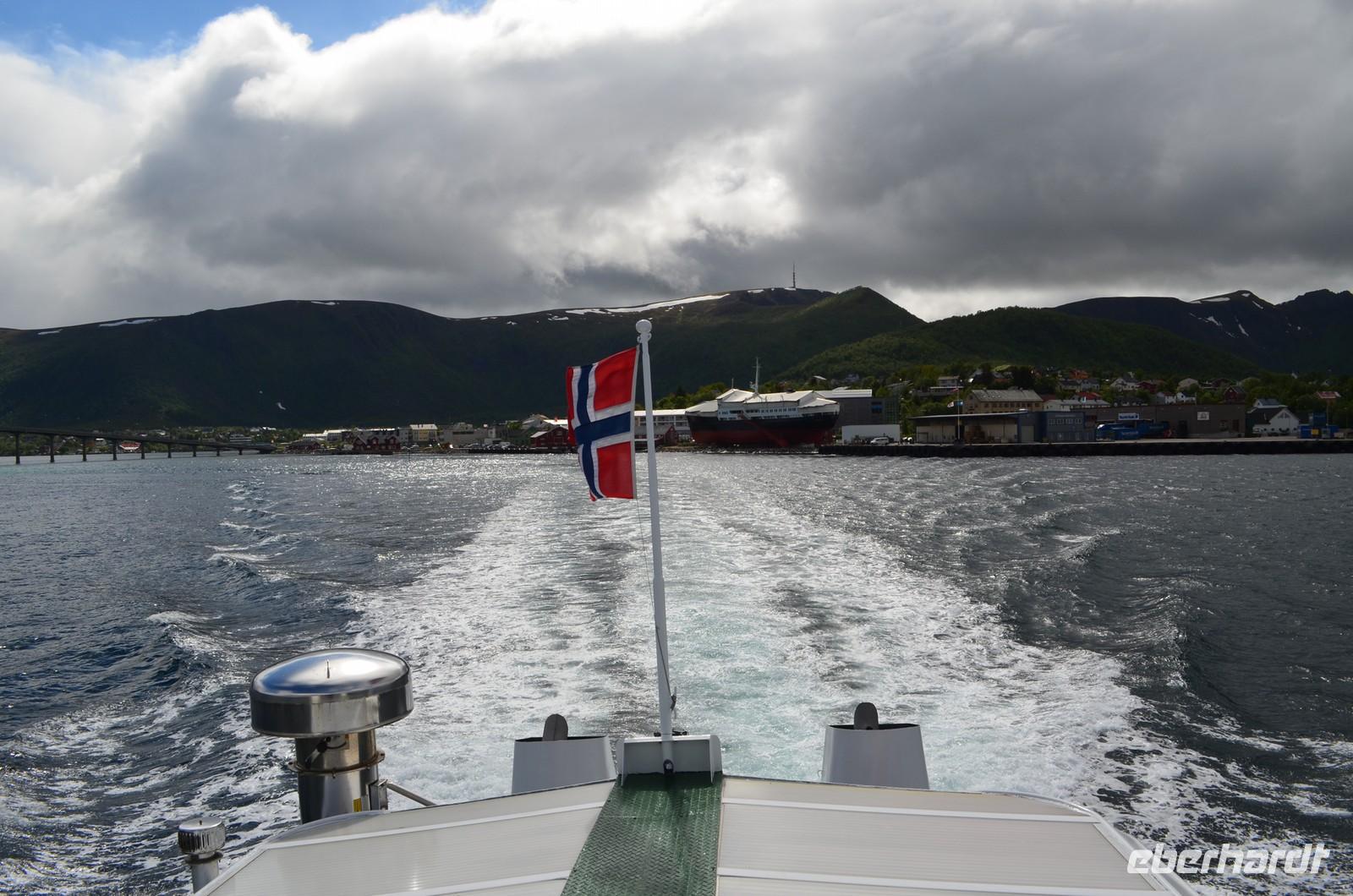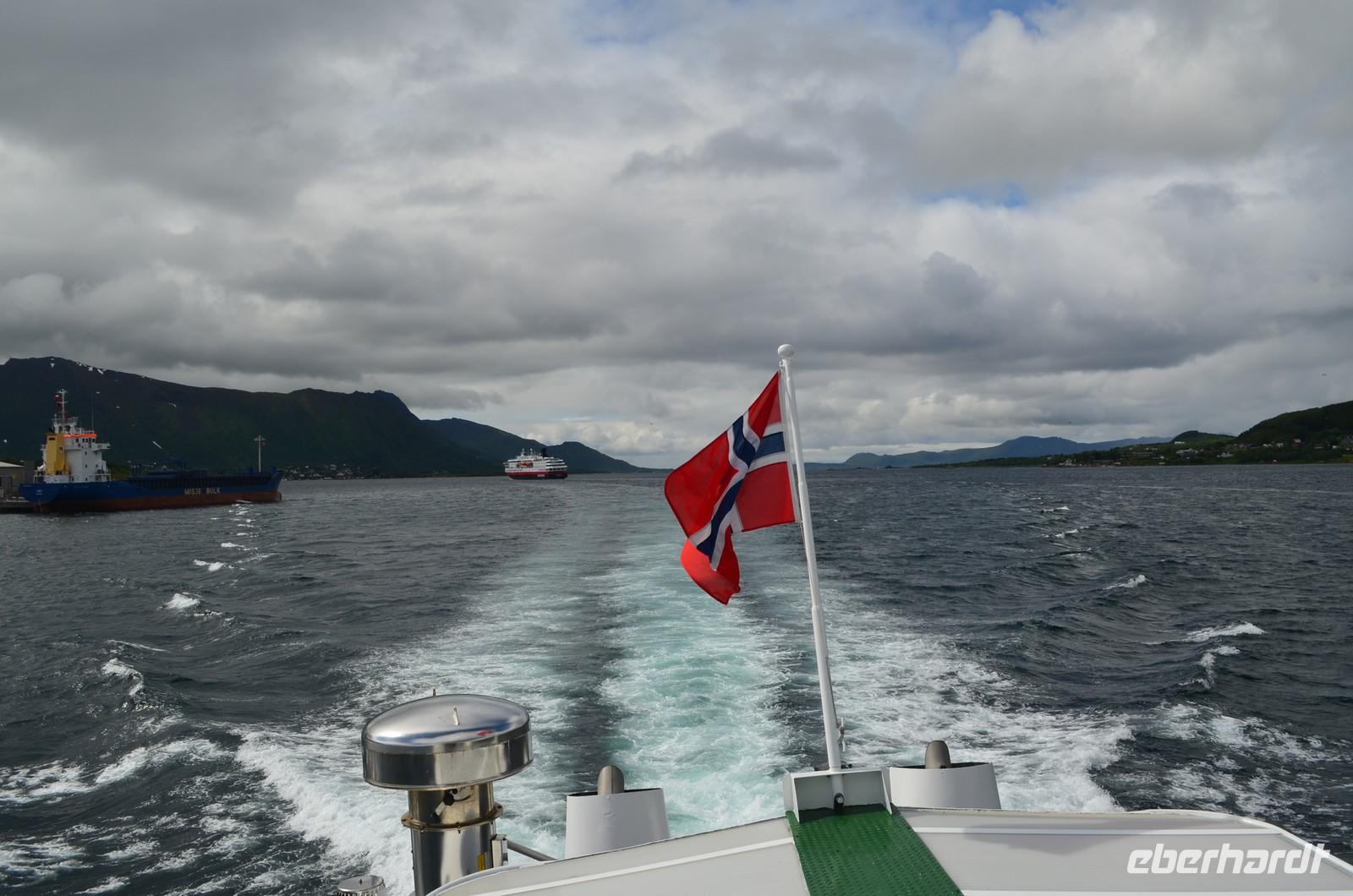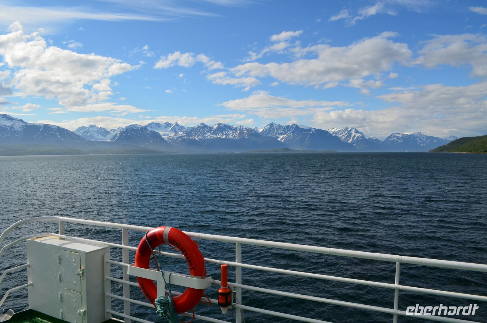 Gut gelaunt und voller schöner Eindrücke verlassen wir die Insel mit dem Nordkapp am nächsten Morgen. Das Wetter ist wieder sehr schön und wir fahren von