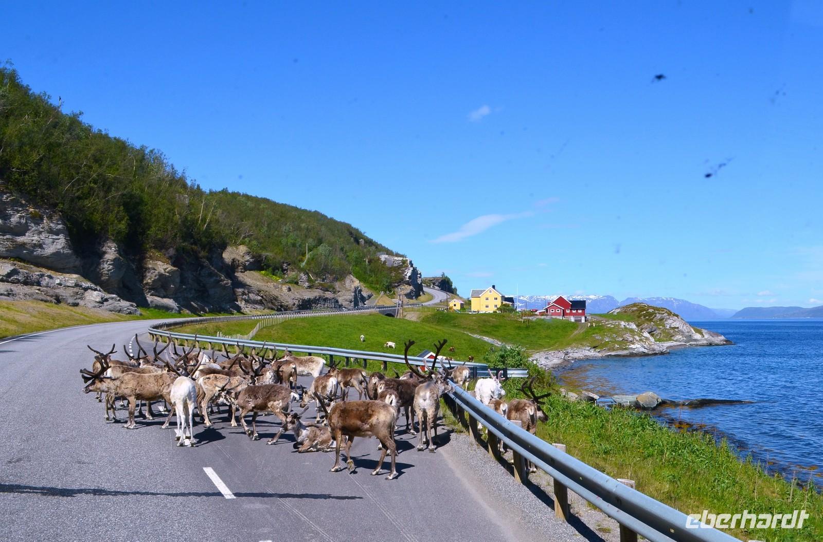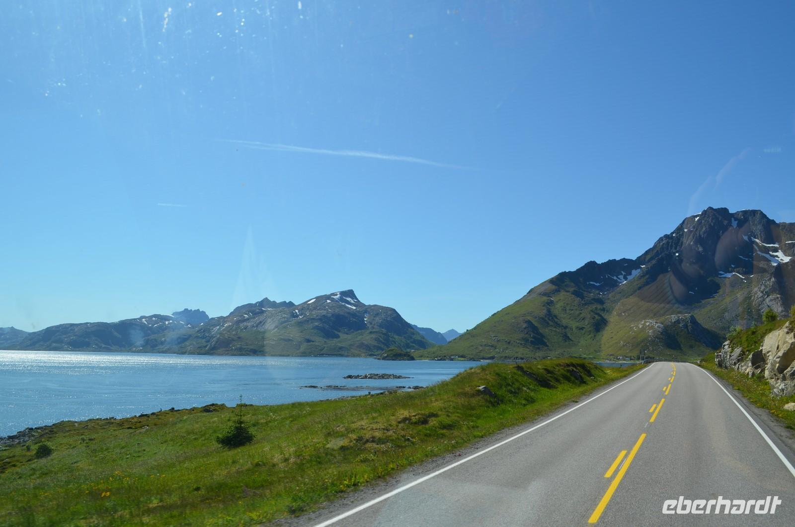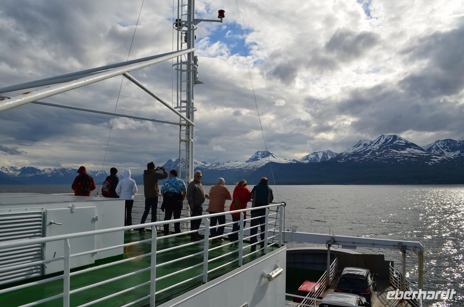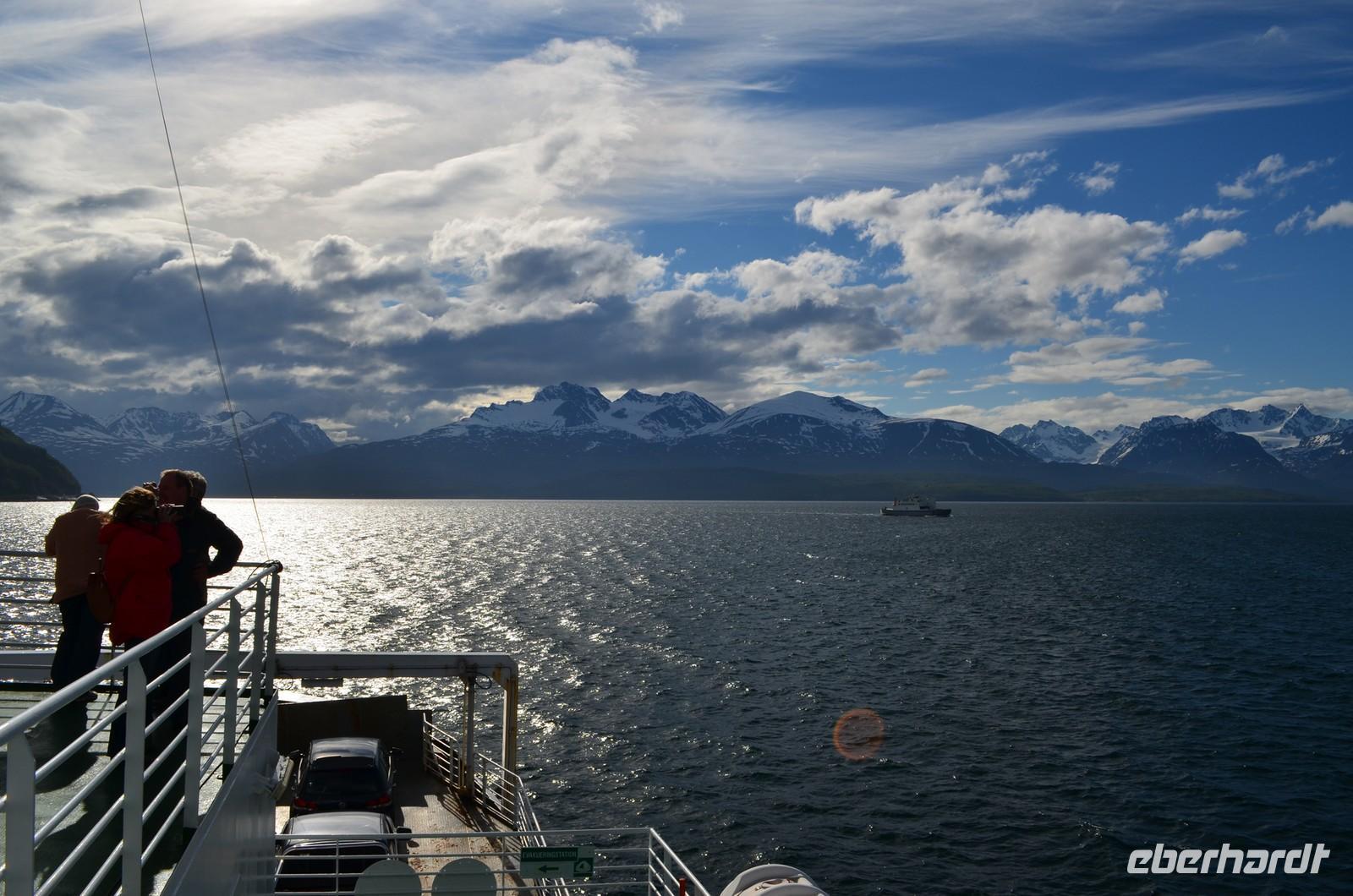 Gut gelaunt und voller schöner Eindrücke verlassen wir die Insel mit dem Nordkapp am nächsten Morgen. Das Wetter ist wieder sehr schön und wir fahren von
