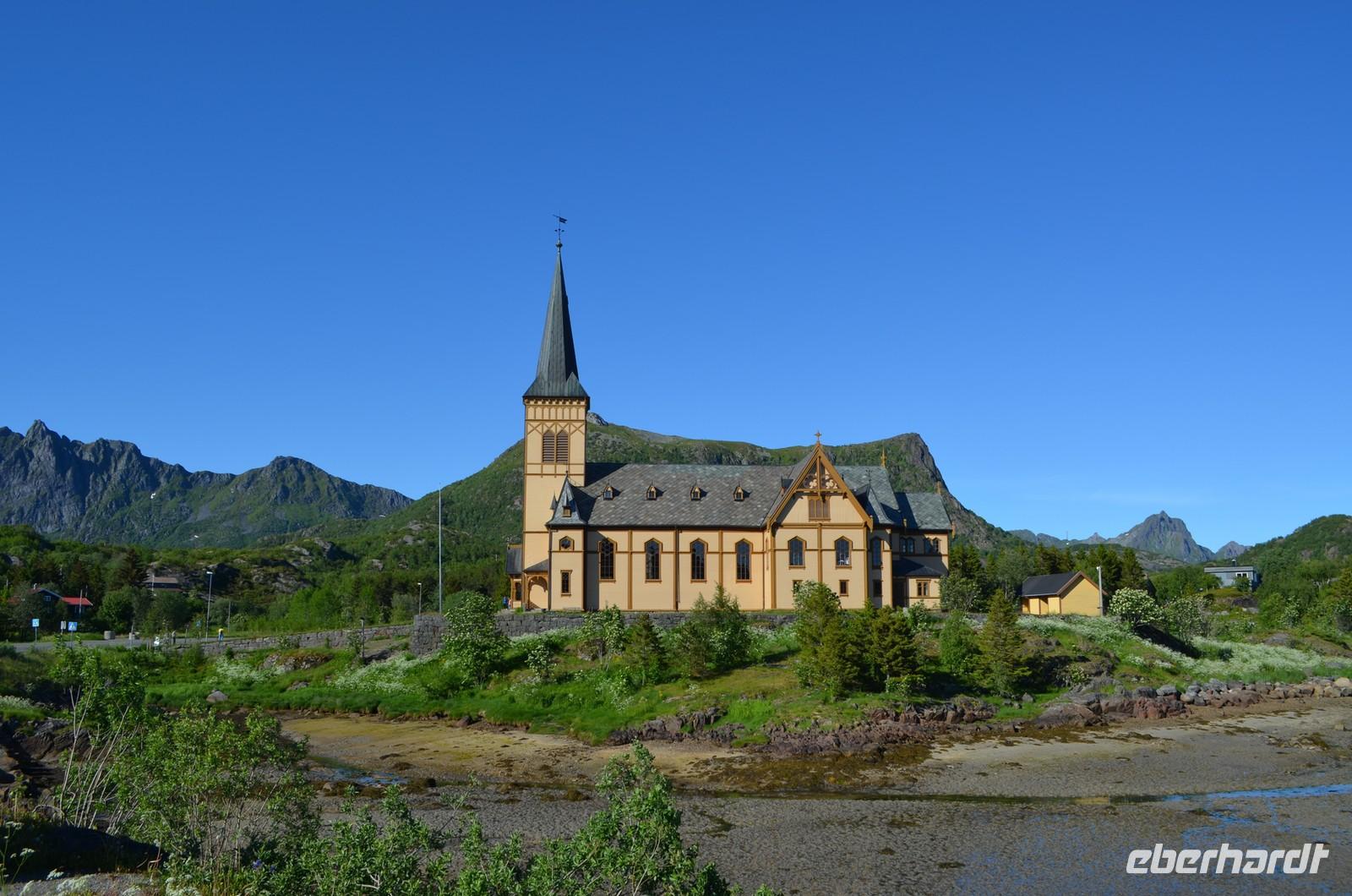 An der Küste entlang Richtung Stamsund setzen wir die Rundfahrt fort und dann die Küstenstraße mit Fotostopps zurück nach Svolvaer. Mit der Besichtigung der Lofotenkathedrale schließen wir die Tour ab.