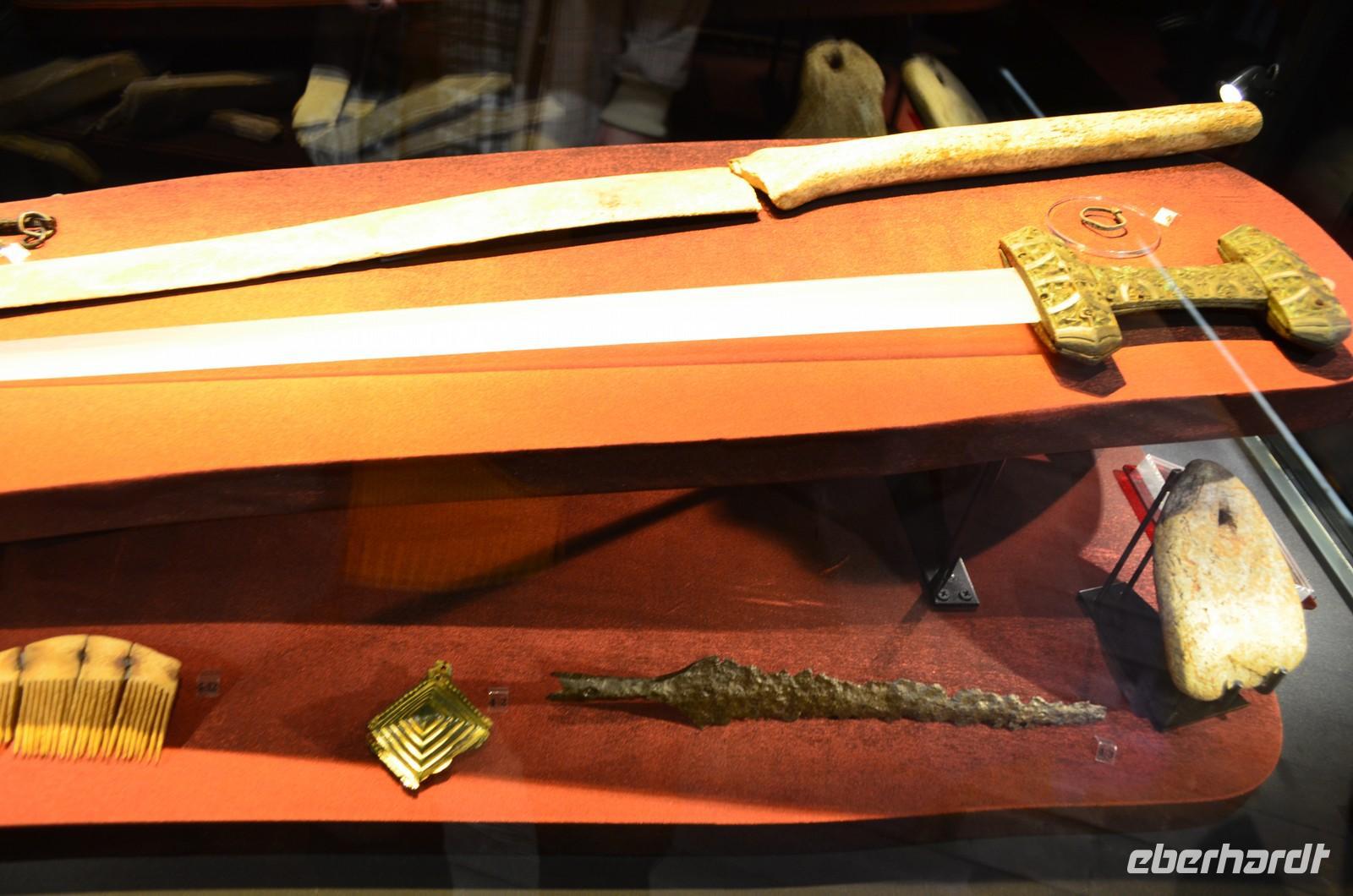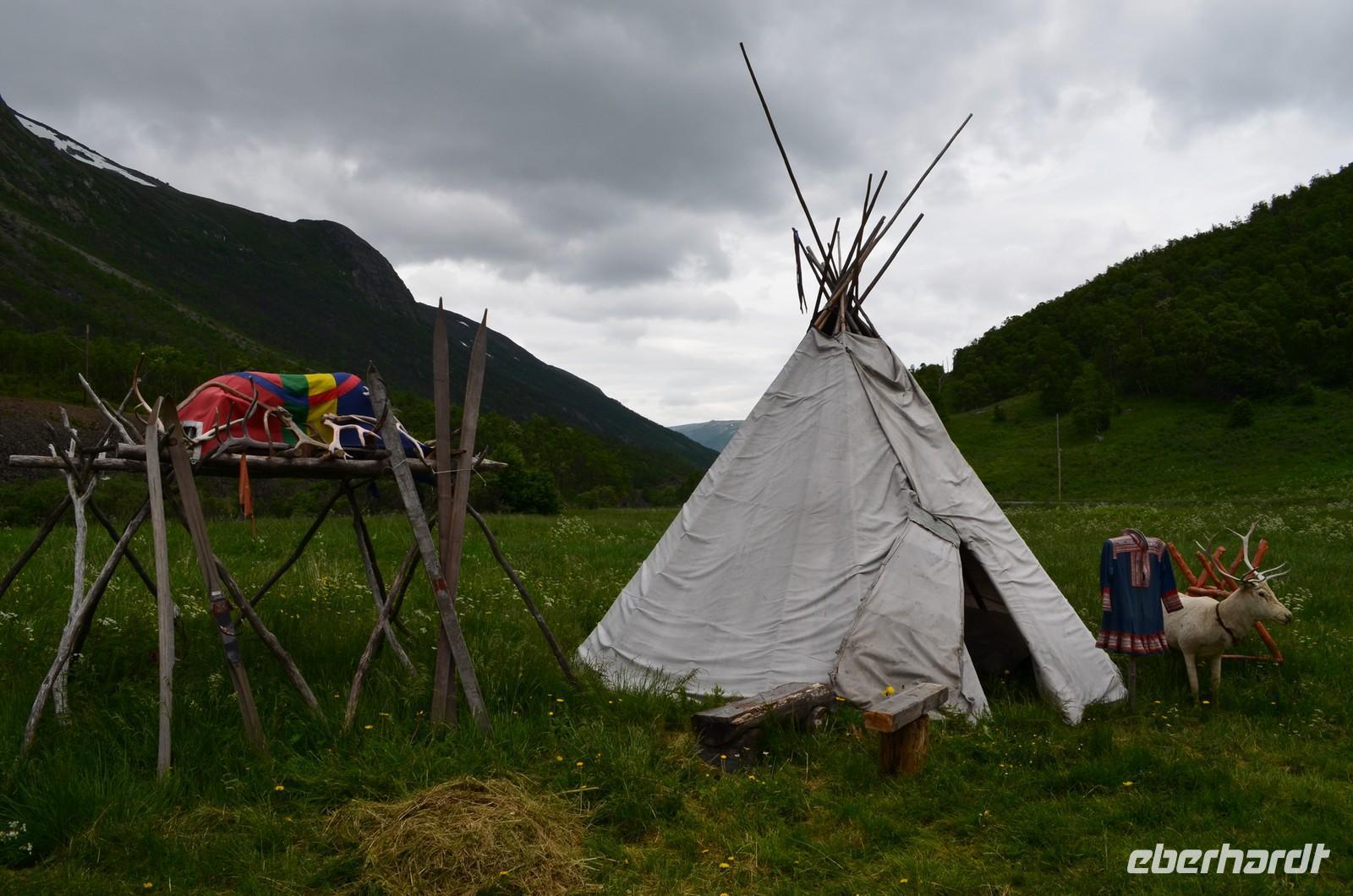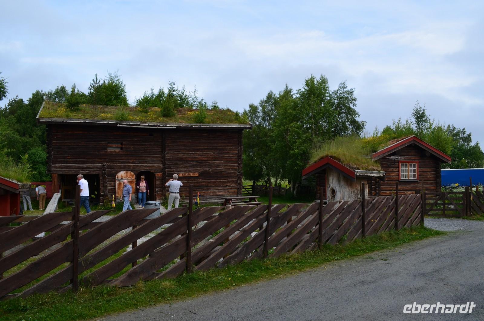 Später, in Karasjok, haben wir die Grenze nach Norwegen passiert, die Uhren wieder eine Stunde zurückgestellt und halten am Sapmi-Park - Info-Zentrum. Danach schauen wir uns auch die alten Wohn-häuser und Hütten im Freigelände des Sami-Museums an.