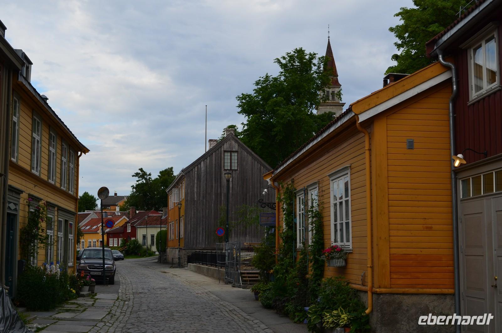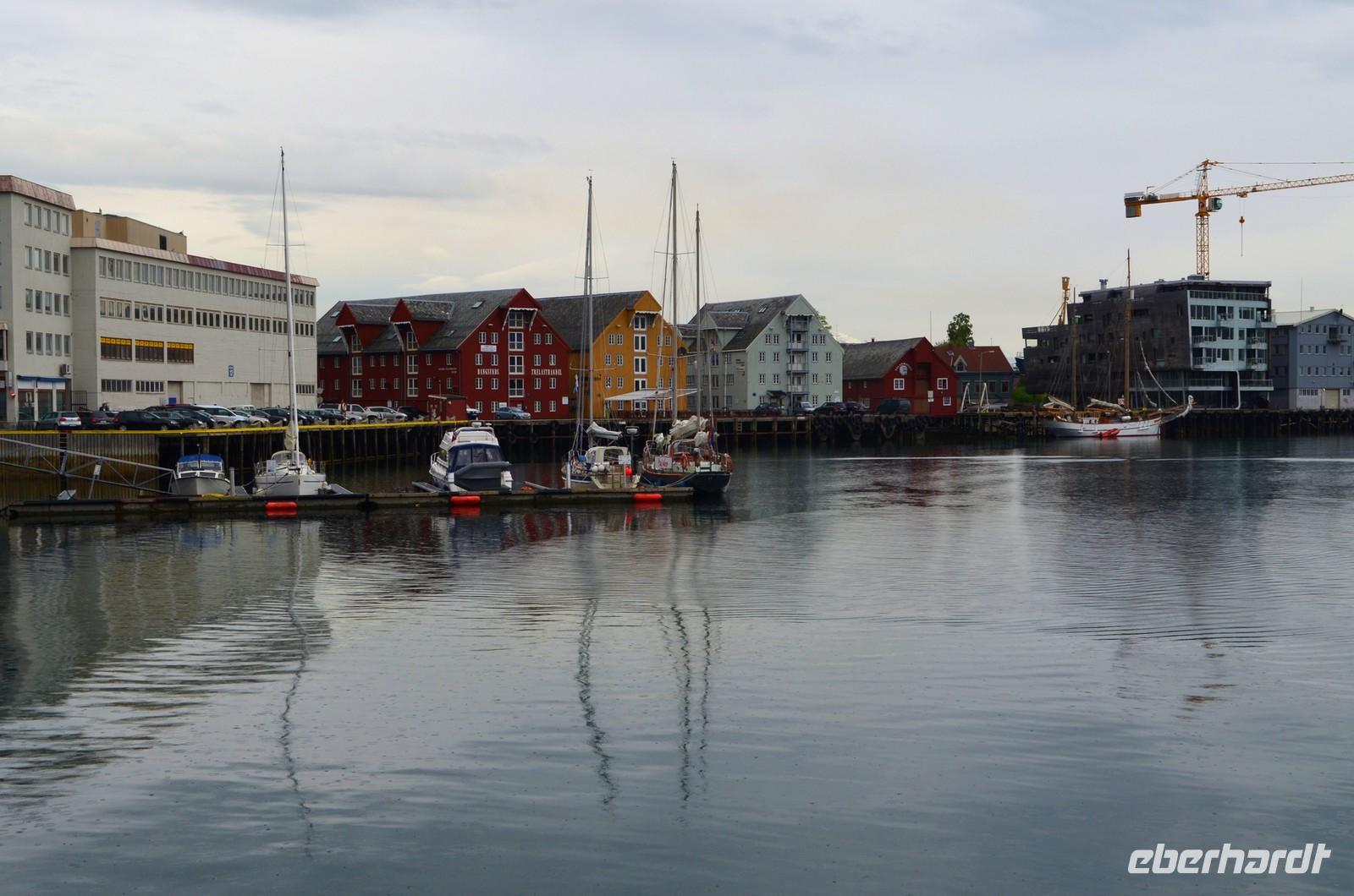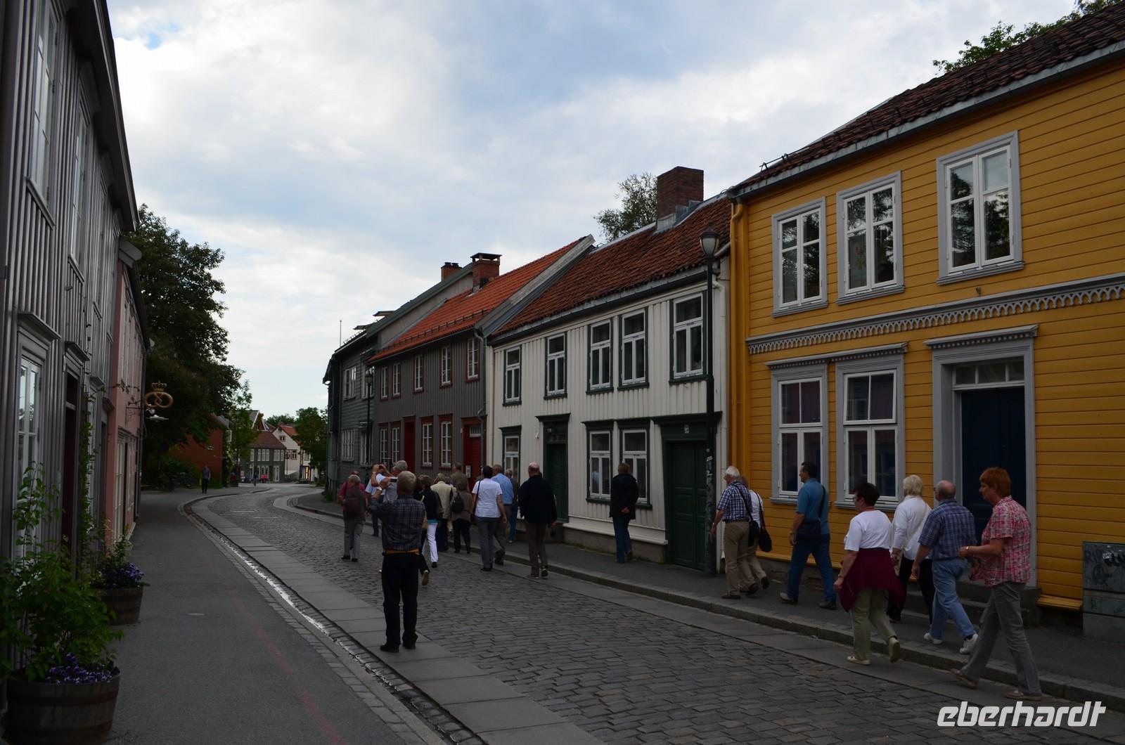 Am nächsten Morgen ist es regnerisch, trotzdem unternehmen wir nach dem Kofferladen einen kleinen Stadtrundgang durch die Straßen mit den historischen Holzhäusern, dem Dom, dem Amundsen-Denkmal und dem Hafen.