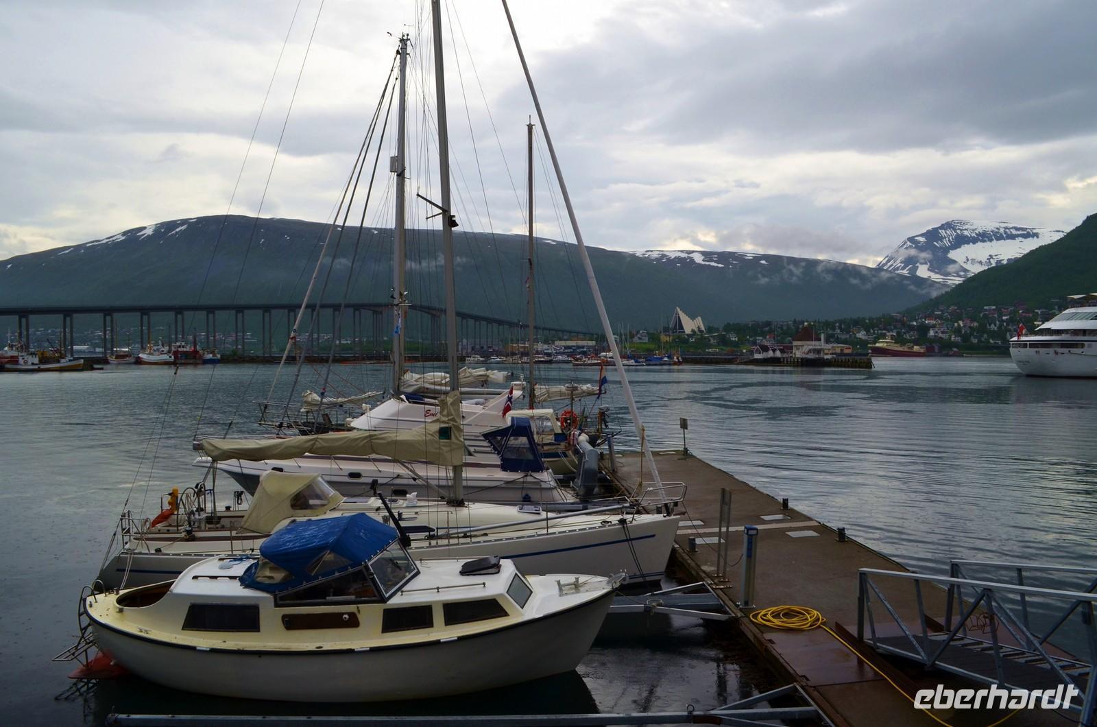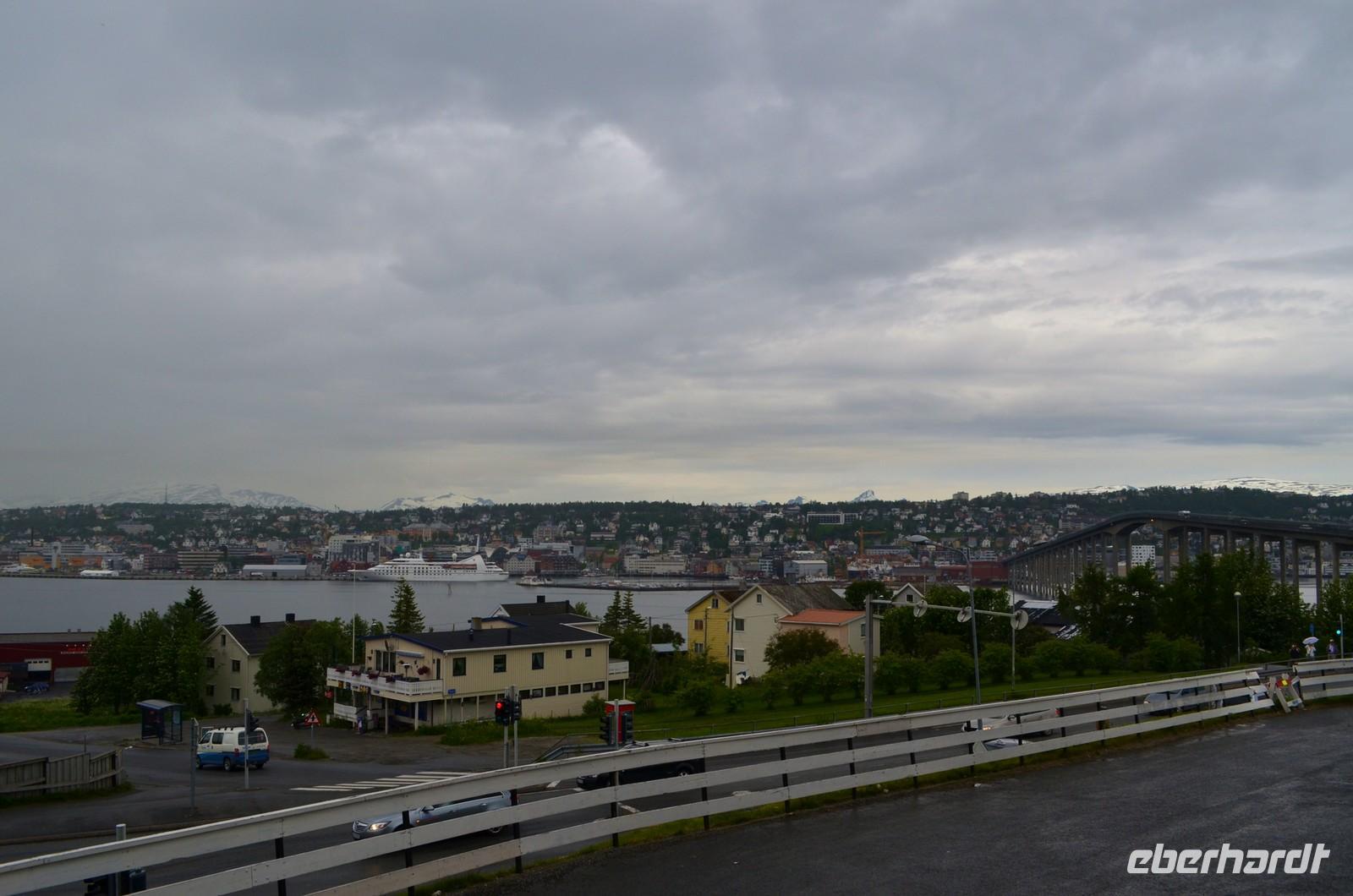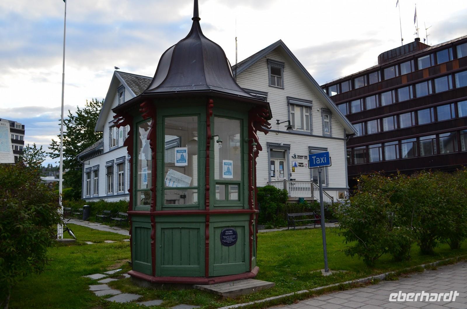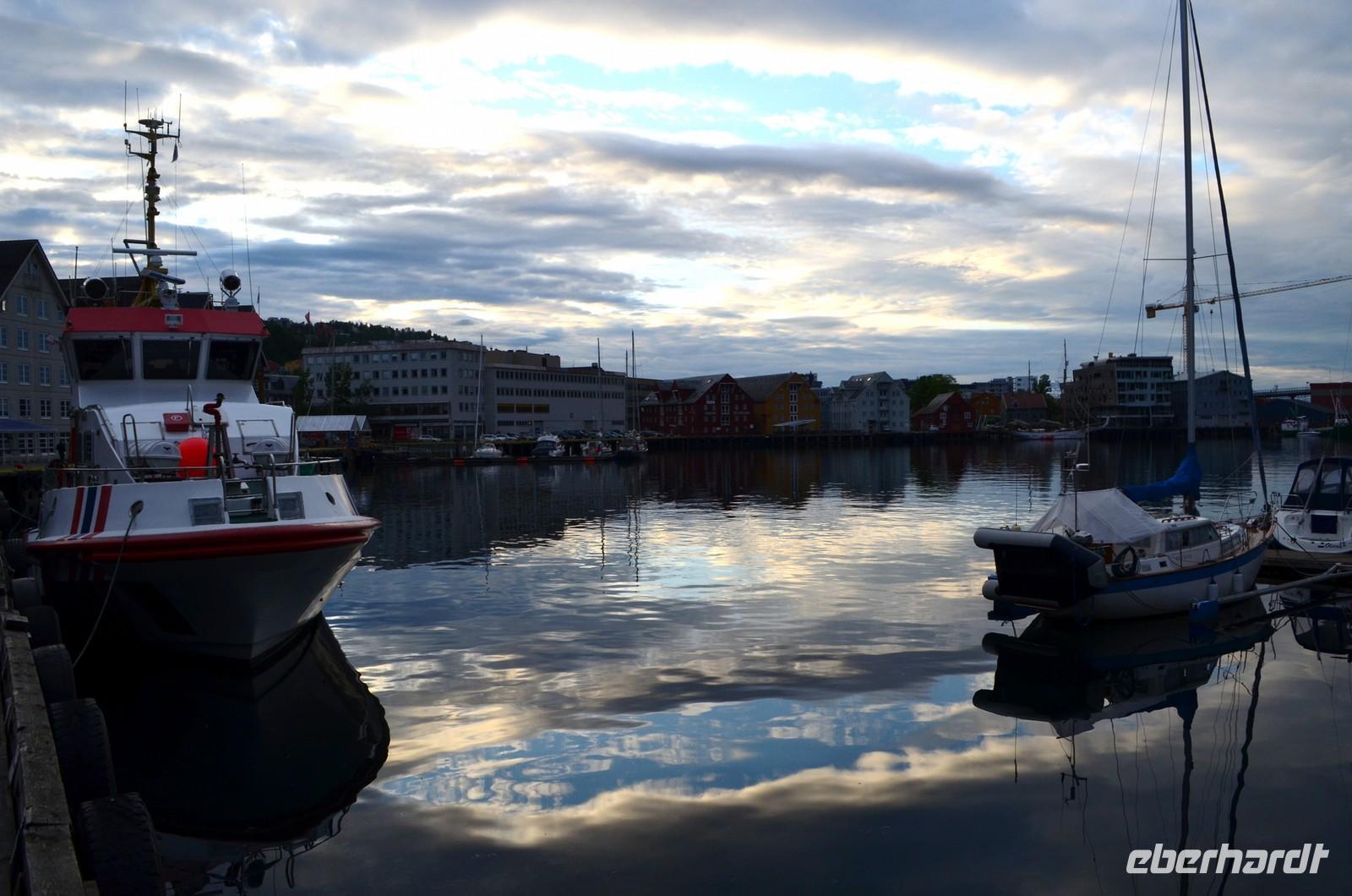 Am nächsten Morgen ist es regnerisch, trotzdem unternehmen wir nach dem Kofferladen einen kleinen Stadtrundgang durch die Straßen mit den historischen Holzhäusern, dem Dom, dem Amundsen-Denkmal und dem Hafen.