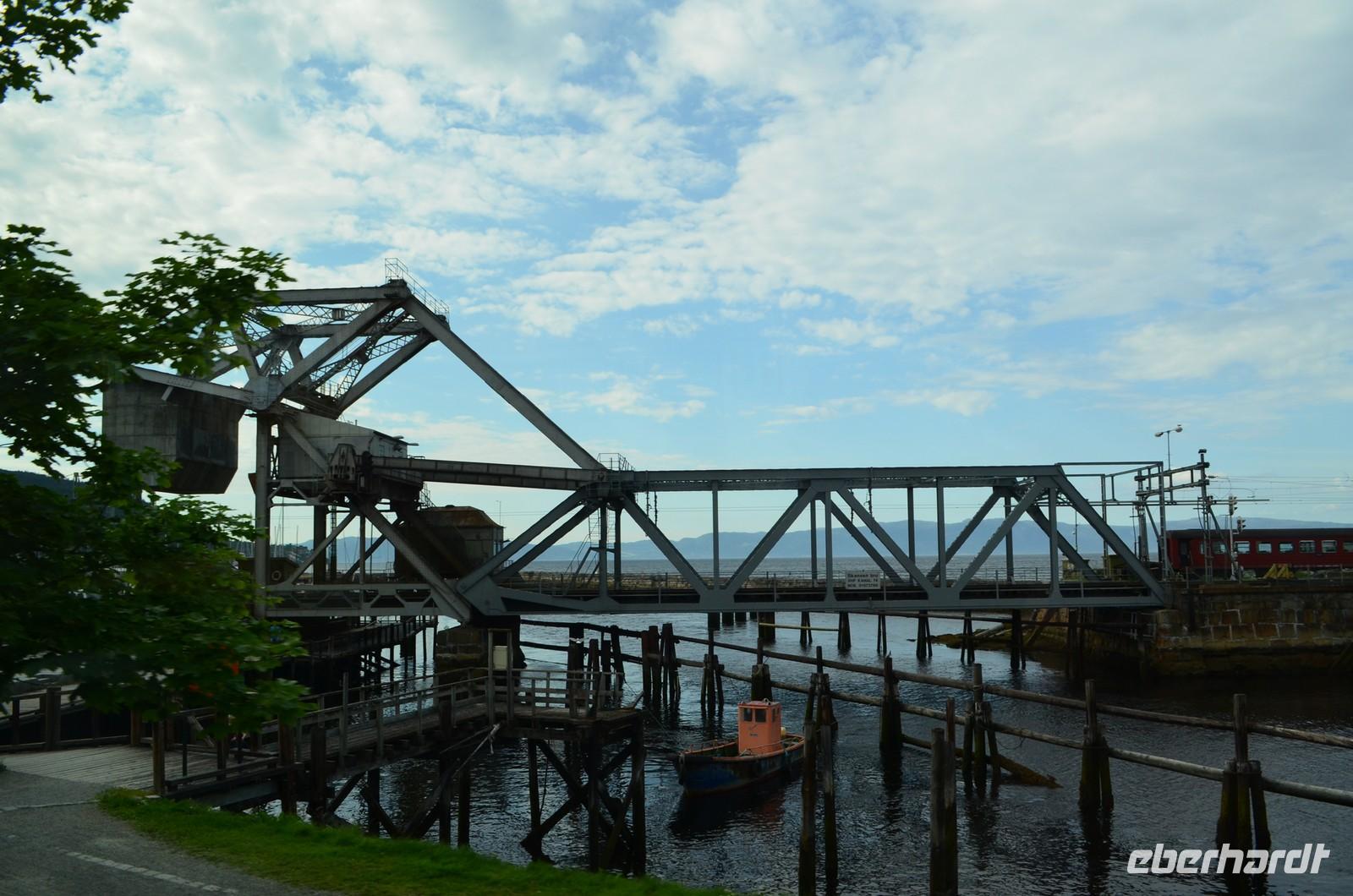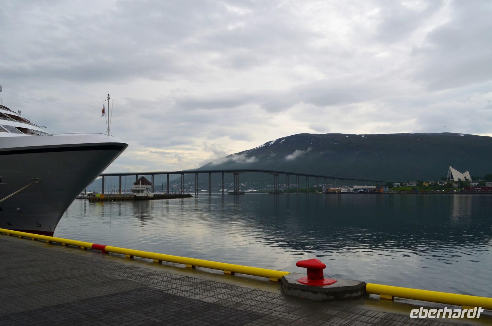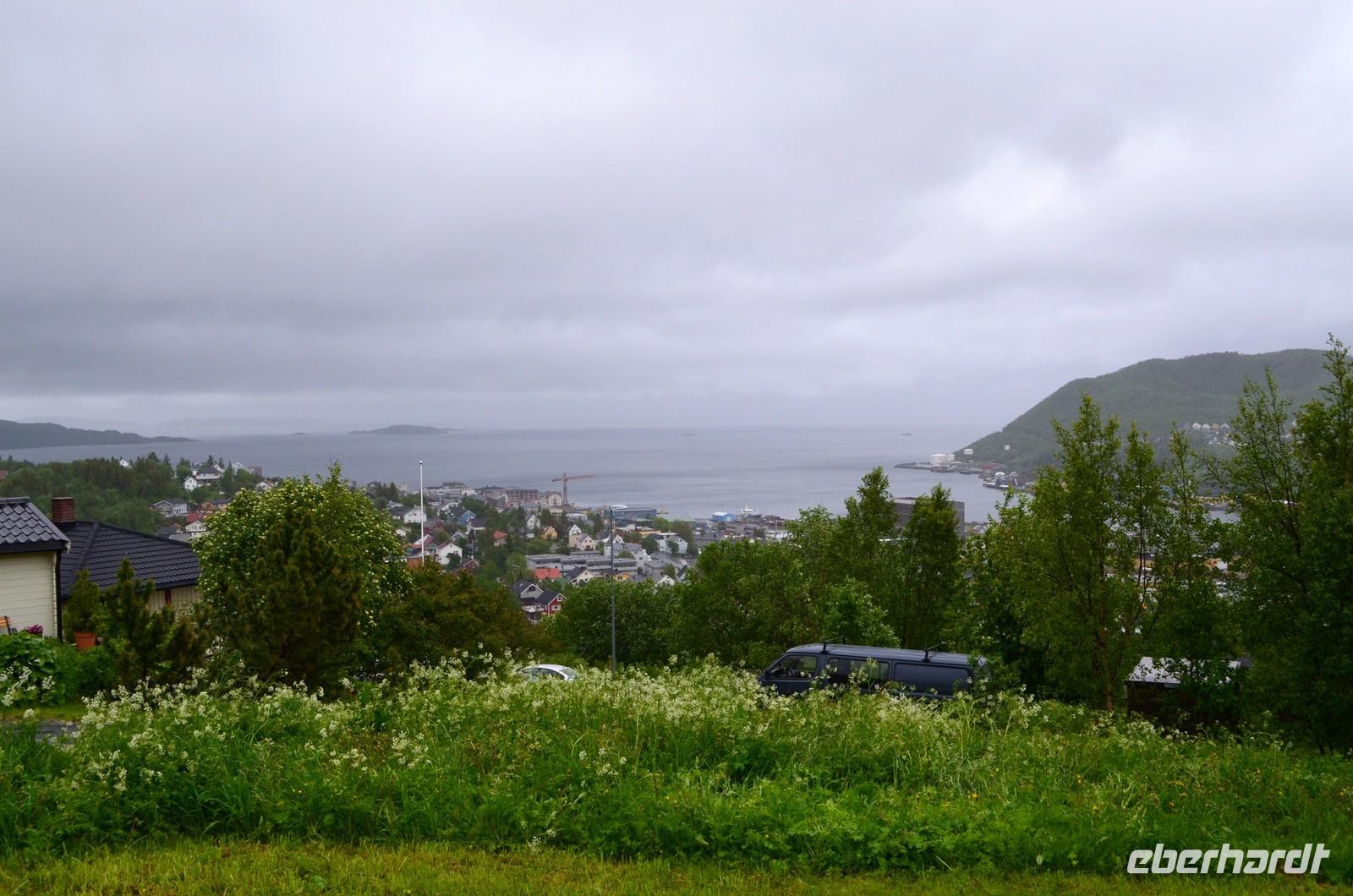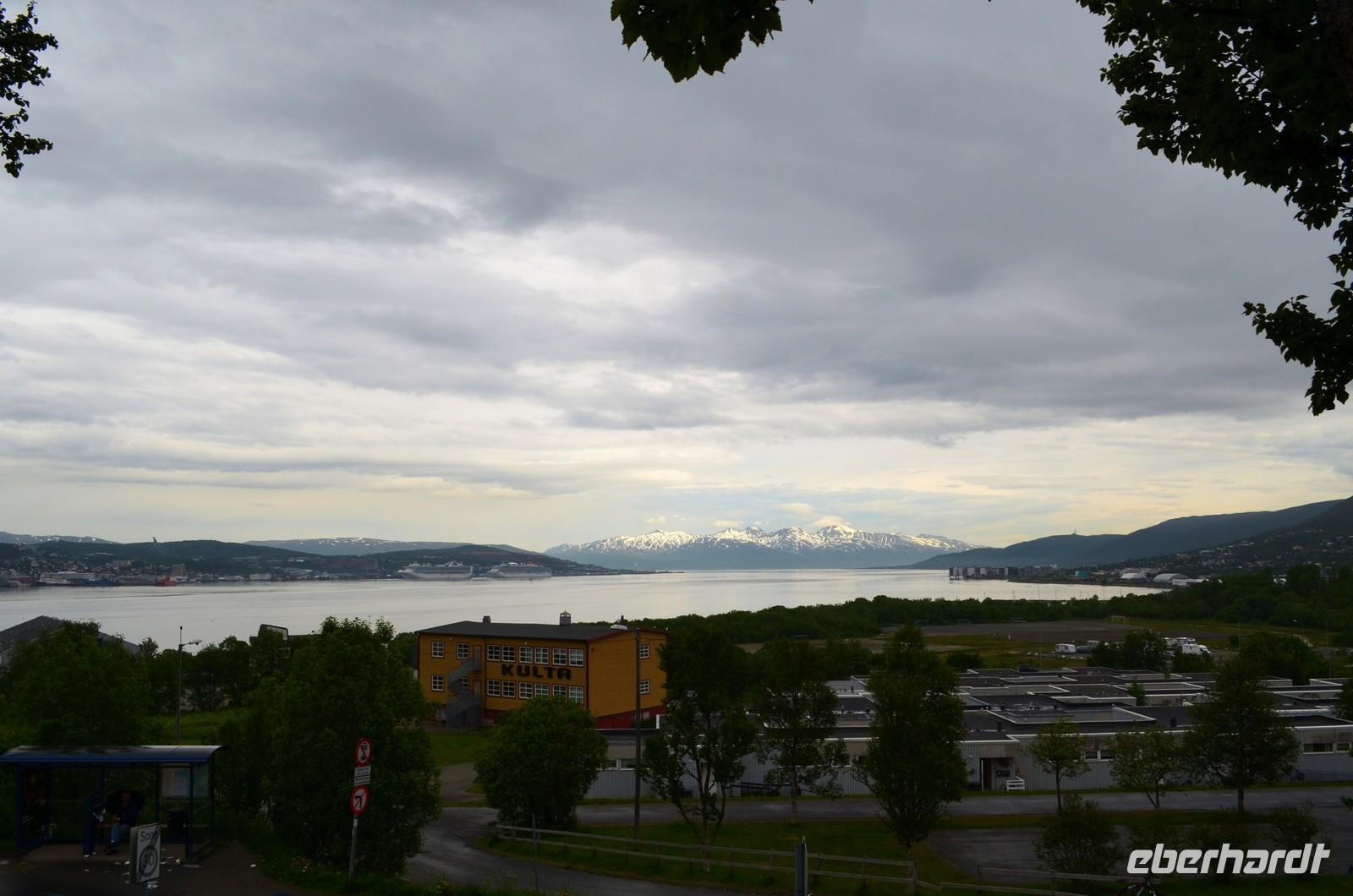 Die Weiterfahrt führt uns bis zum Rasthof vor der Brücke am Beginn des Königs Olaf Weges in Steinsand. Von hier ab geht es auf die Inselwelt der Vesteralen, nach Harstad. Am Thon Hotel Harstad starten wir 17 Uhr zur Stadtrundfahrt als weiteres eberhardt-WOW. Mit der lustigen Stadtführerin Sigrid bestaunen wir die Sehenswürdigkeiten von Harstad, auch wenn es jetzt sehr regnerisch ist und die Sicht entsprechend schlecht. Die eingeschlossene Besichtigung und Führung durch die Adolfkanone ist trotzdem ein besonderes Erlebnis und hochinteressant.