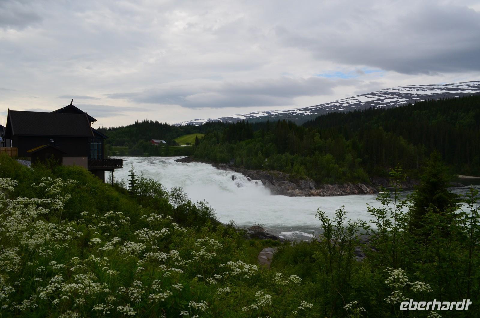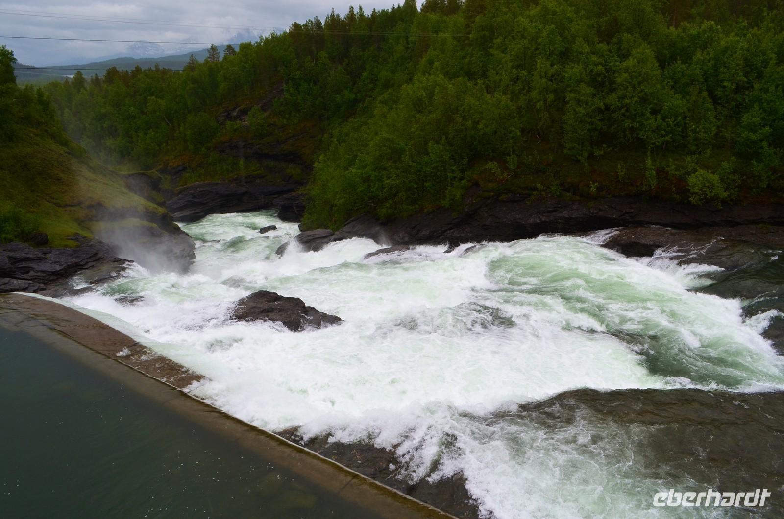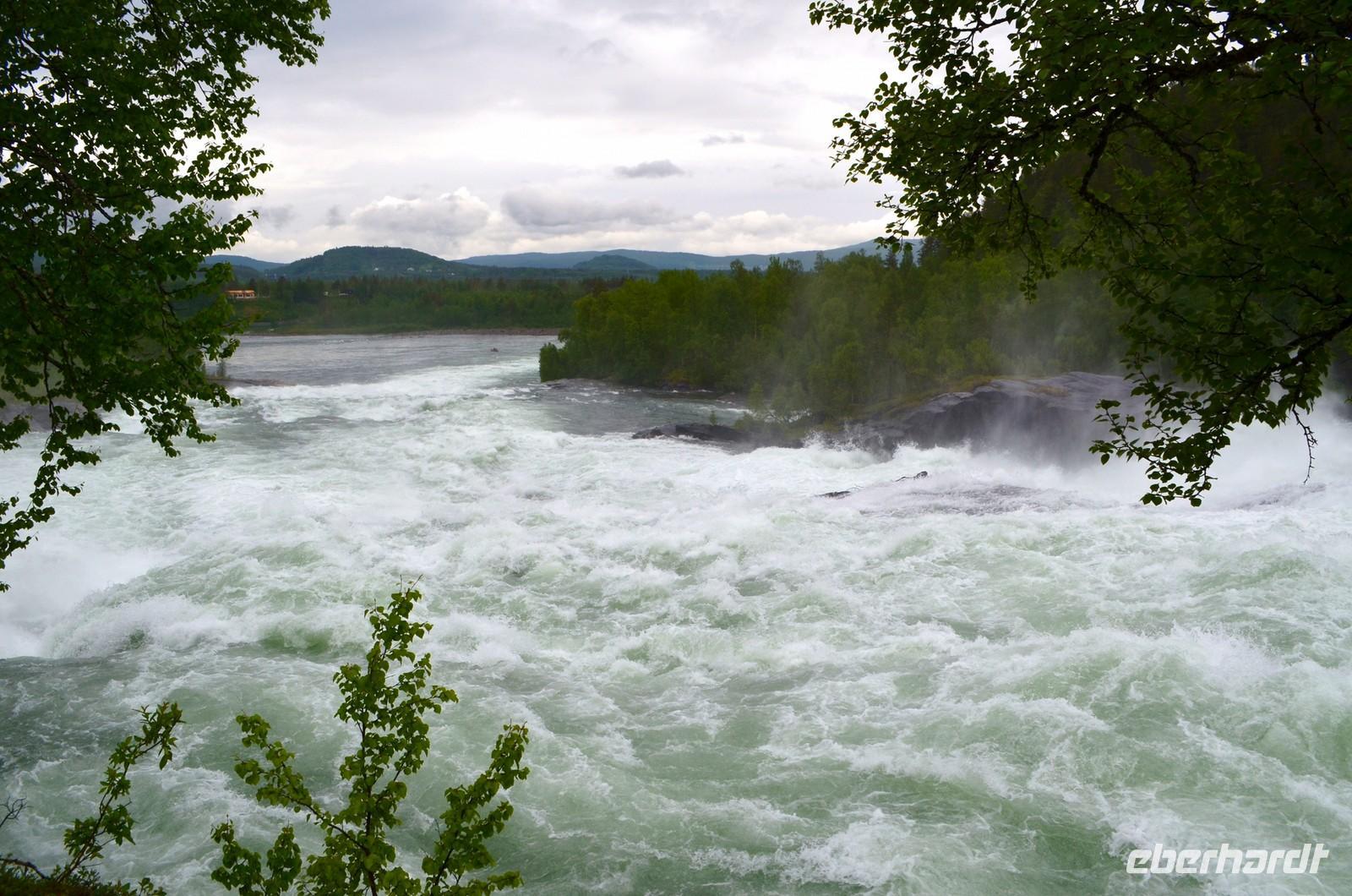 Von Mosjøen fahren wir vorbei am Laksfoss Wasserfall Richtung Trondheim.