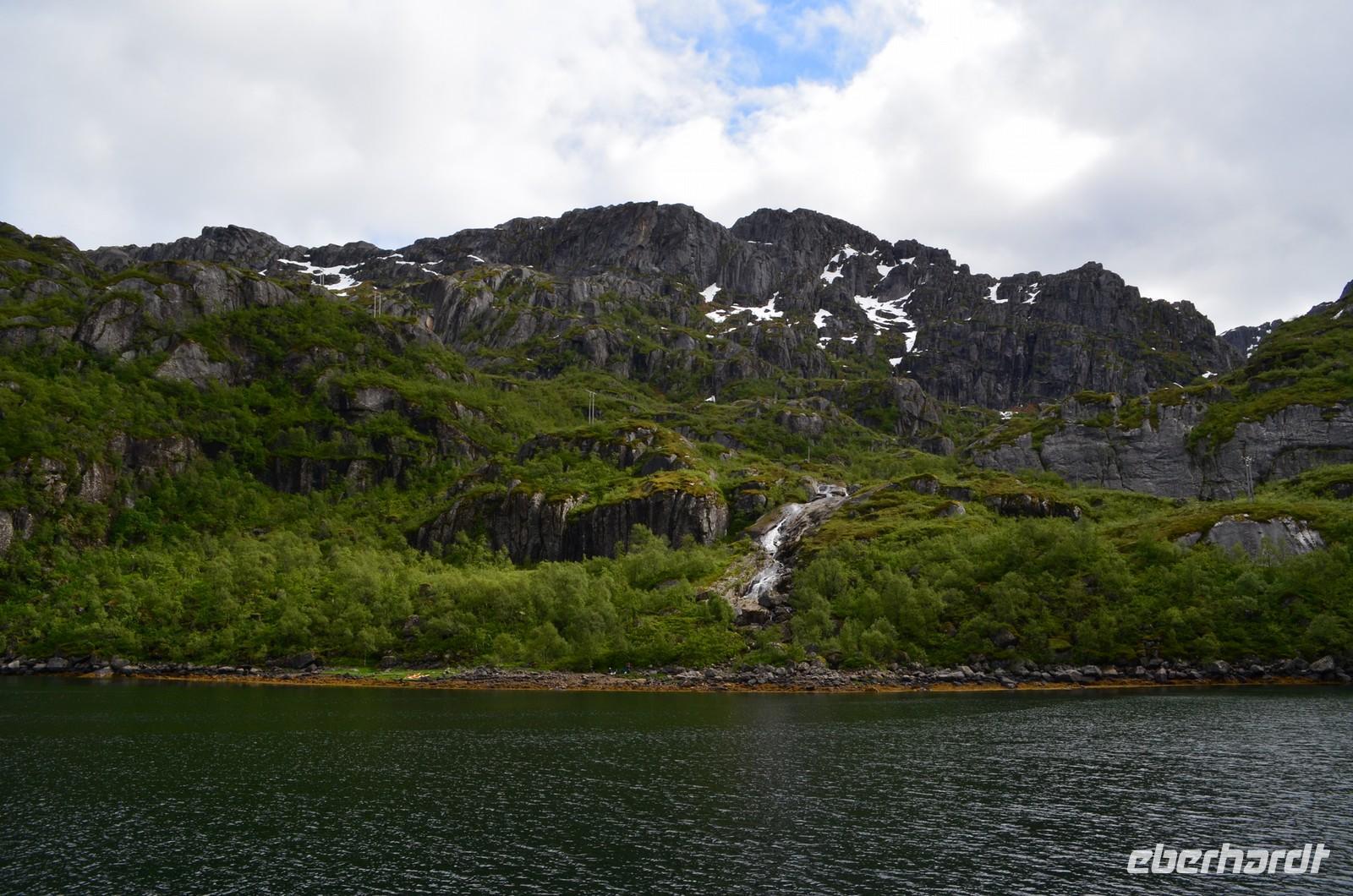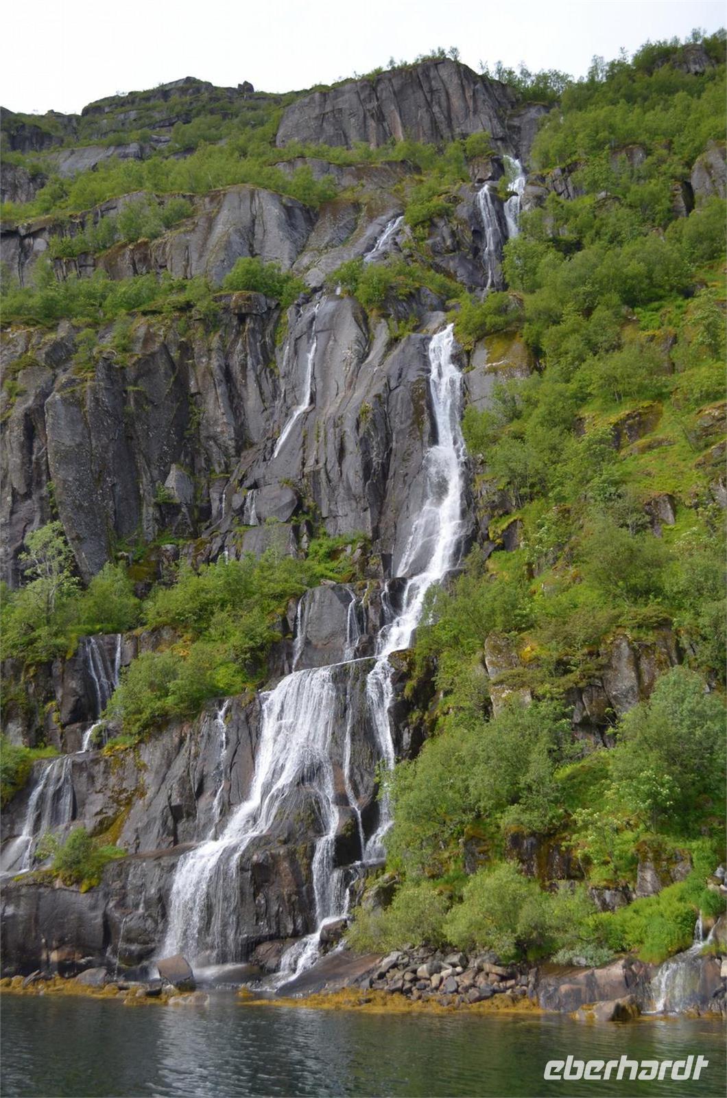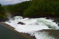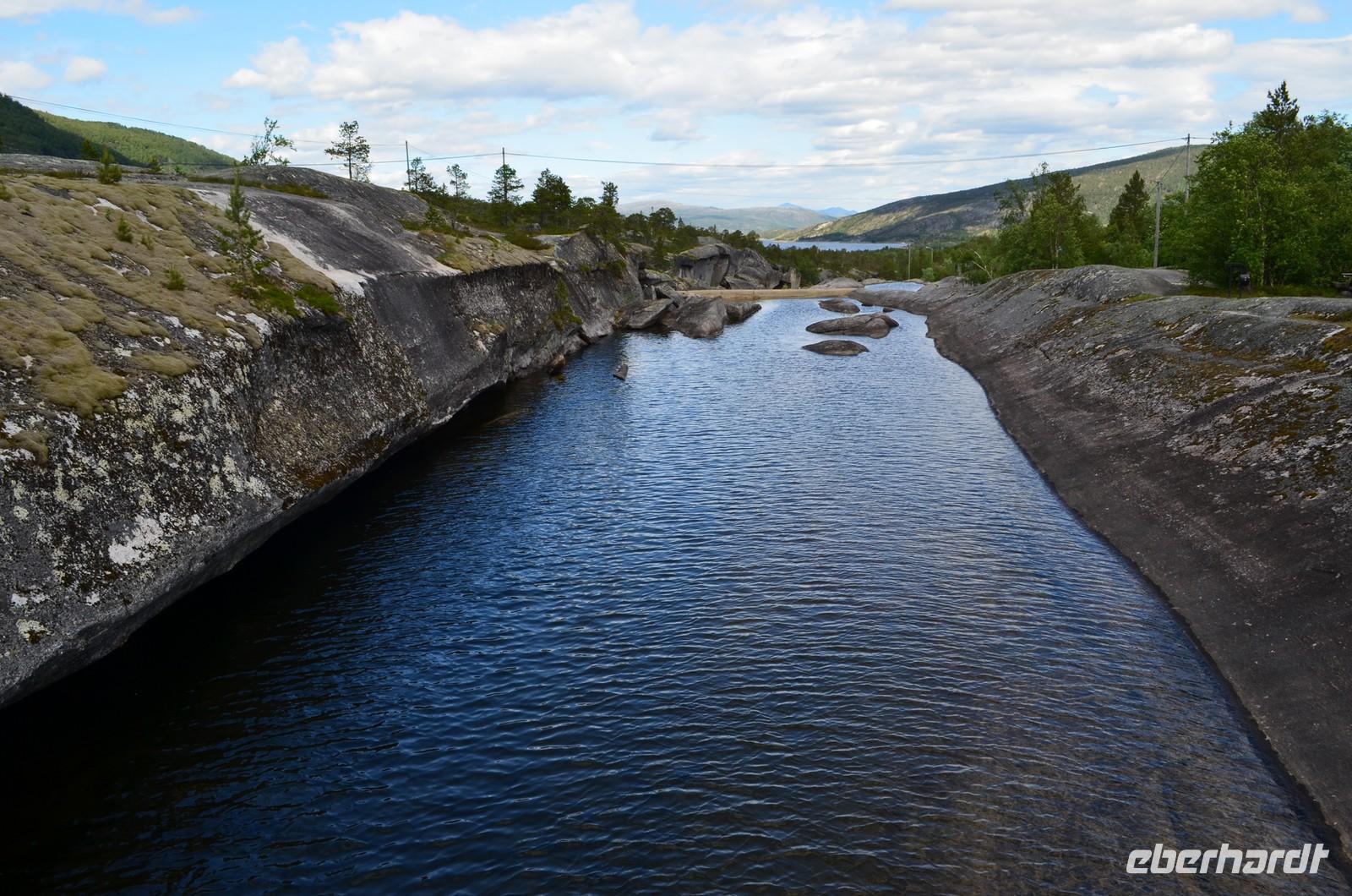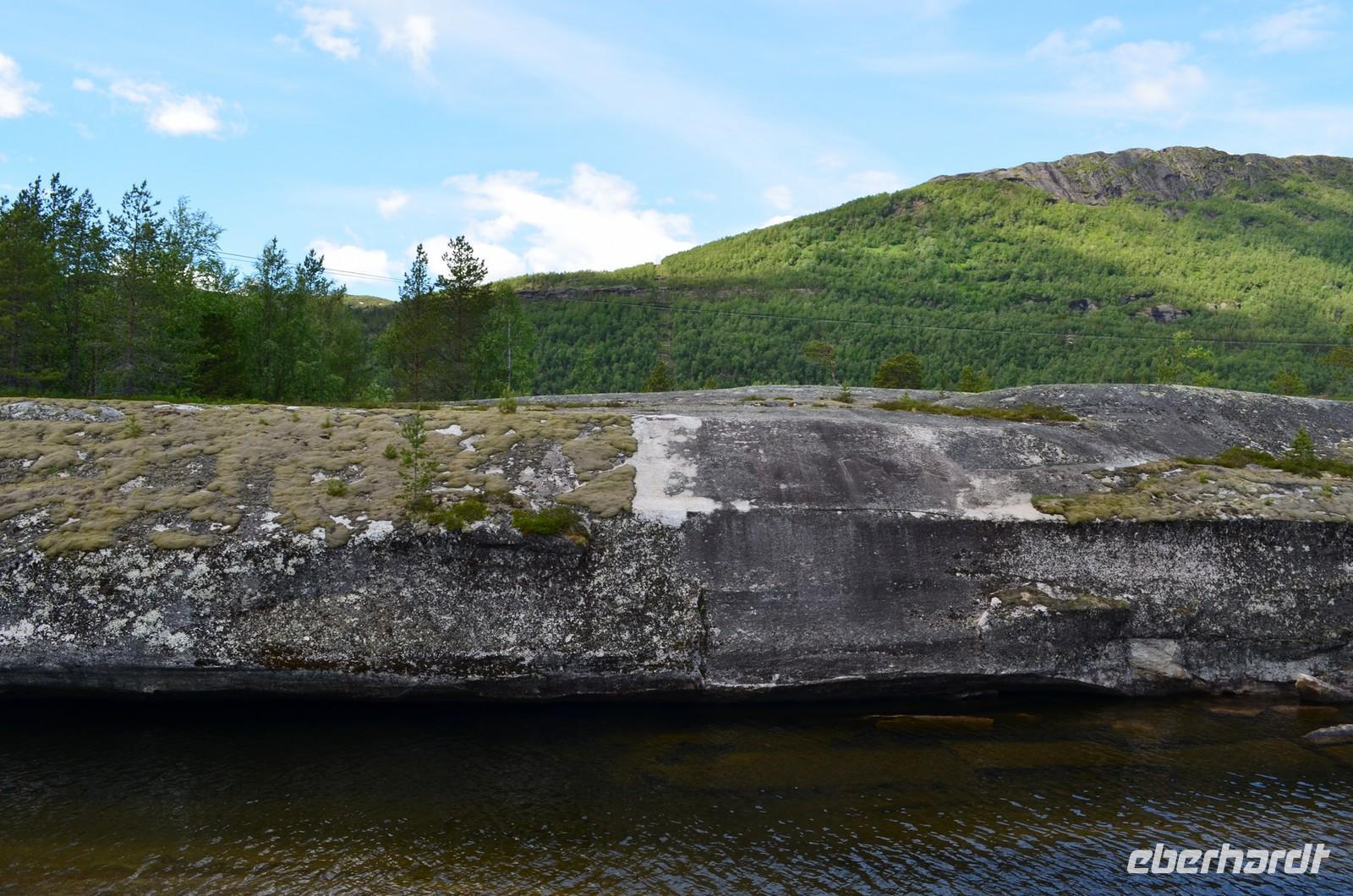 Von Mosjøen fahren wir vorbei am Laksfoss Wasserfall Richtung Trondheim.