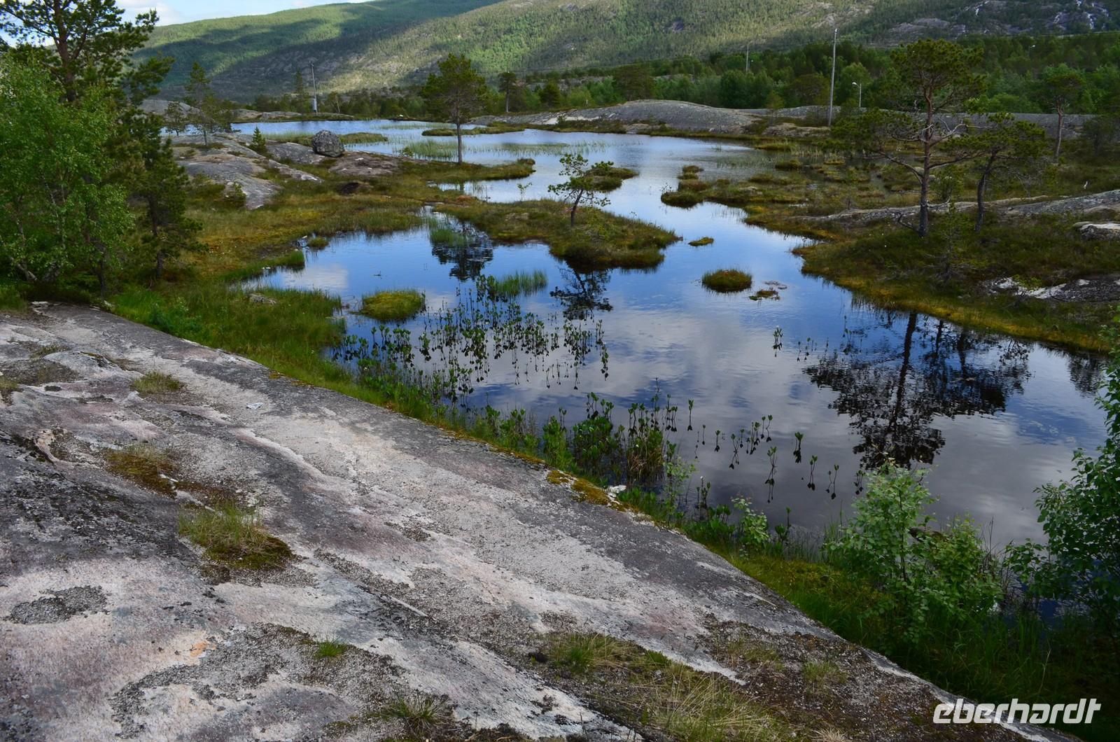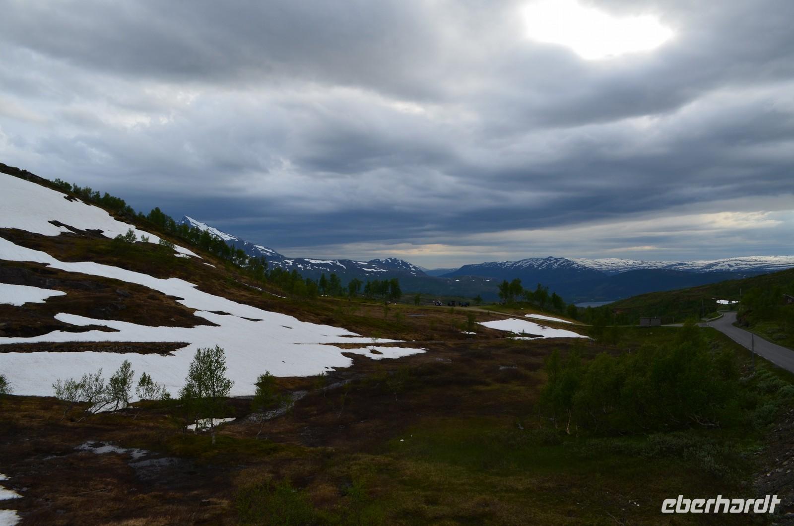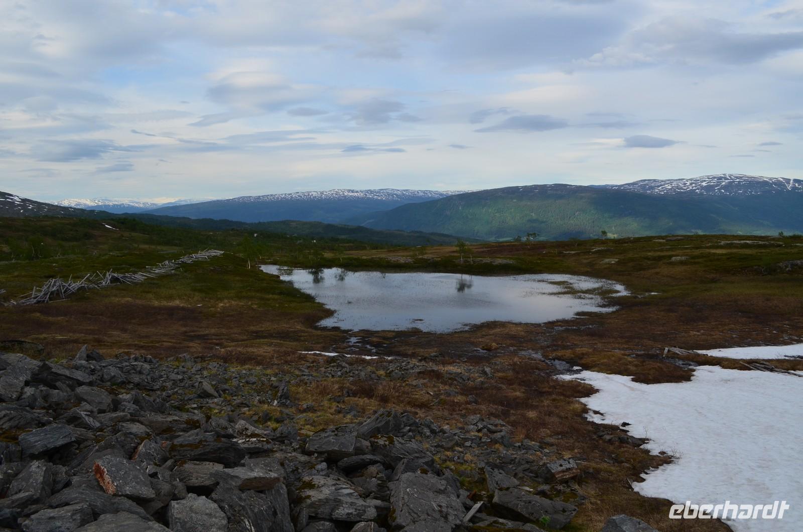 Erste Rast ist in Trondelag, die nächste in Grong, vor dem Snäsasee.
