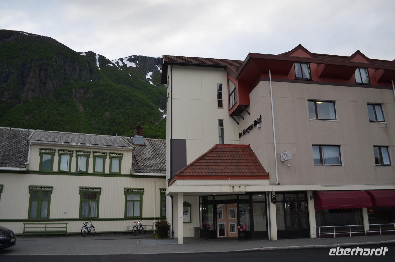 Abends dann die Ankunft in Mosjøen, dem Hotel mit einer wunderschönen Lage, inmitten der historischen Holzhäuser der Stadt und einfach einem traumhaften Abendessenbuffet.