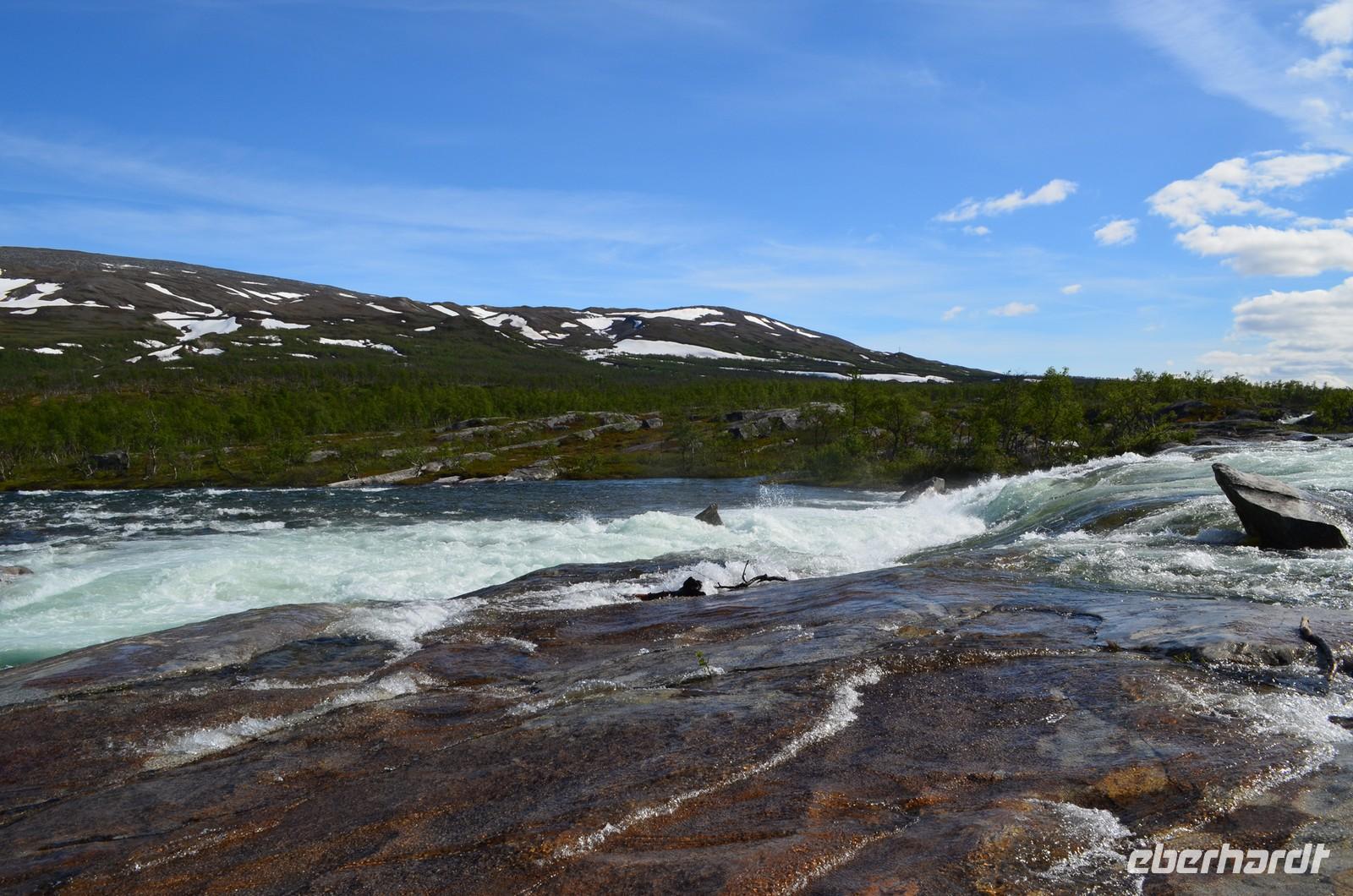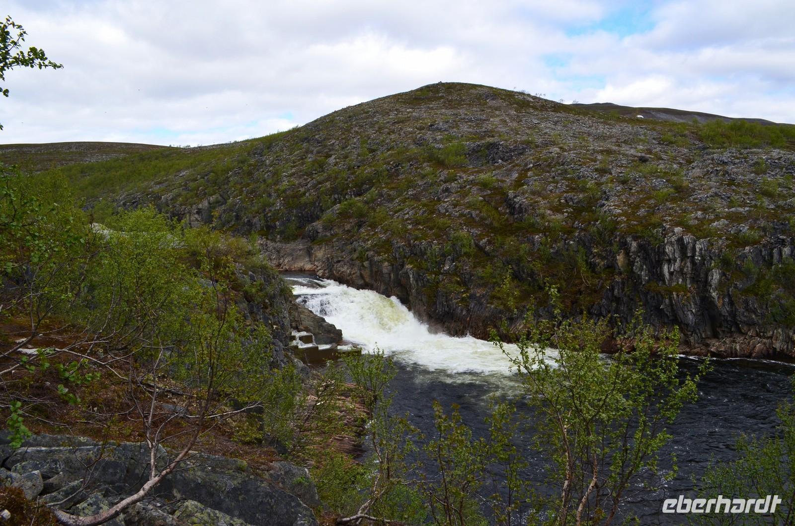 Honningvag zuerst nach Olderfjord und von hier hinauf aufs Fjell, wo wir einen schönen Wasserfall mit Lachstreppe fotografieren können.