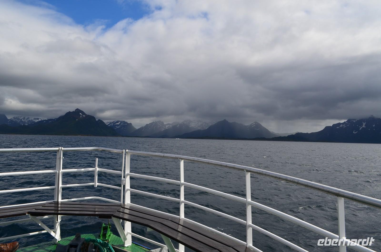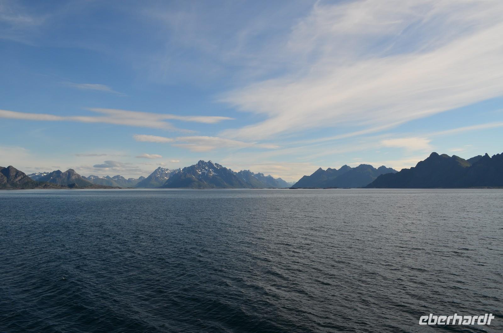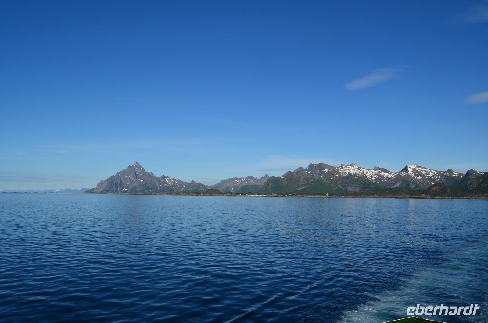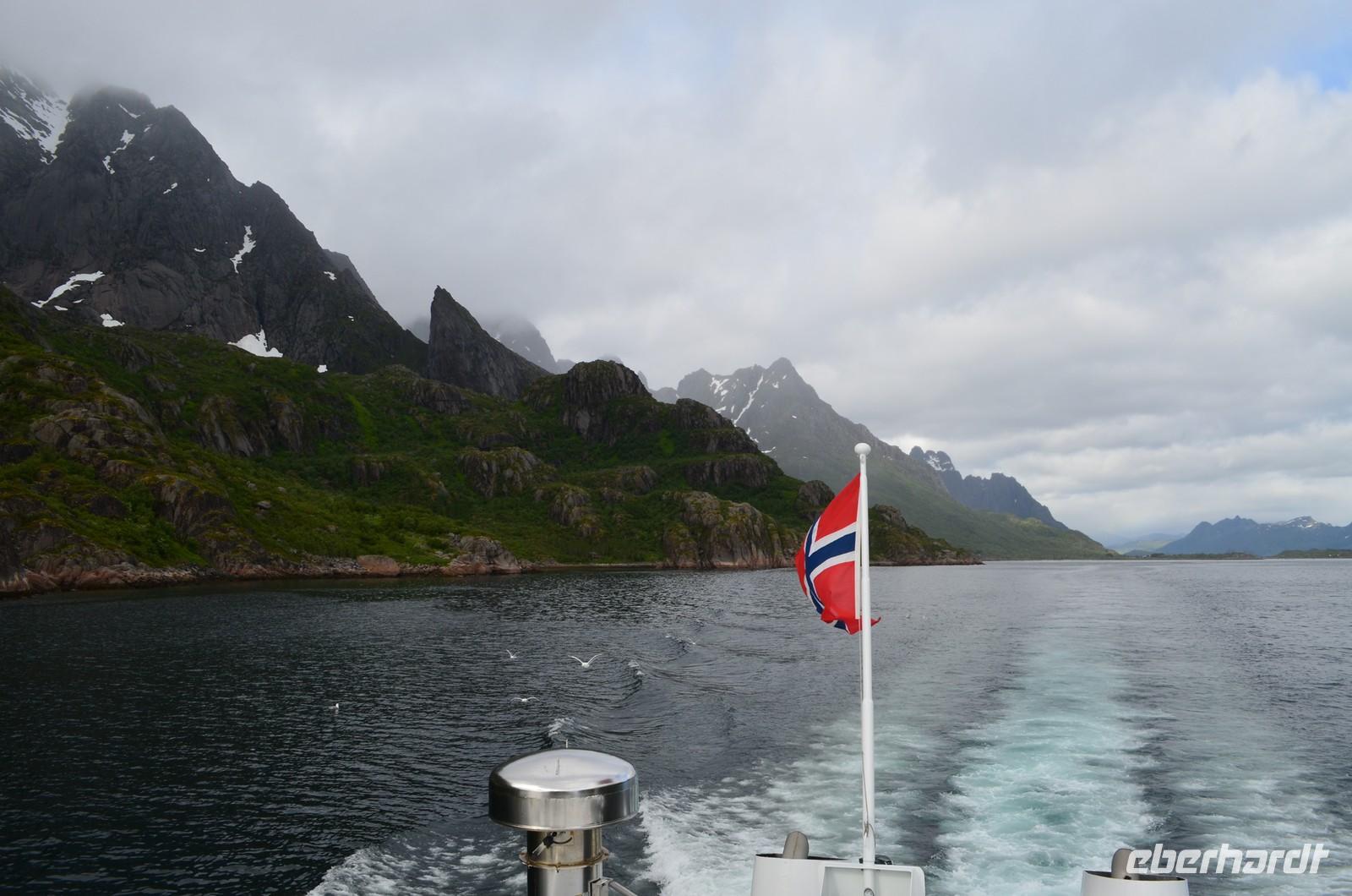 Danach treffen wir uns zum gemeinsamen Boarding unseres Charterschiffes. Das schöne Wetter hat uns wieder eingeholt und unser Kapitän legt ab zu einer tollen Panoramafahrt von den Vesteralen zu den Lofoten - durch den Raftsund, den Schwarzsund und den Trollfjord bis Svolvaer. Es gibt kostenfrei Tee und Kaffee an Bord und die herrlichen Aus- und Ansichten, das Spiel der Farben und des Lichtes sind phantastisch.