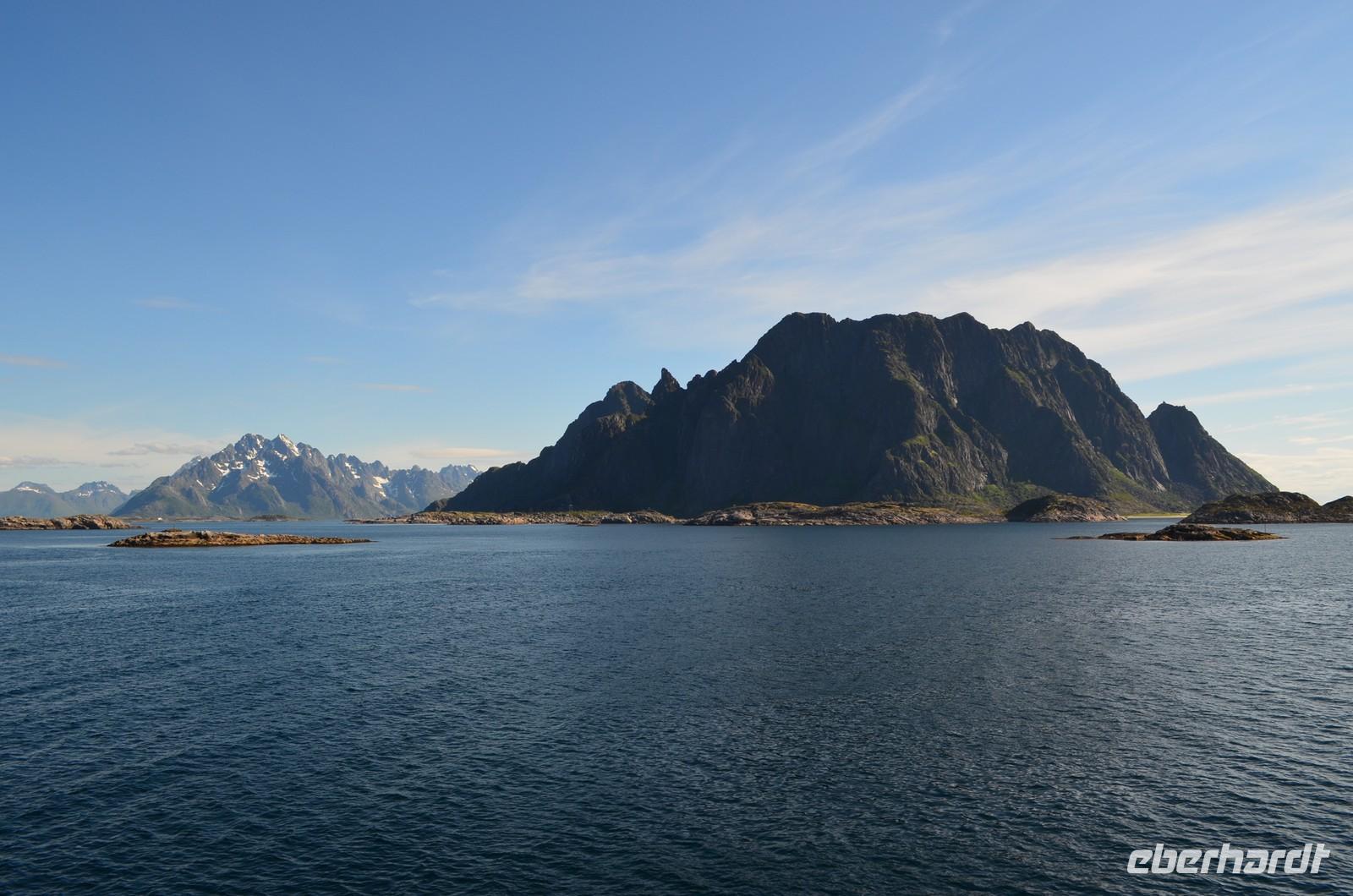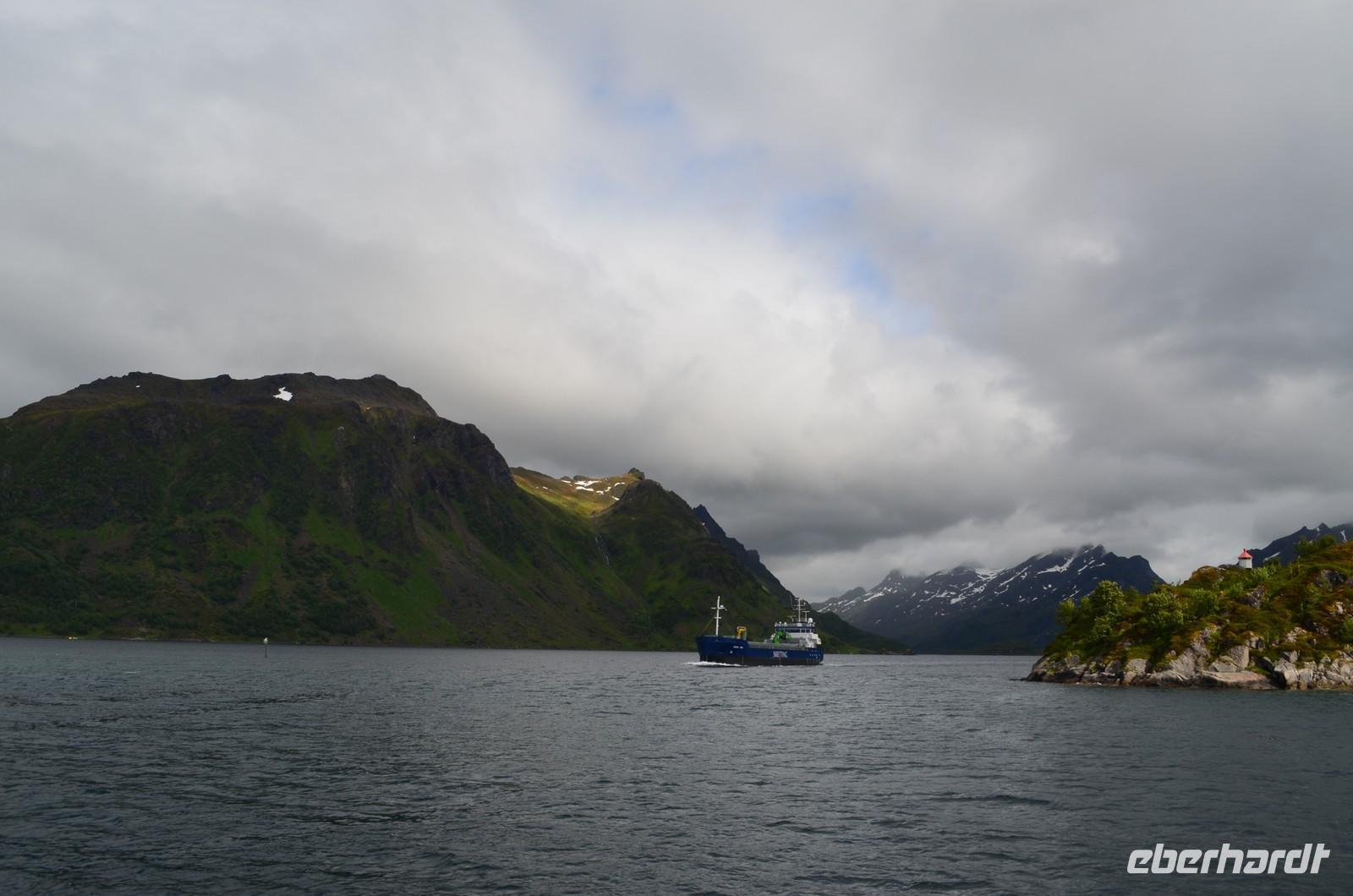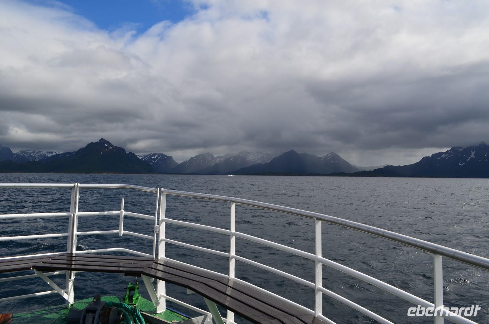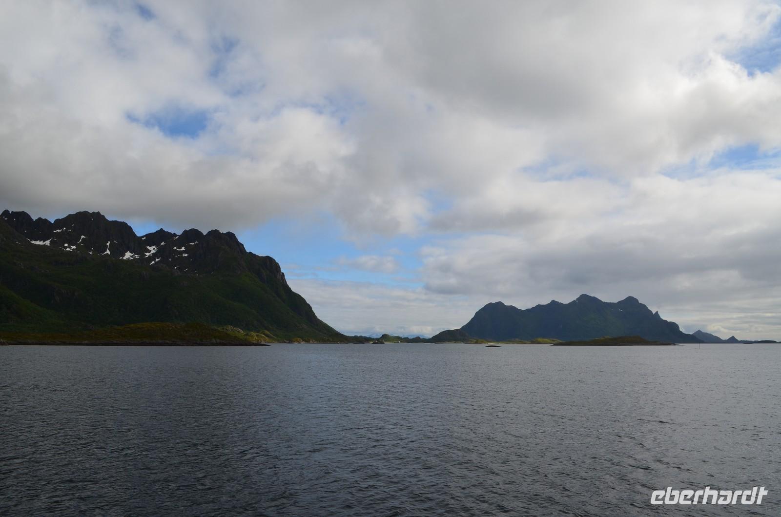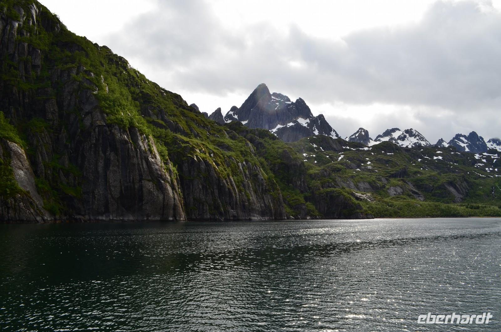 Danach treffen wir uns zum gemeinsamen Boarding unseres Charterschiffes. Das schöne Wetter hat uns wieder eingeholt und unser Kapitän legt ab zu einer tollen Panoramafahrt von den Vesteralen zu den Lofoten - durch den Raftsund, den Schwarzsund und den Trollfjord bis Svolvaer. Es gibt kostenfrei Tee und Kaffee an Bord und die herrlichen Aus- und Ansichten, das Spiel der Farben und des Lichtes sind phantastisch.
