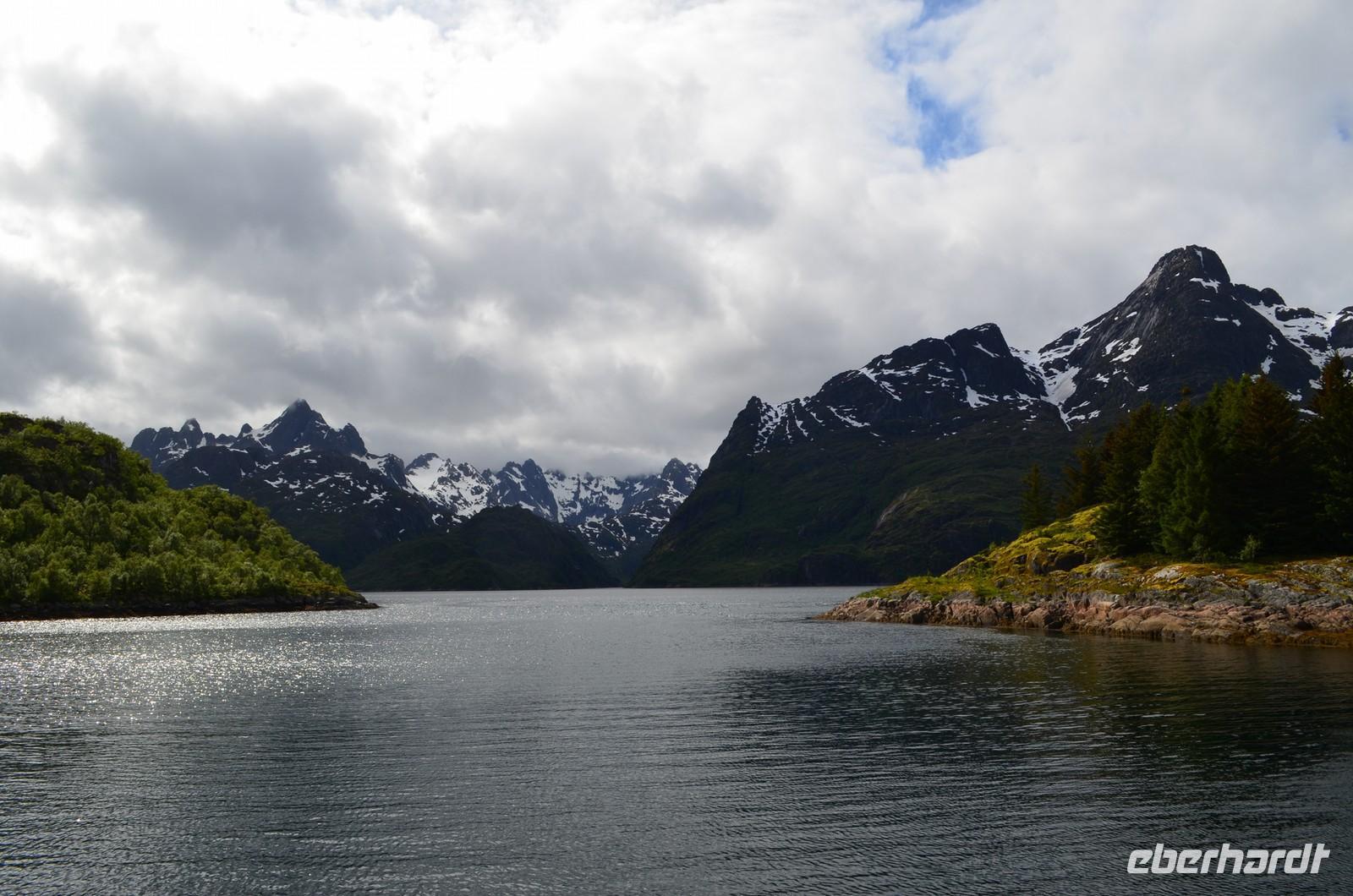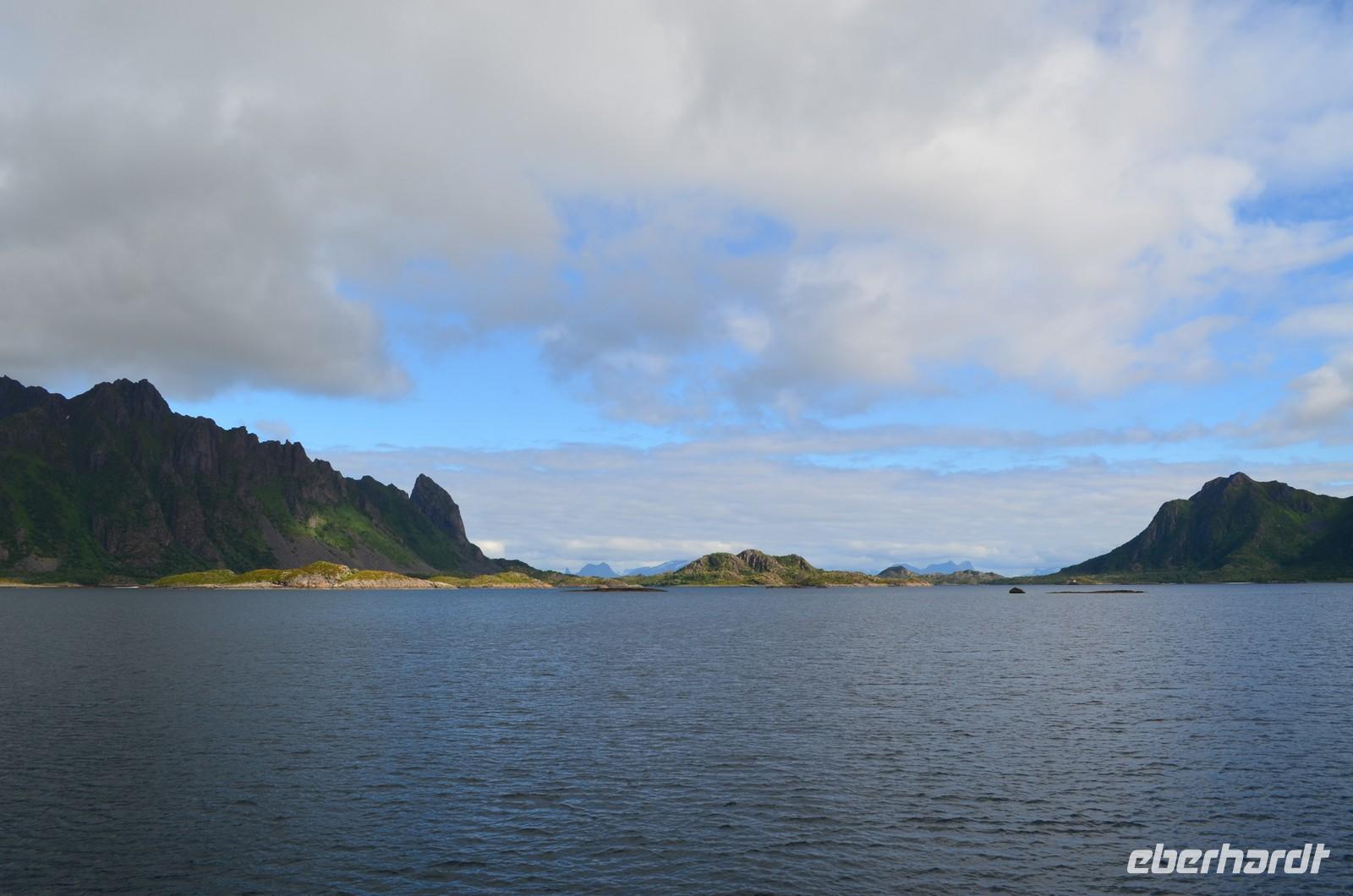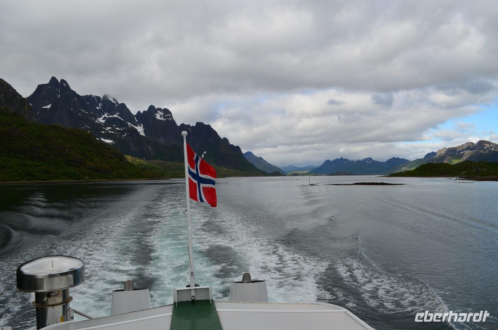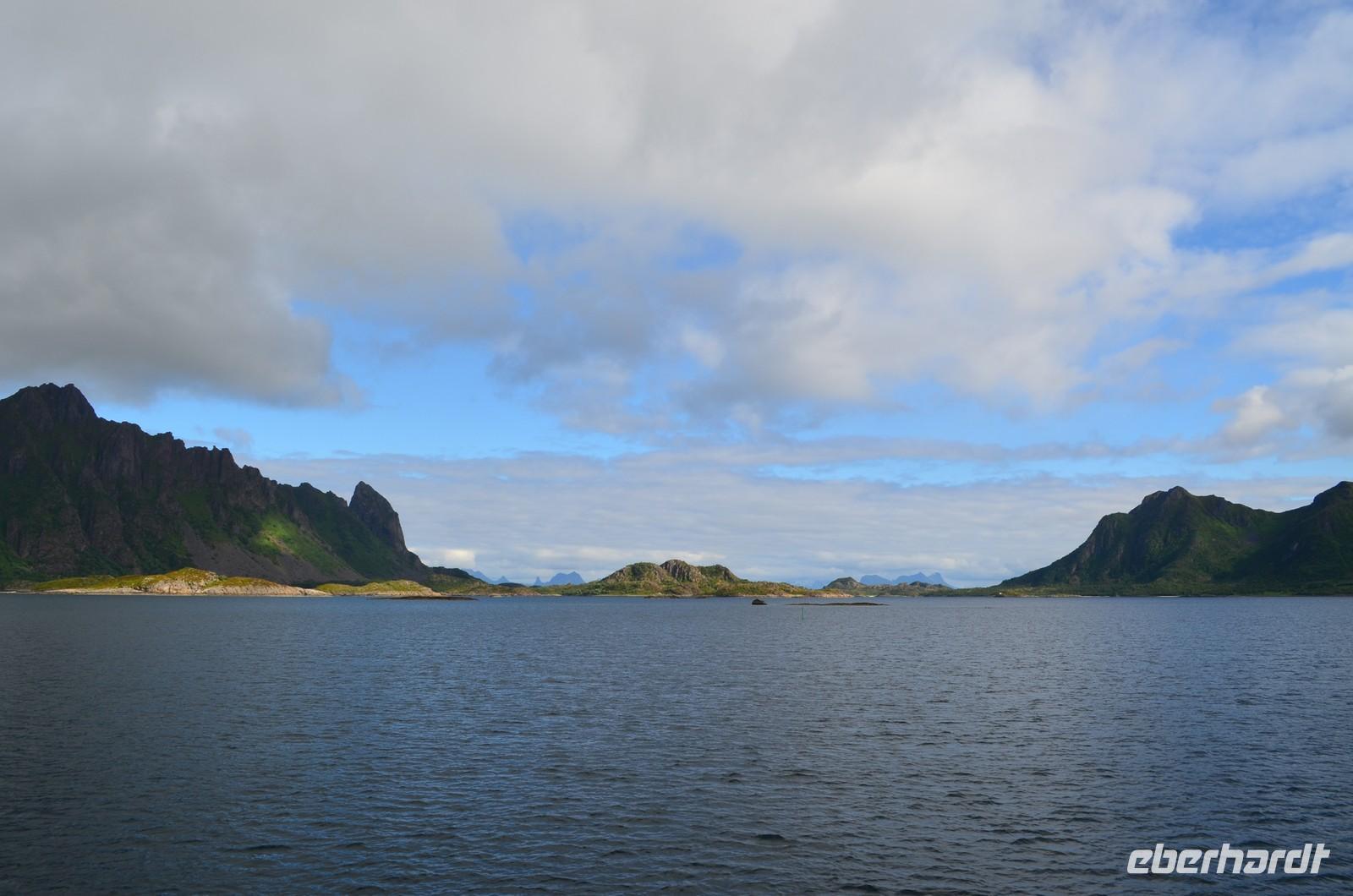 Danach treffen wir uns zum gemeinsamen Boarding unseres Charterschiffes. Das schöne Wetter hat uns wieder eingeholt und unser Kapitän legt ab zu einer tollen Panoramafahrt von den Vesteralen zu den Lofoten - durch den Raftsund, den Schwarzsund und den Trollfjord bis Svolvaer. Es gibt kostenfrei Tee und Kaffee an Bord und die herrlichen Aus- und Ansichten, das Spiel der Farben und des Lichtes sind phantastisch.