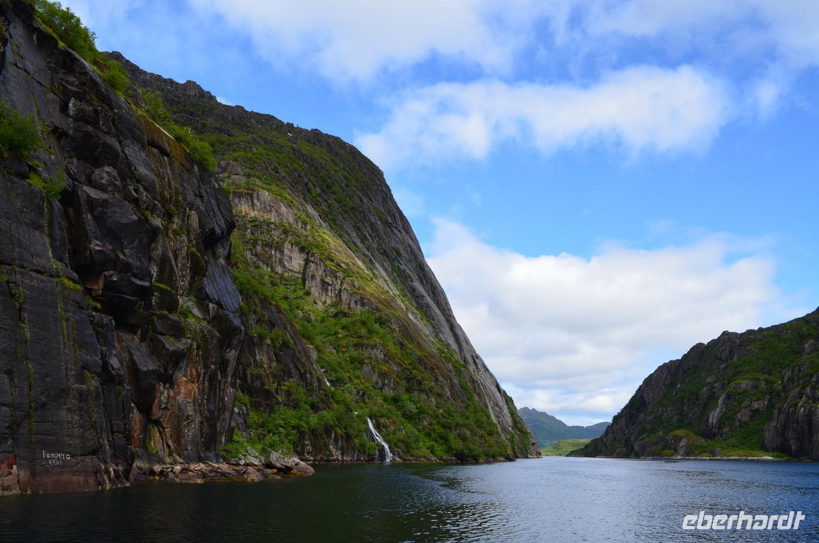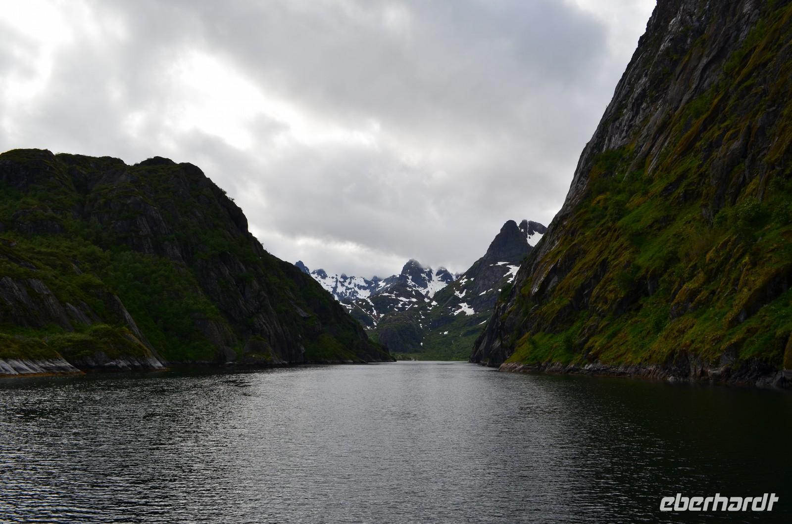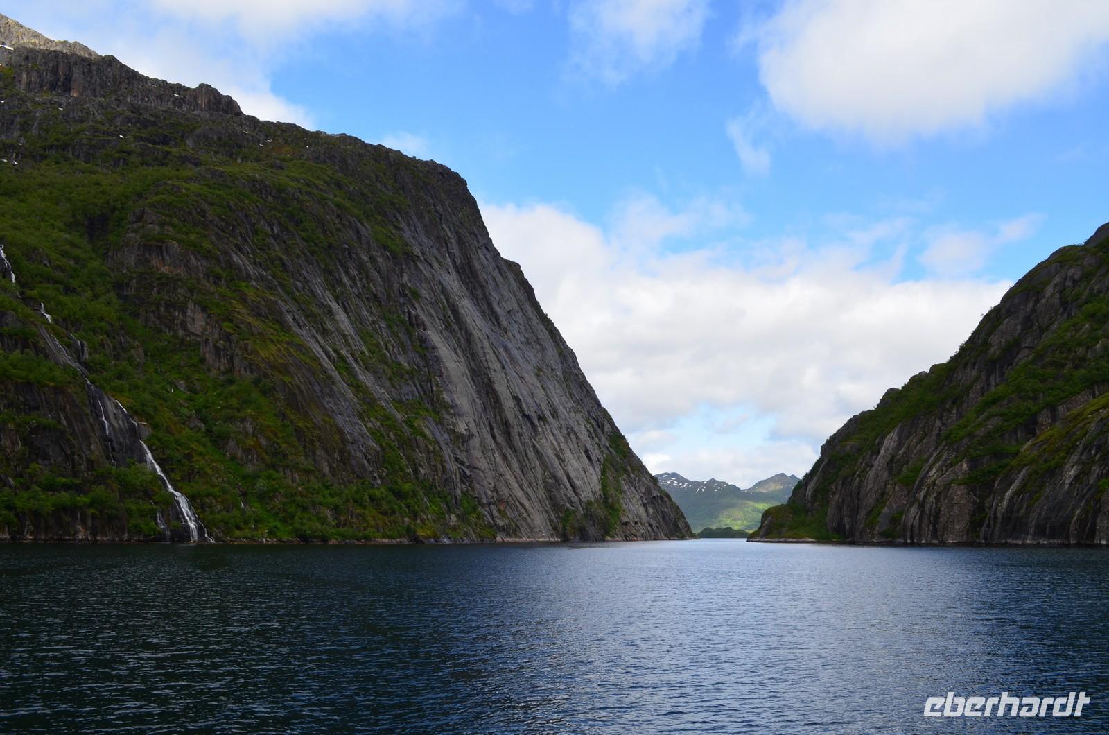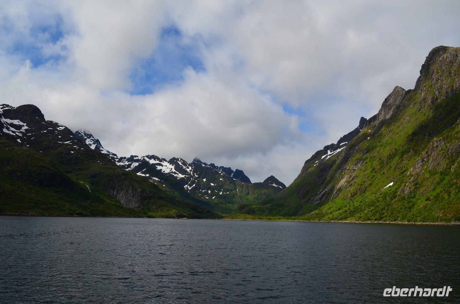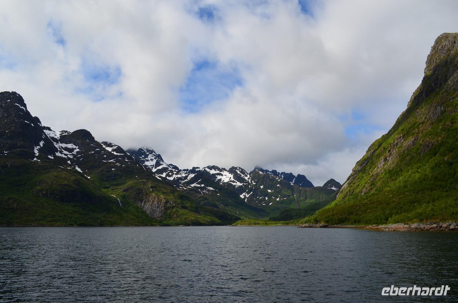 Danach treffen wir uns zum gemeinsamen Boarding unseres Charterschiffes. Das schöne Wetter hat uns wieder eingeholt und unser Kapitän legt ab zu einer tollen Panoramafahrt von den Vesteralen zu den Lofoten - durch den Raftsund, den Schwarzsund und den Trollfjord bis Svolvaer. Es gibt kostenfrei Tee und Kaffee an Bord und die herrlichen Aus- und Ansichten, das Spiel der Farben und des Lichtes sind phantastisch.