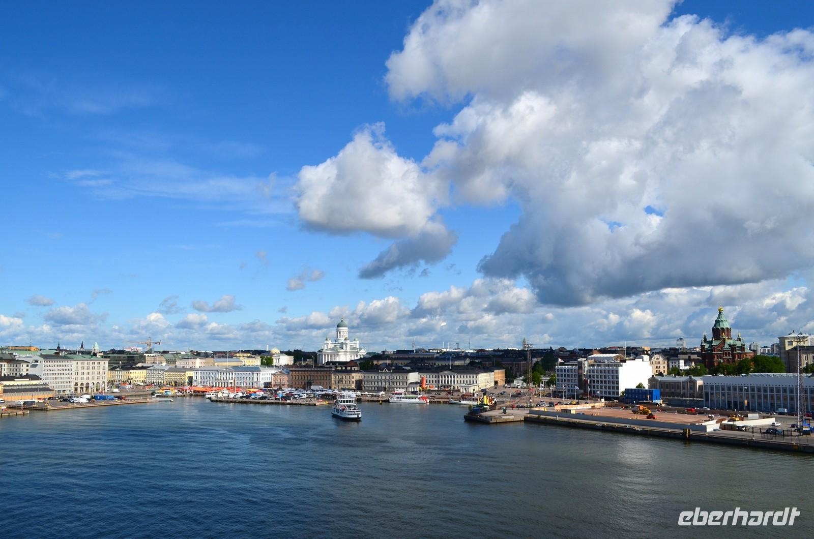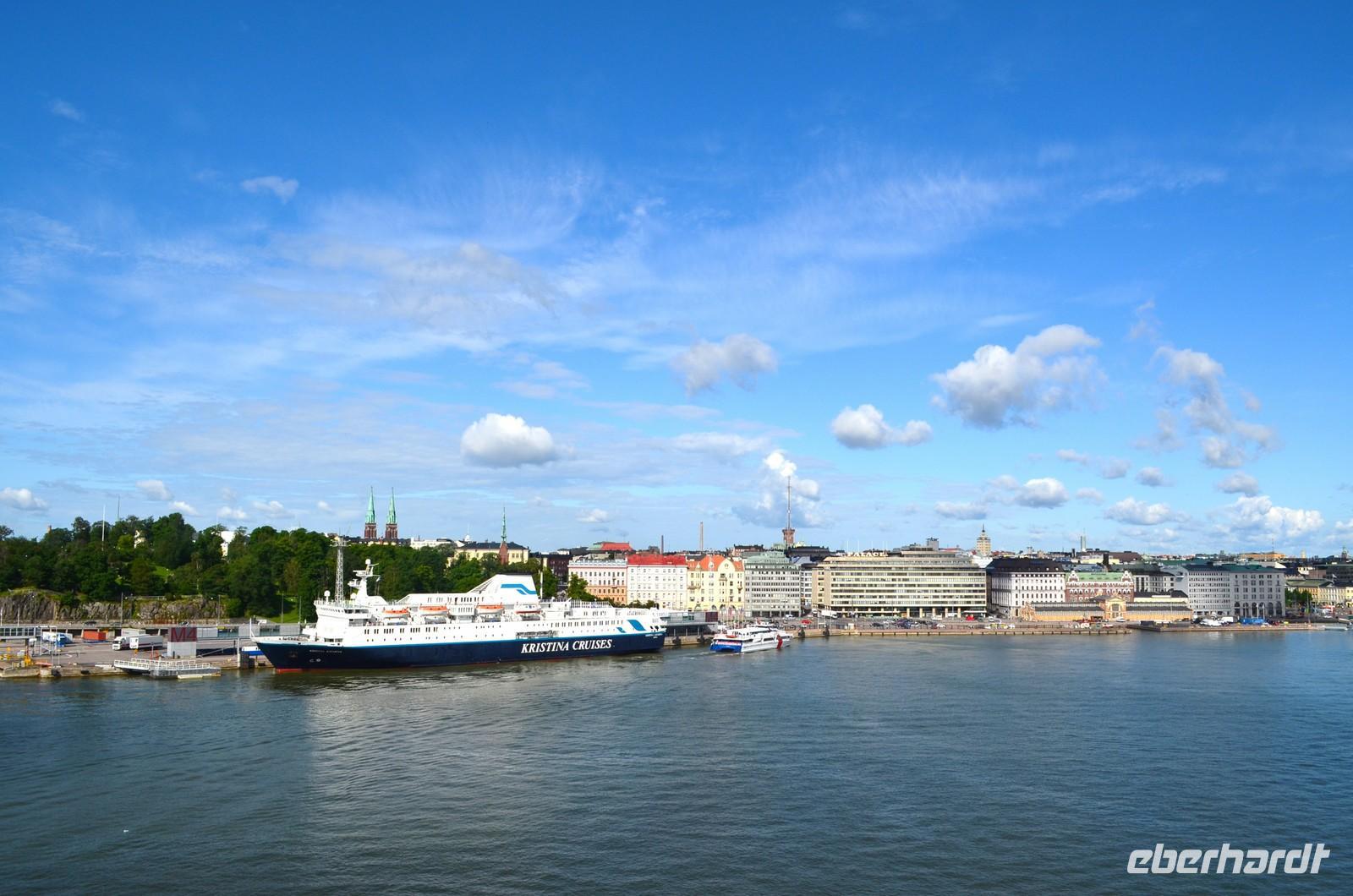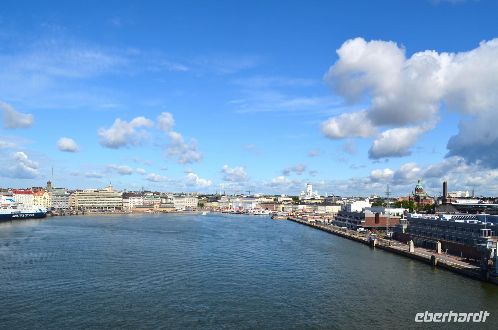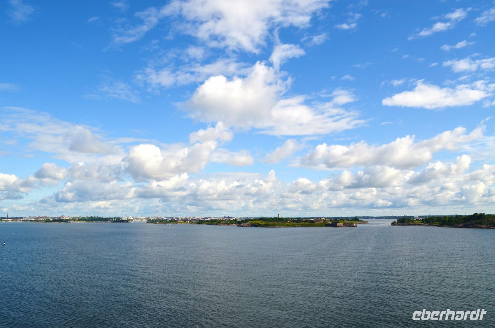 Ein neuer Tag, wir sind noch auf dem Botnischen Meerbusen. Die Sonne strahlt bei unserem ersten Spaziergang an Deck, während des Frühstücks an Bord und bei der Hafeneinfahrt in Helsinki.