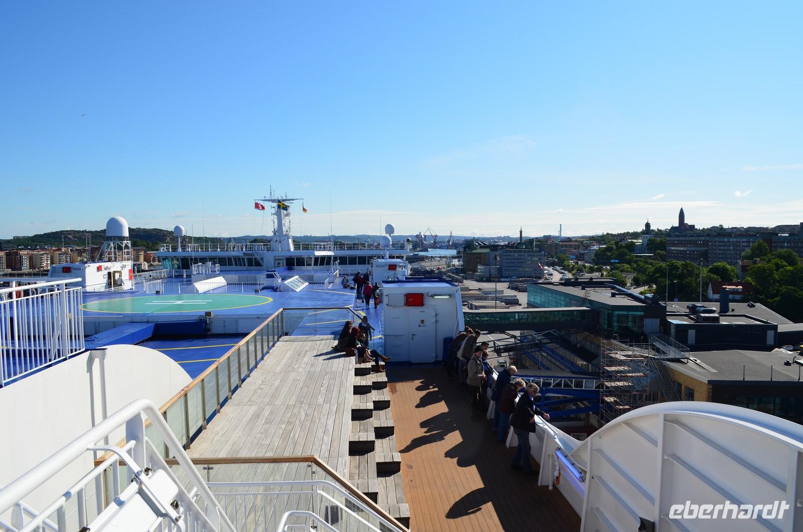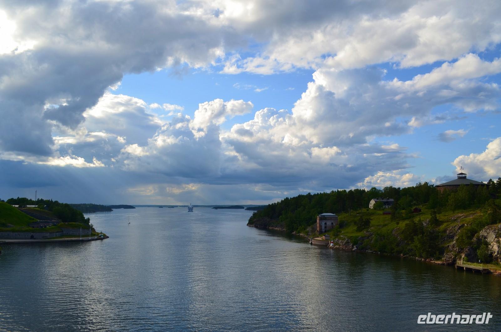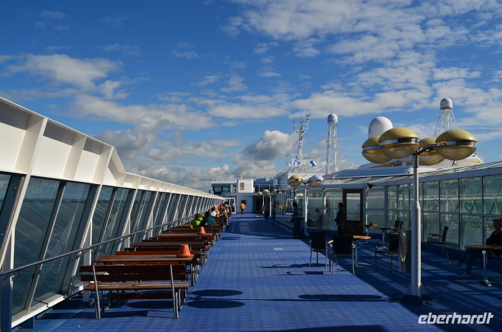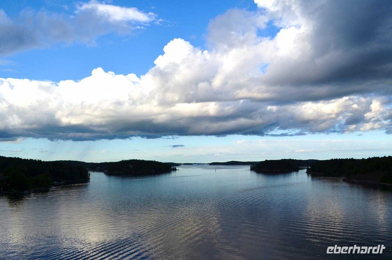 Ein neuer Tag, wir sind noch auf dem Botnischen Meerbusen. Die Sonne strahlt bei unserem ersten Spaziergang an Deck, während des Frühstücks an Bord und bei der Hafeneinfahrt in Helsinki.