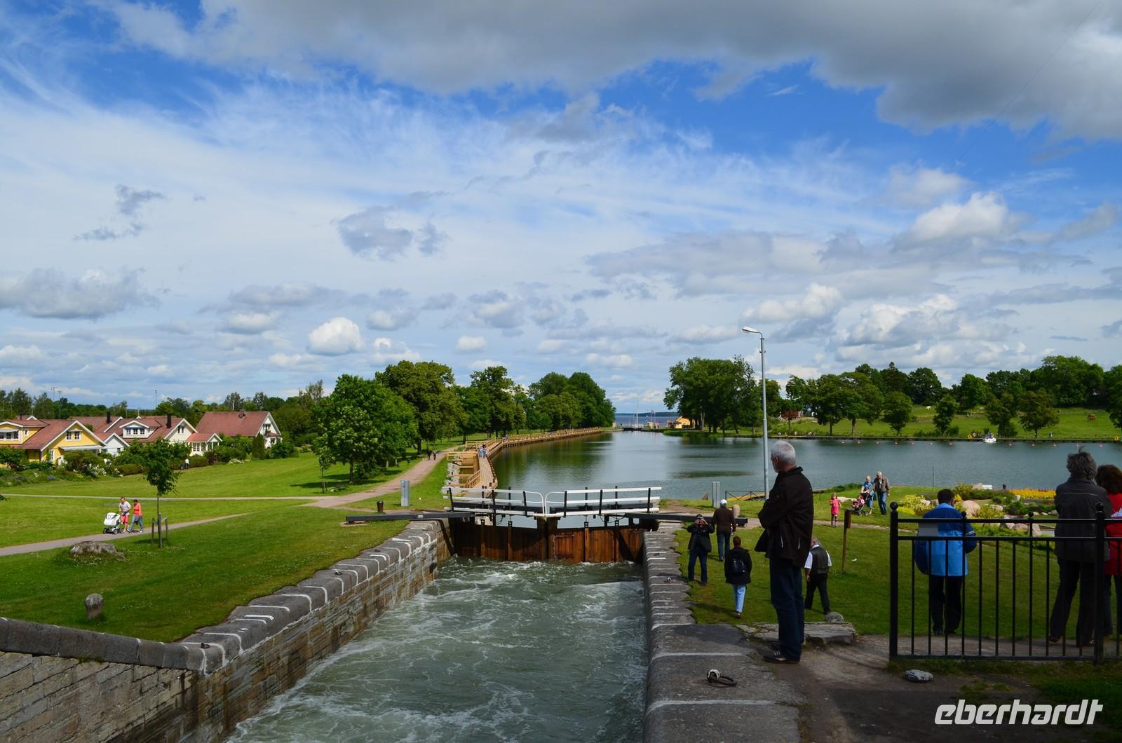 Am nächsten Morgen landeten wir selbst in Schweden und das Land nahm uns mit seiner Schönheit gefangen. Die Geschichten von Astrid Lindgren und die Filme von Ingrid Lindström erwachten bei der Fahrt durch die Landschaften Südschwedens zu neuem Leben. Vorbei am Vätternsee ging es hinauf nach Rök, wo wir den Runenstein mit den ersten Versen der Menschheit besichtigten und weiter nach Berg, an die Schleusentreppen des Götakanals - einem Meisterwerk schwedischer Ingenieurskunst und menschlicher Mühen.