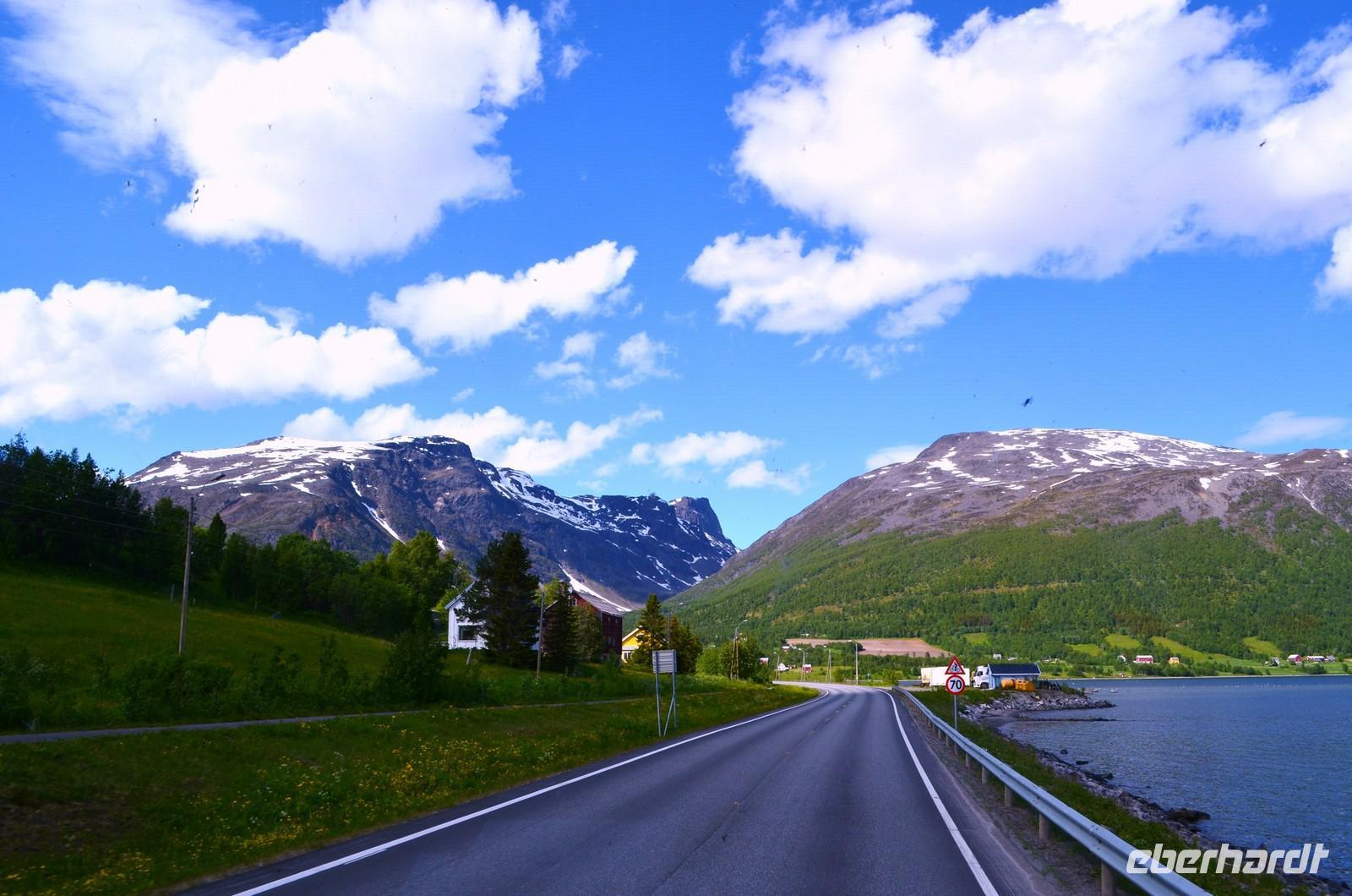 Der vierte Reisetag führt uns weiter hinauf Richtung Polarkreis. Das Wetter wieder schön - teils heiter, teils bewölkt.