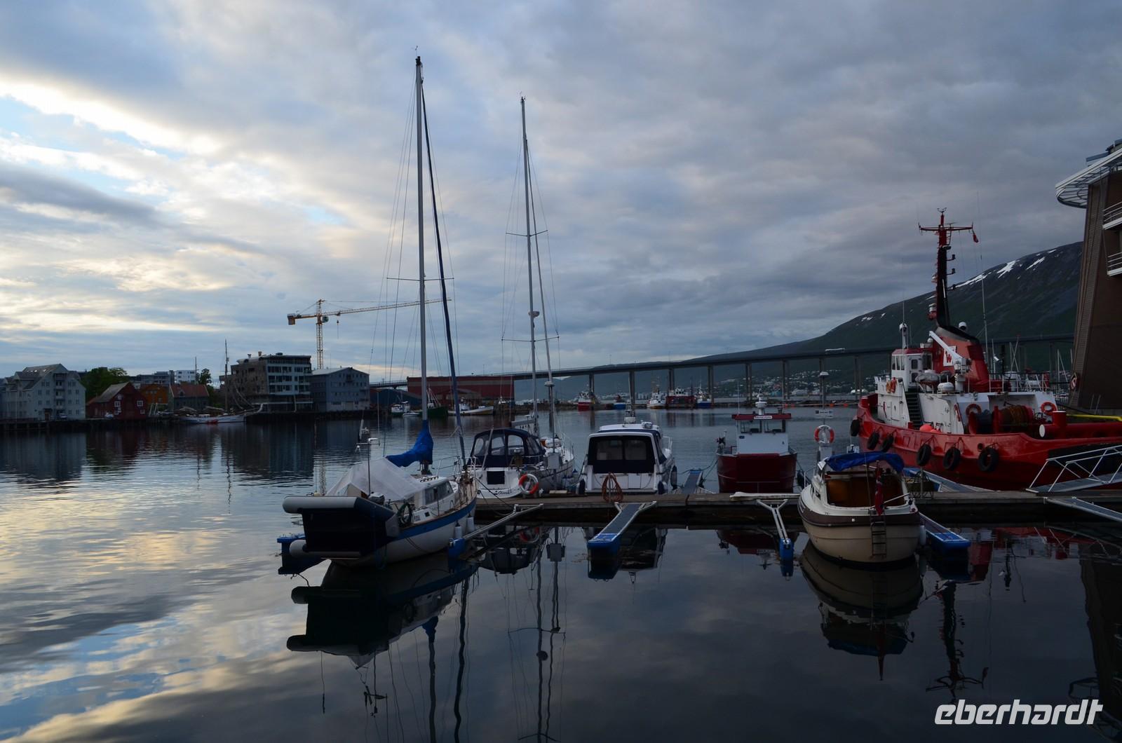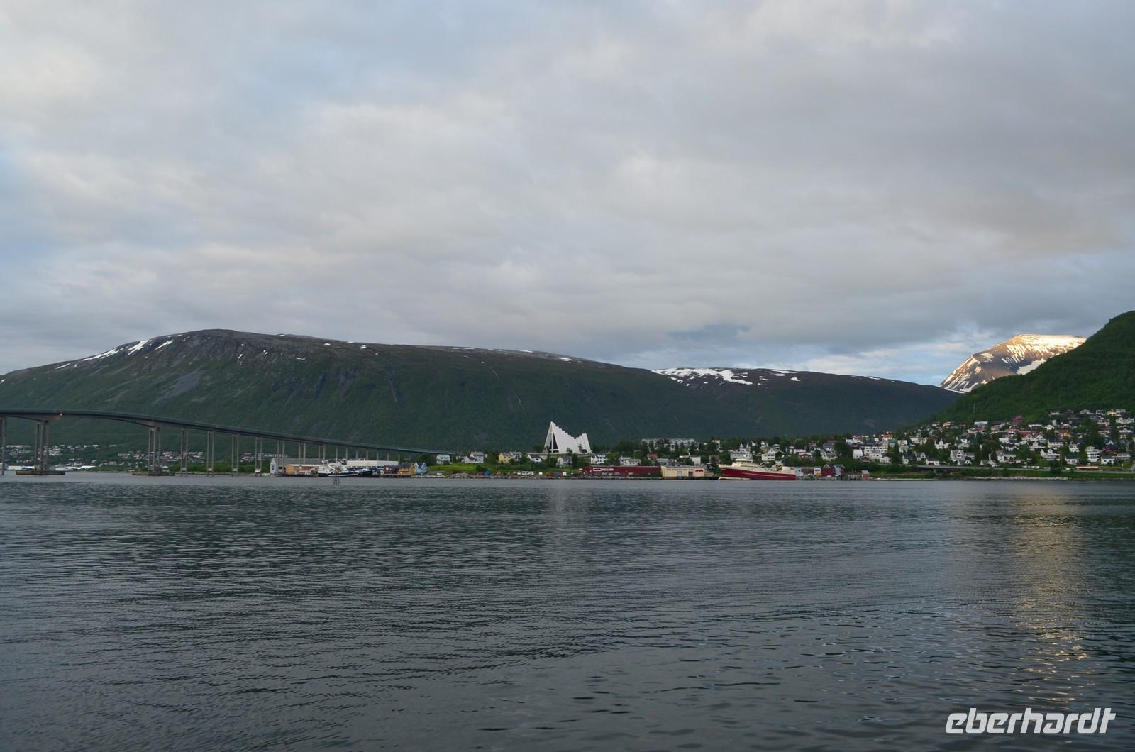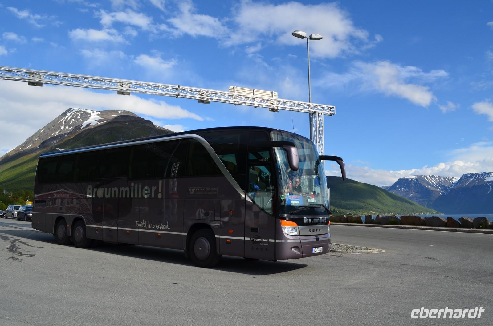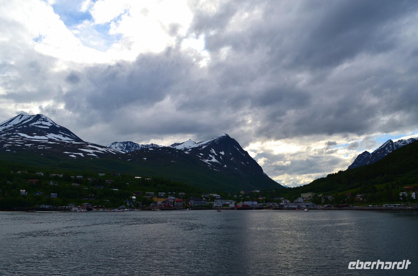 Die Weiterfahrt zum Lyngenfjord ist landschaftlich ebenfalls wunderschön und die Lyngen Alps grüßen uns in ihrer ganzen Pracht. Mit der Fähre in Olderdalen geht es dann mitten hinein in diese tollen Berge und mit der nächsten Fähre von Svensby nach Breivik sind wir dann fast schon in Tromsø, wo uns das gastfreundliche Thon Hotel Tromsø erwartet. Das Team des Restaurants bietet als kleine Attraktion noch eine besondere Vorstellungsshow.