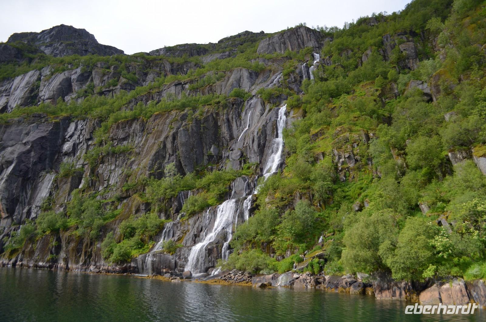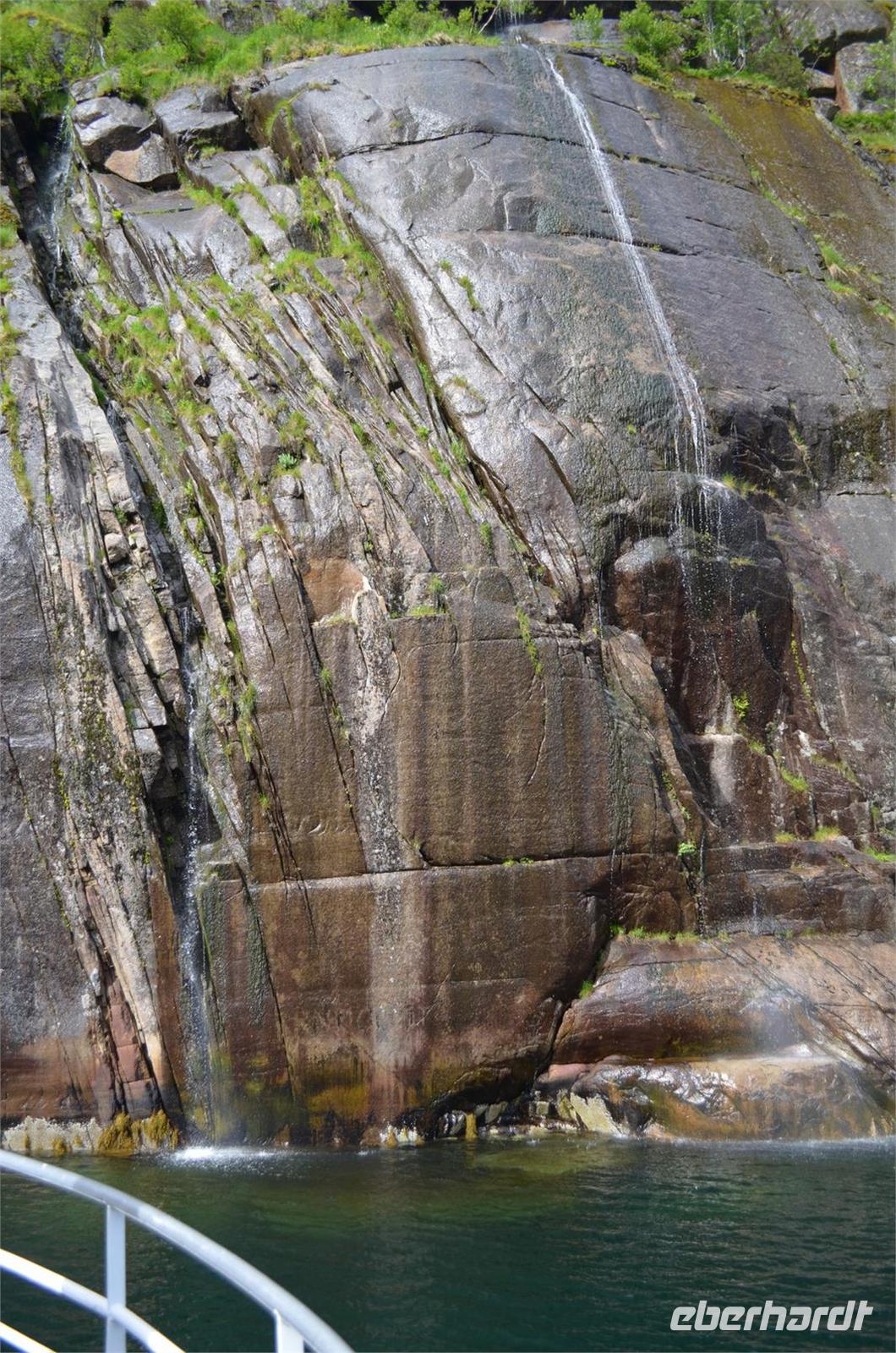 Im Trollfjord fährt uns der Kapitän unter die „Dusche“ und reicht uns das Shampoo.
