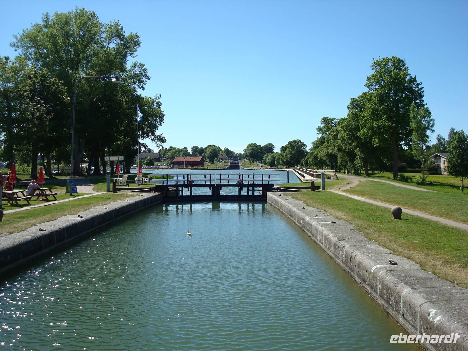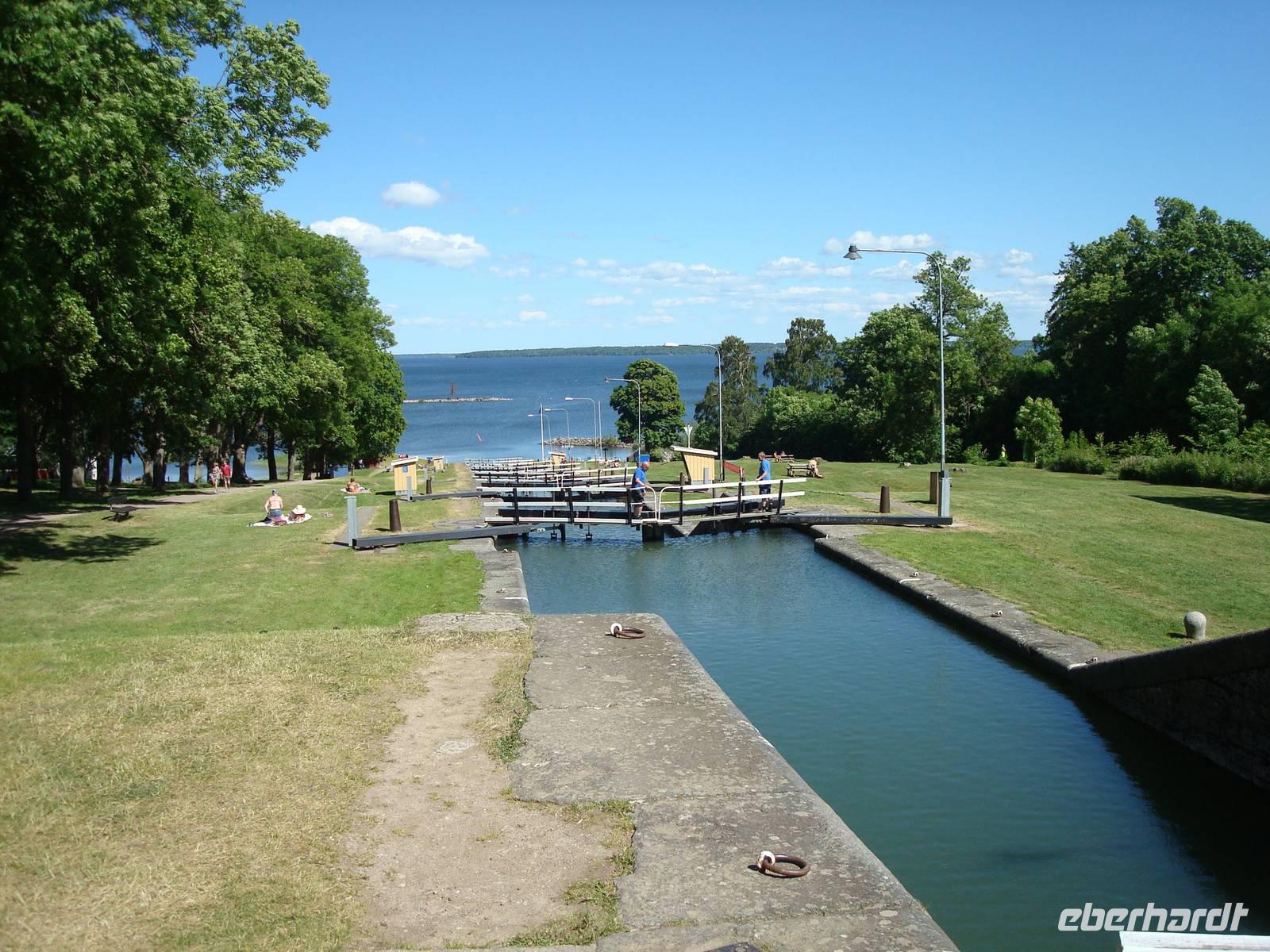 Bei Sonnenschein kamen wir am Morgen in Göteborg an. Bei einer kurzen Stadtrundfahrt lernten wir das historische und das moderne Göteborg kennen. Vorbei am Vergnügungspark Liseberg kamen wir auf unsere Straße in Richtung Stockholm, die E4. Mit Musik von ABBA fuhren wir durch das Land. Einen kurzen Abstecher machten wir nach Jonköping am südlichen Ende des Vättern. Auf dem Weg zum Streichholzmuseum erhielten wir einen kurzen Eindruck vom Zentrum des Ortes. Am See entlang durch die modernen Stadtteile erreichten wir die Hauptstrecke. Entlang des Vättern mit Blick auf den See und die Insel Visingsö stoppten wir am Rastplatz Brahehus: Zeit für die Mittagspause, einen kurzen Spaziergang zur Ruine des ehemaligen Herrensitzes des Grafen von Brahe und für einen kleinen Blick in eine Werkstatt zur Herstellung von Polkagris. Nach kurzer Fahrt vorbei am Kloster Vreta kamen wir an eines der berühmtesten Bauwerke Schwedens - den Götakanal. In der Schleusentreppe von Berg konnten wir leider kein Schiff beim Schleusen beobachten, staunten aber über die bauliche Höchstleistung für diese Zeit. Es war außerdem genug Zeit, einen leckeren Eierkuchen zu genießen oder eine echte Thüringer Rostbratwurst.