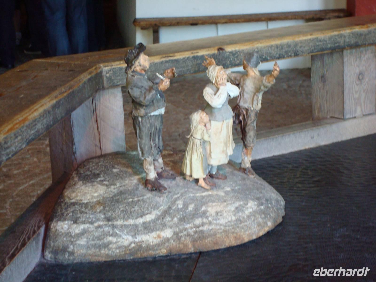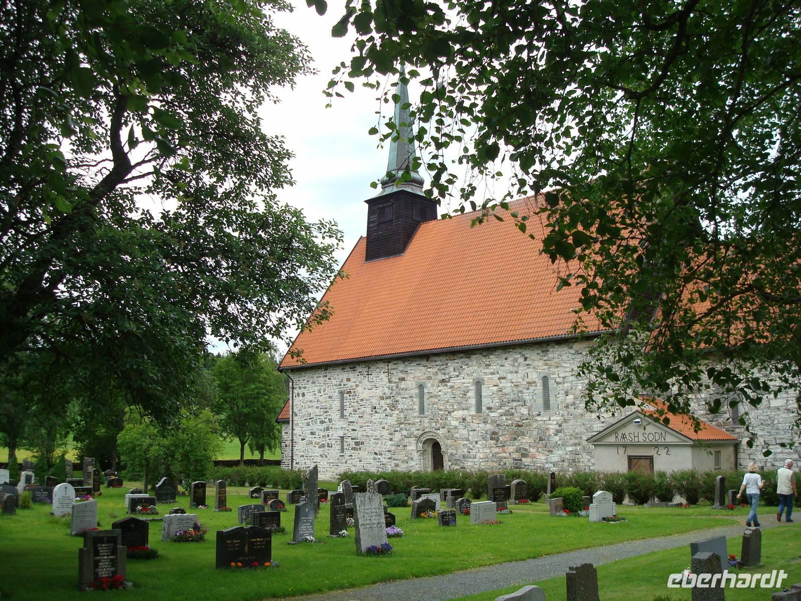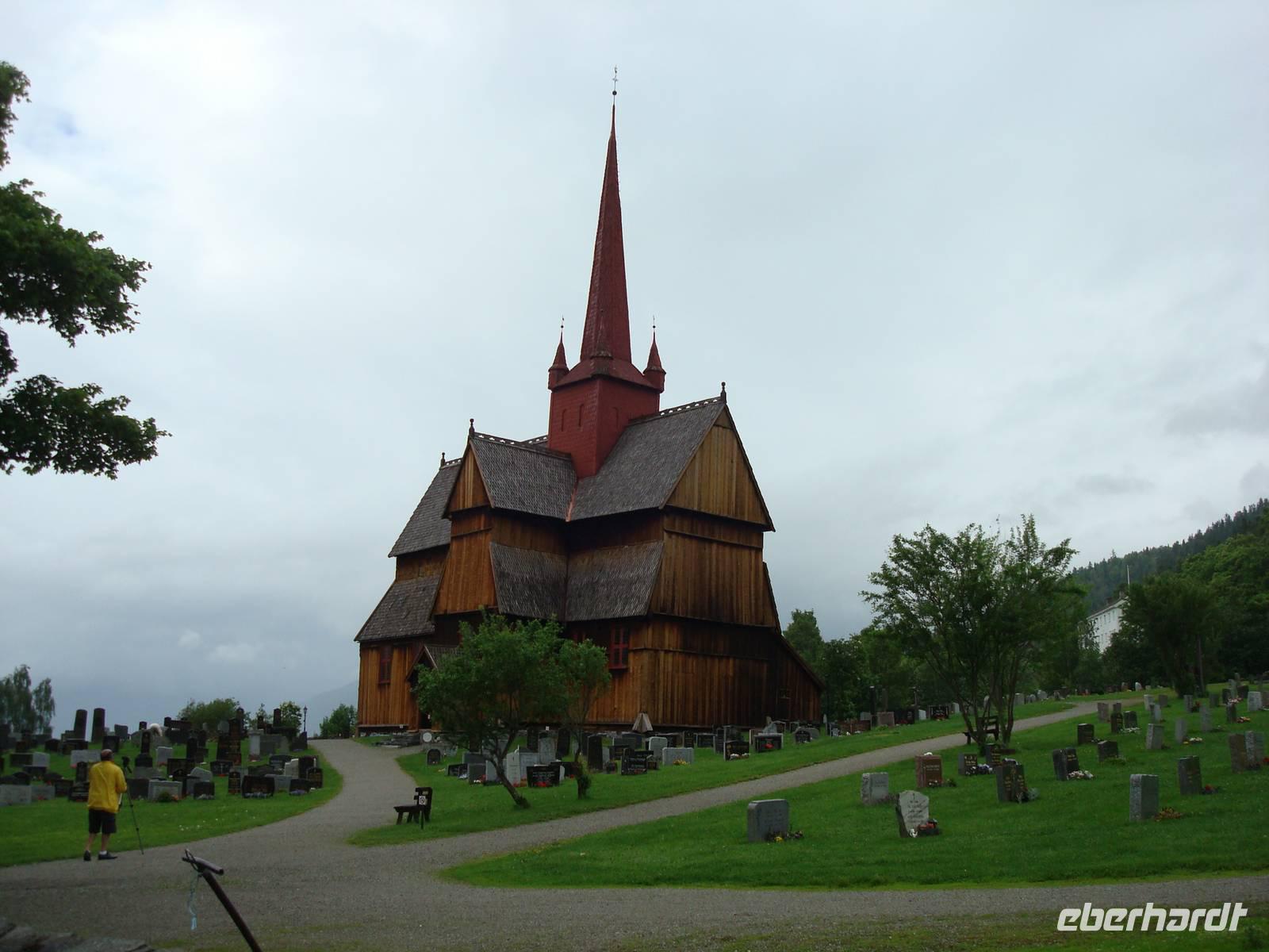 Hunderte Radfahrer säumten unseren Weg nach Oslo. Die ersten starteten weit vor uns. Gruppe für Gruppe überholten wir. Wenn wir Pause machten sausten sie an uns vorbei J In Dombas angekommen, war es dann schon Mittagszeit. Hier hieß es Trolle kaufen, in jeder Form und Preislage. Weiter ging es nun durch das Gudbrandstal. Der Lagan hatte verdammt viel Wasser. In Kvam sahen wir große Zerstörungen. Wie wir von Anne am nächsten Tag erfuhren, gab es im Winter sehr viel Schnee. Schneeschmelze und viel Regen führten überall im Land zu großen Zerstörungen. Eine Stabkirche lag auf unserem heutigen Weg. In Ringebu steht noch eine der wenigen dieser besonderen Kirchen. Bei einer kurzen Führung erzählte uns ein Junge in einheimischer Tracht die Besonderheiten der Stabbauweise und zeigte uns die ältesten Bauteile der Kirche, wie den Altar.