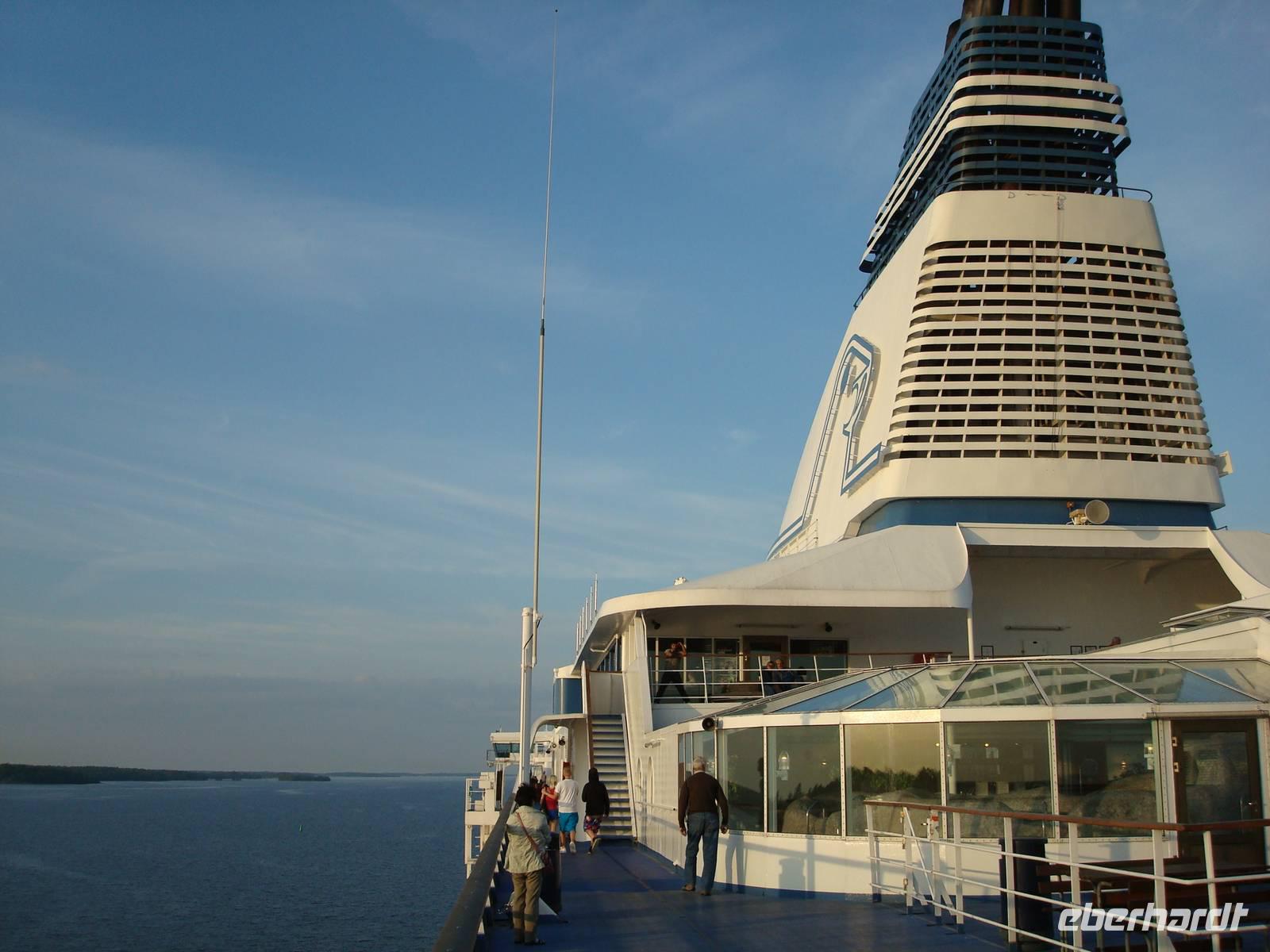 Stockholm, die Hauptstadt Schwedens erwartete uns heute. Pia begrüßte uns am Radshuset zur Stadtführung. Sie zeigte uns an diesem Vormittag die wichtigsten Sehenswürdigkeiten der verschiedenen Inseln, auf der die Stadt liegt. Auf einer dieser Inseln liegt u.a. das Freilichtmuseum Skansen, das ABBA-Museum und auch das Wasa-Museum. Diesem statten wir während dieser Rundfahrt einen Besuch ab. Wir sahen das alte Schiff und lauschten Pia aufmerksam zu, als sie über Geschichte des Schiffes und die schwierige Bergung erzählte. Wir krochen in eine nachgebaute Kajüte und versuchten, uns das Leben auf dem Schiff vorzustellen. Später, von einem Aussichtspunkt hoch über der Stadt, zeigte sie uns, wo die Wasa gesunken war und viele Jahrhunderte gelegen hatte. Wir genossen die Sicht über die Inseln der Stadt und sahen u.a. das Tonstudio von ABBA und den Vergnügungspark. In der Altstadt endete die Führung, sodass wir um 12 Uhr die Wachablösung erleben konnten. Einige Tage vorher hatte die schwedische Prinzessin Madeleine geheiratet. Es wurde weltweit darüber berichtet. Und nun waren wir in dieser Stadt und standen vor Schloss und Kirche. Es war nun noch Zeit für eigene Erkundungen, bevor es am frühen Nachmittag hieß: Abfahrt zur Silja Line, welche uns nach Helsinki bringen sollte. Bei der Fahrt zum Hafen genossen wir noch einige Impressionen der Stadt, wie z.B. das alte Stadion. Nach dem Einchecken an Bord erkundeten wir als erstes das noch größere Schiff. Die Ausfahrt aus dem Stockholmer Schärengarten zog sich über Stunden hin. Genug Zeit die Sonne, die einzigartige Natur und zwischendurch auch das leckere Buffet zu genießen. Wieder eine sehr ruhige Überfahrt. Nur ein kurzer Stopp auf den Alandinseln störte unseren Schlaf J.