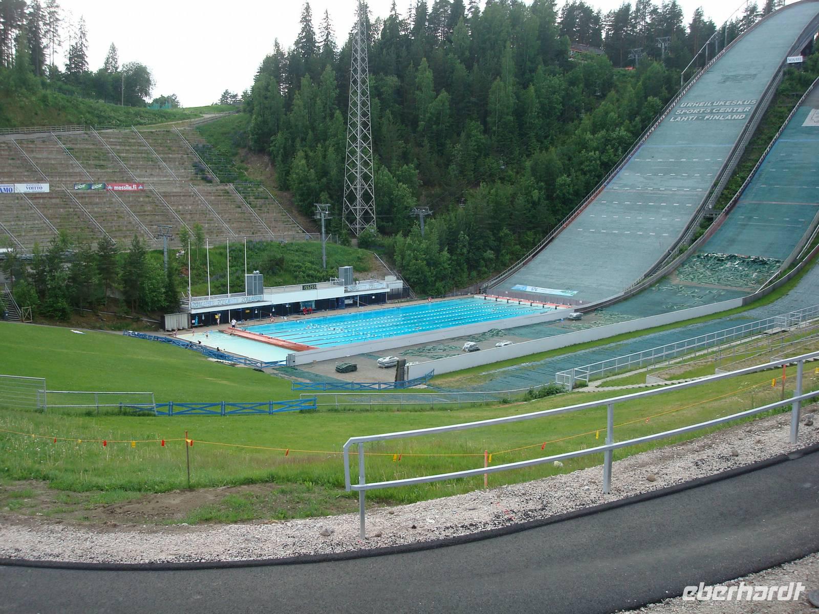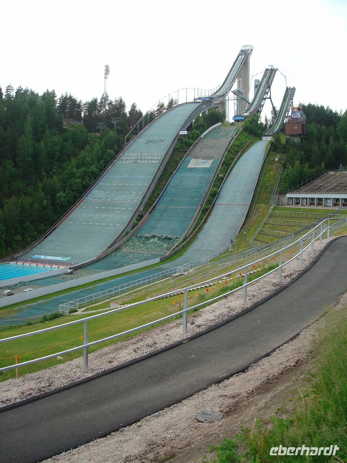 Helsinki begrüßte uns mit strahlendem Sonnenschein. Am Olympia - Terminal legte die Silja Line an. Hier wartete Dirk, unser Fahrer ab Helsinki, auf uns - Fahrerwechsel. Petra, eine gebürtige Deutsche, zeigte uns „ihre" Stadt. Felsendom, Finlandiahalle, Eisbrecher, Dom, Hauptstraßen, (Mannerheim) mit Bahnhof und natürlich auch den Teppichwaschplatz und das Sibelius-Denkmal schauten wir uns an. Wir hatten noch etwas Zeit, um u.a. zur Uspenski-Kathedrale oder zum Markt zu spazieren. Auf der Autobahn der Europastraße E75 ging es dann heraus aus der Stadt und hinein in die finnische Seenplatte. In Lathi erreichten wir das südliche Ende des Piäjärvi. Die Sibeliushalle mit ihrer weltberühmten Akustik steht unmittelbar am Ufer des Sees. Nach einem kurzen Stopp, um die einzigartige Architektur zu fotografieren, war unser nächster wichtiger Besuchspunkt die Sportanlagen von Lathi und da natürlich die Schanzen. Da wir heute ein Geburtstagskind hatten, gab es eine Runde Kaffee für alle J. Weiterfahrt bis ans nördliche Ende des Pyäjärvi, nach Jyväskylä, der Heimat des berühmten Architekten Alvar Aalto. Mit einem Architekturplan der Stadt zogen einige los, um seine Gebäude zu entdecken.