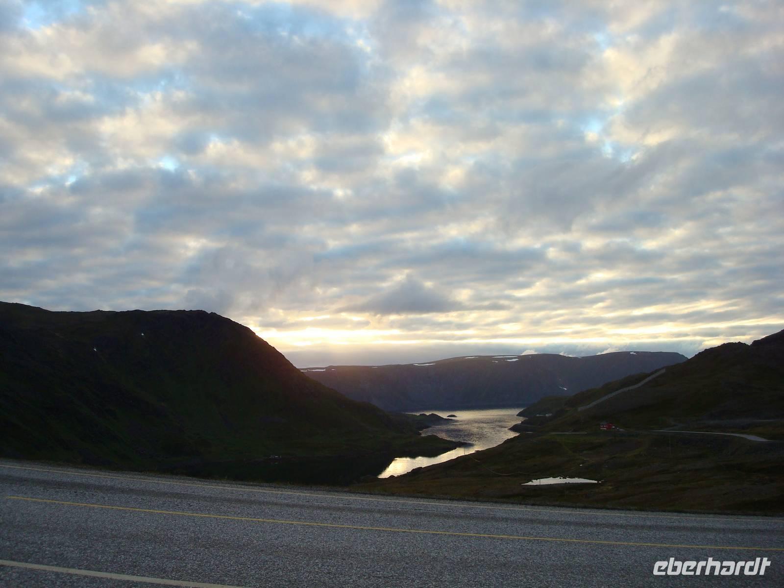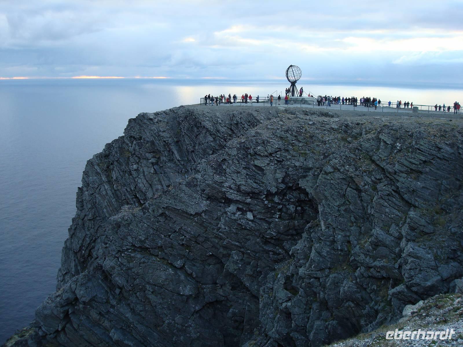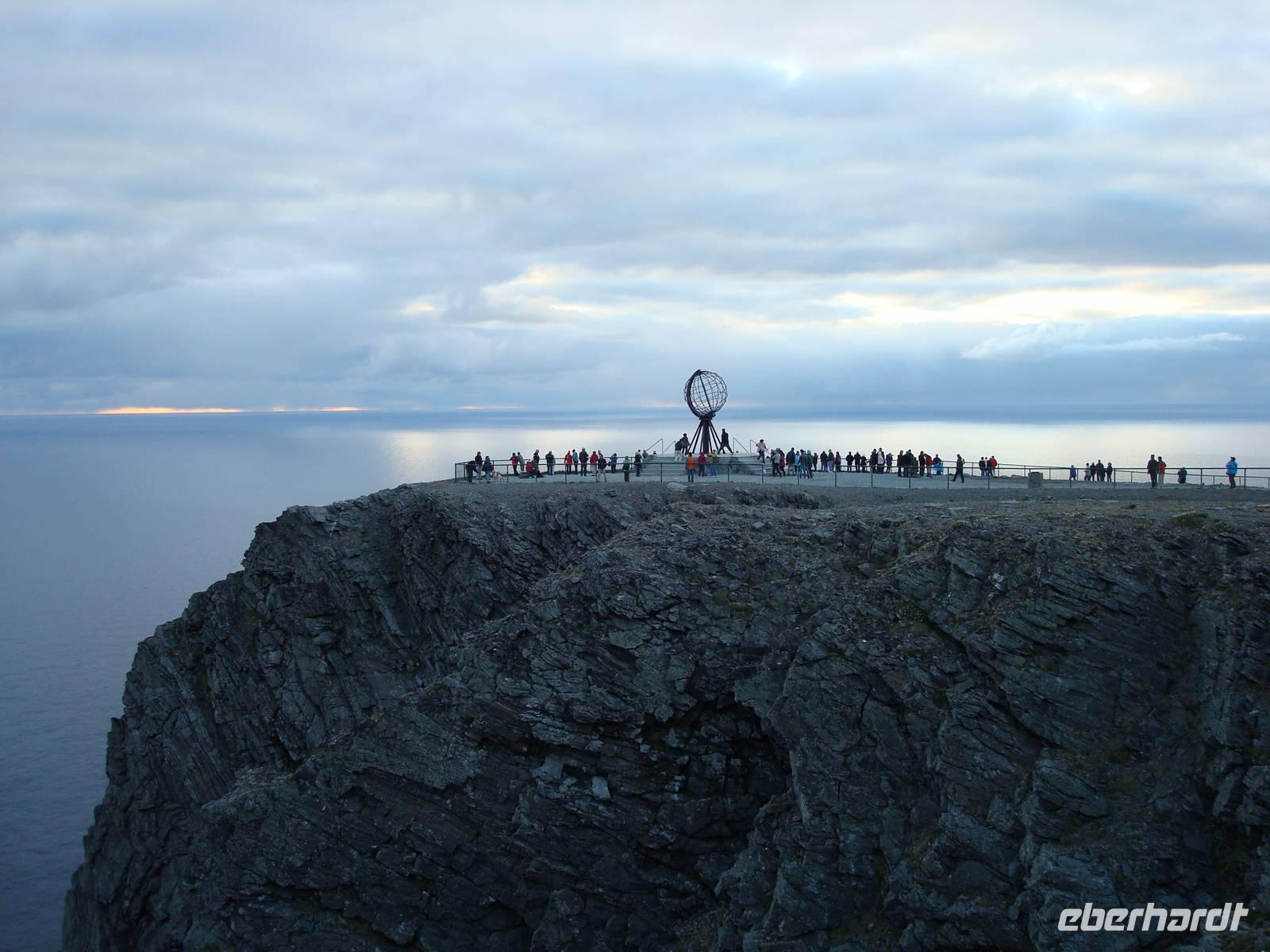 Von Luosto ging es in immer einsamere Gegenden Lapplands. Nur wenige Ortschaften säumten unseren Weg. In Saarisälkä entschlossen wir uns, kurzerhand auf den 438m hohen Kaunispää zu fahren. Wir standen da oberhalb der Baumgrenze und konnten die endlose Weite Finnlands sehen - sanfte Hügel, ausgedehnte Wälder bis hin zu den Hügeln oberhalb der Baumgrenze. An der Bärenhöhle nutzen wir die Zeit, die einzigartige Gletschermühle aufzusuchen und die Aussicht auf den Inarisee zu genießen. Außerdem kauften wir noch einmal Souvenirs von den Lappen. Die letzten Kilometer bis zur norwegischen Grenze fühlten wir uns ein klein wenig wie in einer Achterbahn. In der Ferne konnten wir hohe schneebedeckte Gipfel sehen. In Karasjok am Sapmi-Museum nutzten wir die Zeit, um Geld zu tauschen oder einen kurzen Blick in eine samische Behausung zu werfen. Wir durchquerten die ersten Kilometer Norwegens im Landesinneren - die Berge wurden nun höher, viele Seen lagen in den Tälern. In Lakselv kamen wir nun an den ersten Fjord, den Porsanger. Ihm folgten wir, stets mit Blick in Richtung Norden, denn irgendwo dort oben liegt ja unser heutiges großes Tagesziel - das Kap. Dem Wetter trauten wir nicht so richtig. So halfen wir unserem Glück nach und bauten Trolle in einer Bucht am Fjord. Ob dies nun wirklich Glück bringt? J Durch den Nordkaptunnel (6870 m lang und 212 m.u.n.) und den Honningsvagtunnel (4440m lang) erreichten wir die Insel Mageroy. Vor Honningsvag lag ein Kreuzfahrtschiff - „The World". Wie wir noch erfahren sollten, kam wohl einen Tag später die „Queen Mary 2" nach Honningsvag. Nach einem guten Abendbrot im Hotel ging es mit Albrecht, einem Spanier als Nordkapfahrer, ganz hinauf. Auf dem Nordkapfelsen war es ungewöhnlich windstill, zwar bewölkt, aber nicht neblig. Die Sonne versteckte sich hinter den Wolken, schimmerte aber manchmal etwas hindurch. Um 0.17Uhr, der Zeitpunkt an dem die Sonne den tiefsten Stand erreichte, fuhren wir zurück. Auf dem Weg nach Honningsvag passierte es dann... die Sonne blinzelte tatsächlich noch unter den Wolken hervor, ein traumhaftes Bild J. Sicherlich alle zufrieden verabschiedeten wir uns zu einer kurzen Nacht.