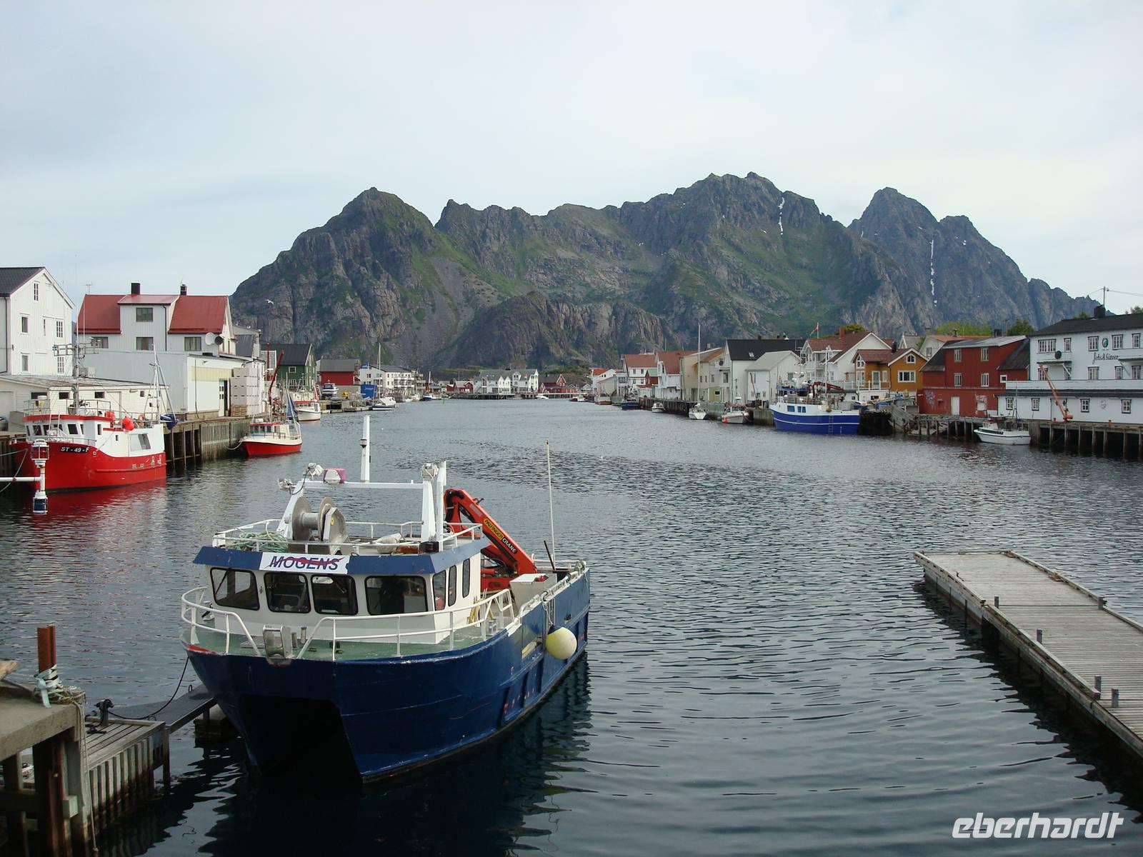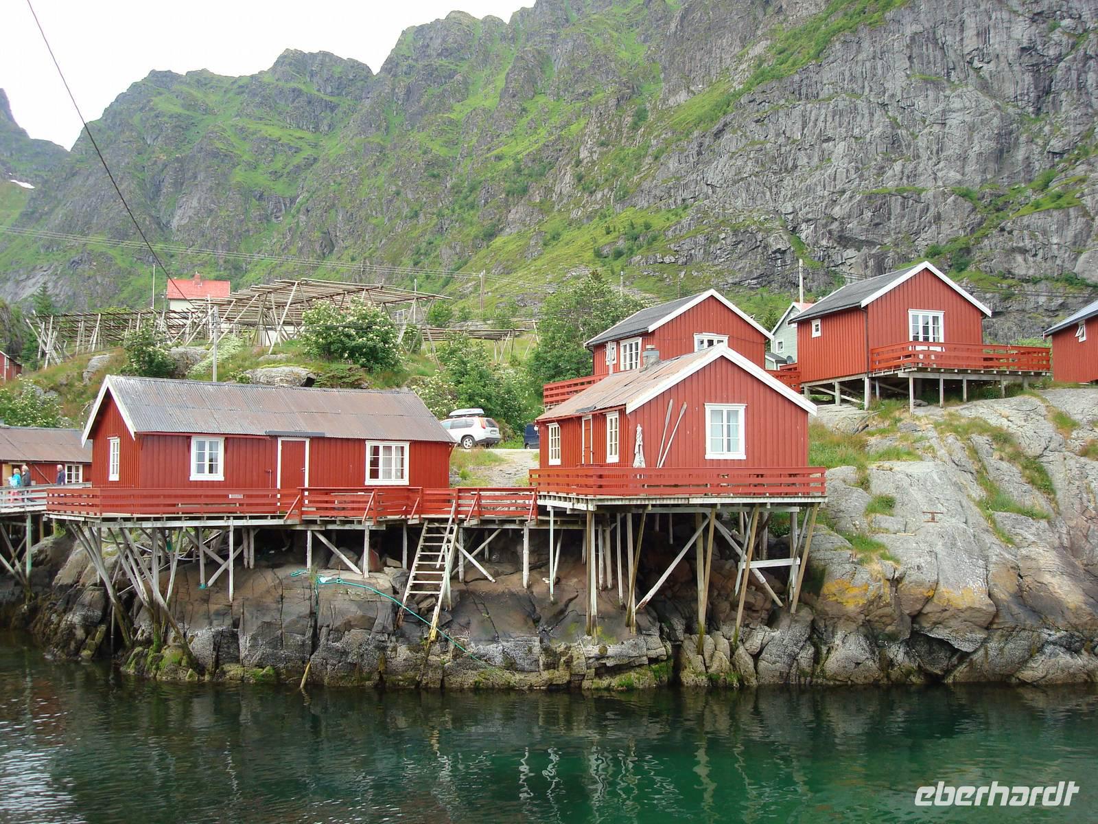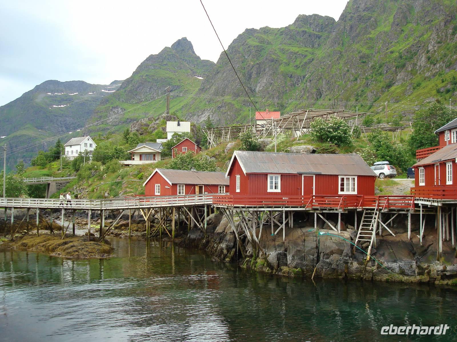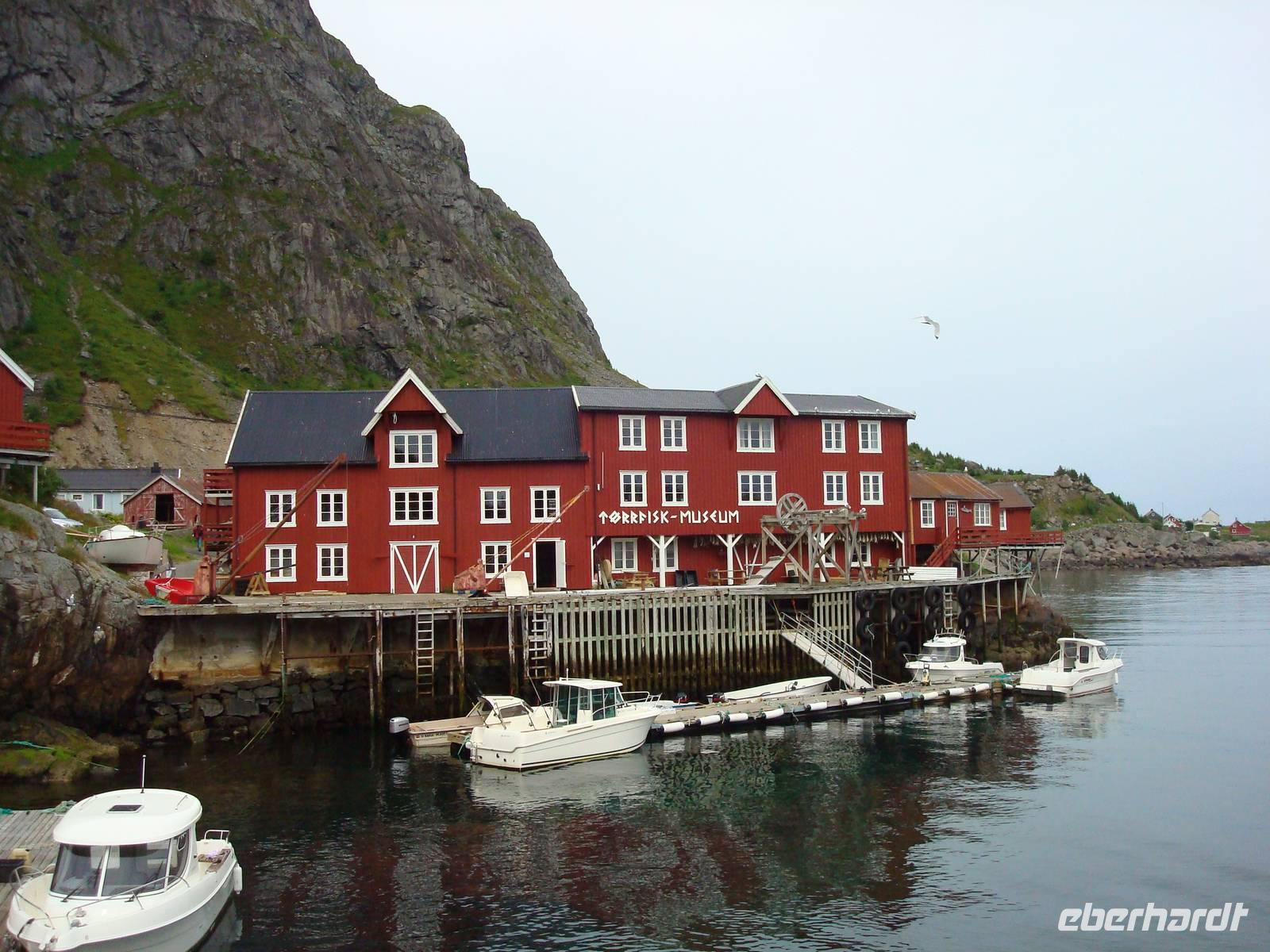 Der Ort selbst gleicht einem riesigen Museum: mit historischen Häusern, alten Fischerbooten, kleinen Gassen und Rorbuer. Im Stockfischmuseum erfährt man allerhand über die Geschichte des Fischfangs auf den Lofoten. Am Parkplatz, im Hintergrund die gigantischen Felsen, entstand unser Gruppenbild.