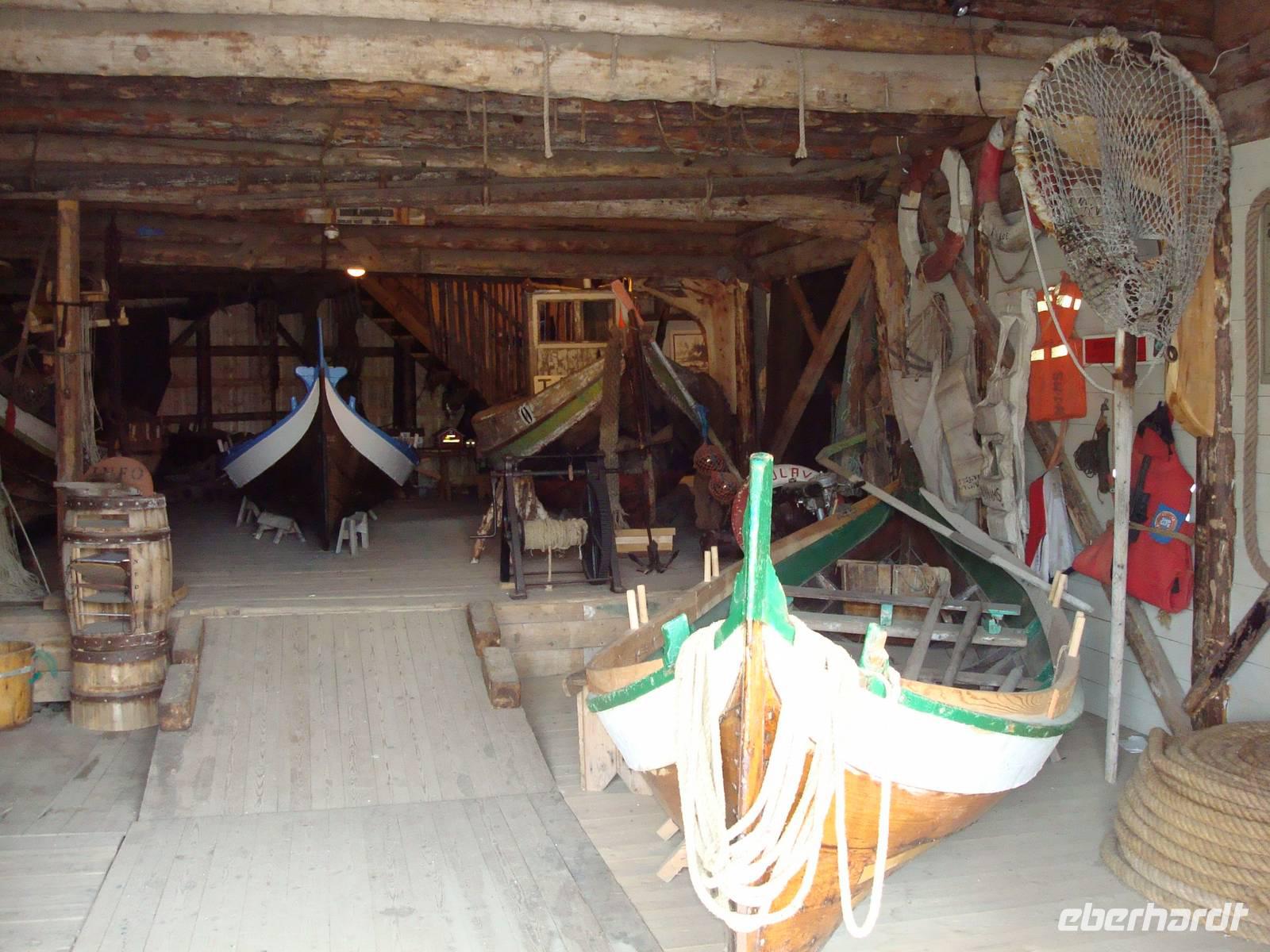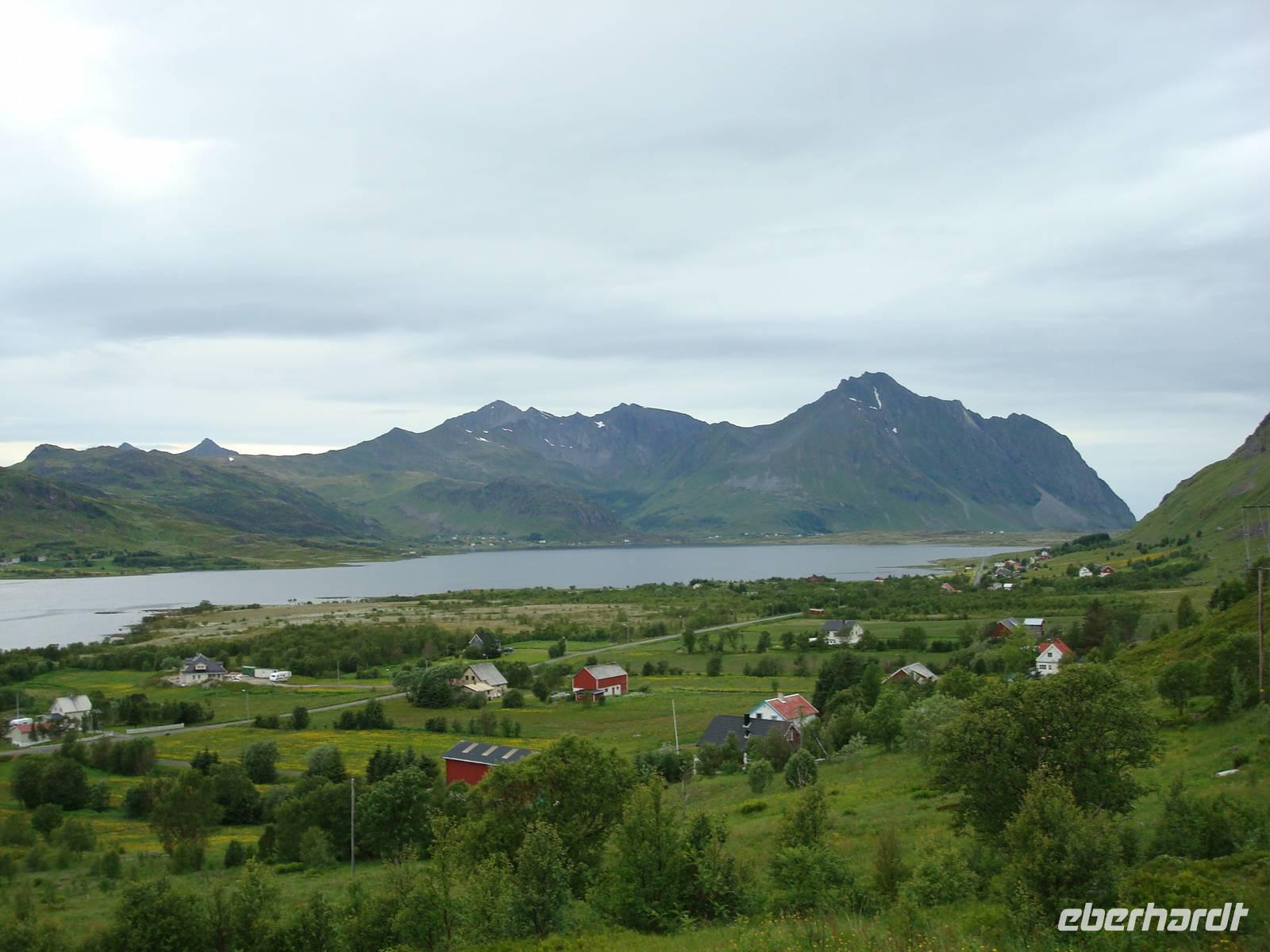 Vorbei an der Lofotenkathedrale bogen wir von der E 10 ab, um zum Venedig des Nordens zu fahren - Henningsvaer. Der Ort wirkte zeitig am Morgen noch ganz verschlafen: ein kleiner Bäckerwagen verkaufte Kringel, ein Souvenirgeschäft öffnete gerade erst, nicht viele Leute waren zu sehen, nur einige wenige, die auf einer Hafenmole ihre Frühstückspause genossen. Stockfisch hing an den Gerüsten und Möwen kreischten. Nach diesem kleinen Morgenspaziergang ging es weiter durch die beeindruckende Landschaft der Lofoten bis nach Borg, dem Zentrum der Wikinger auf den Lofoten.