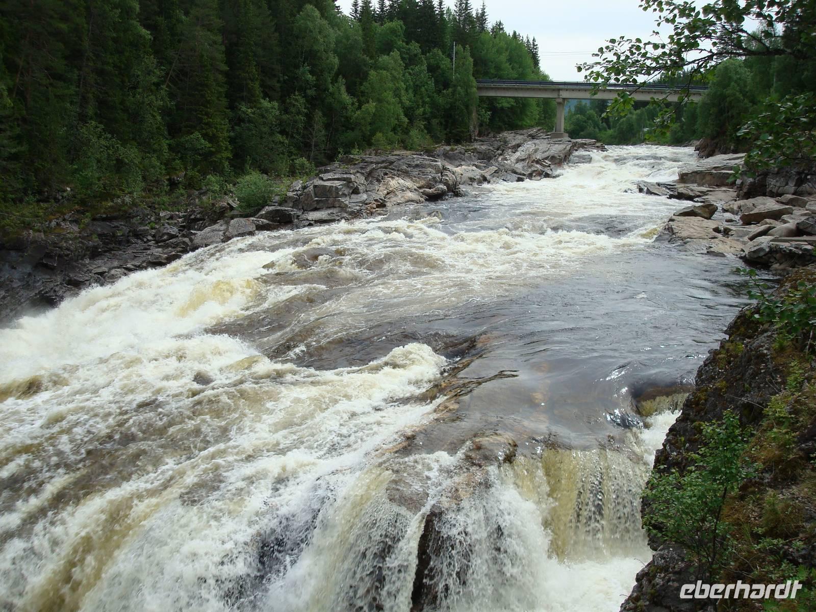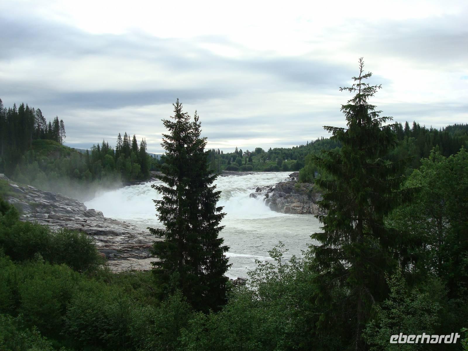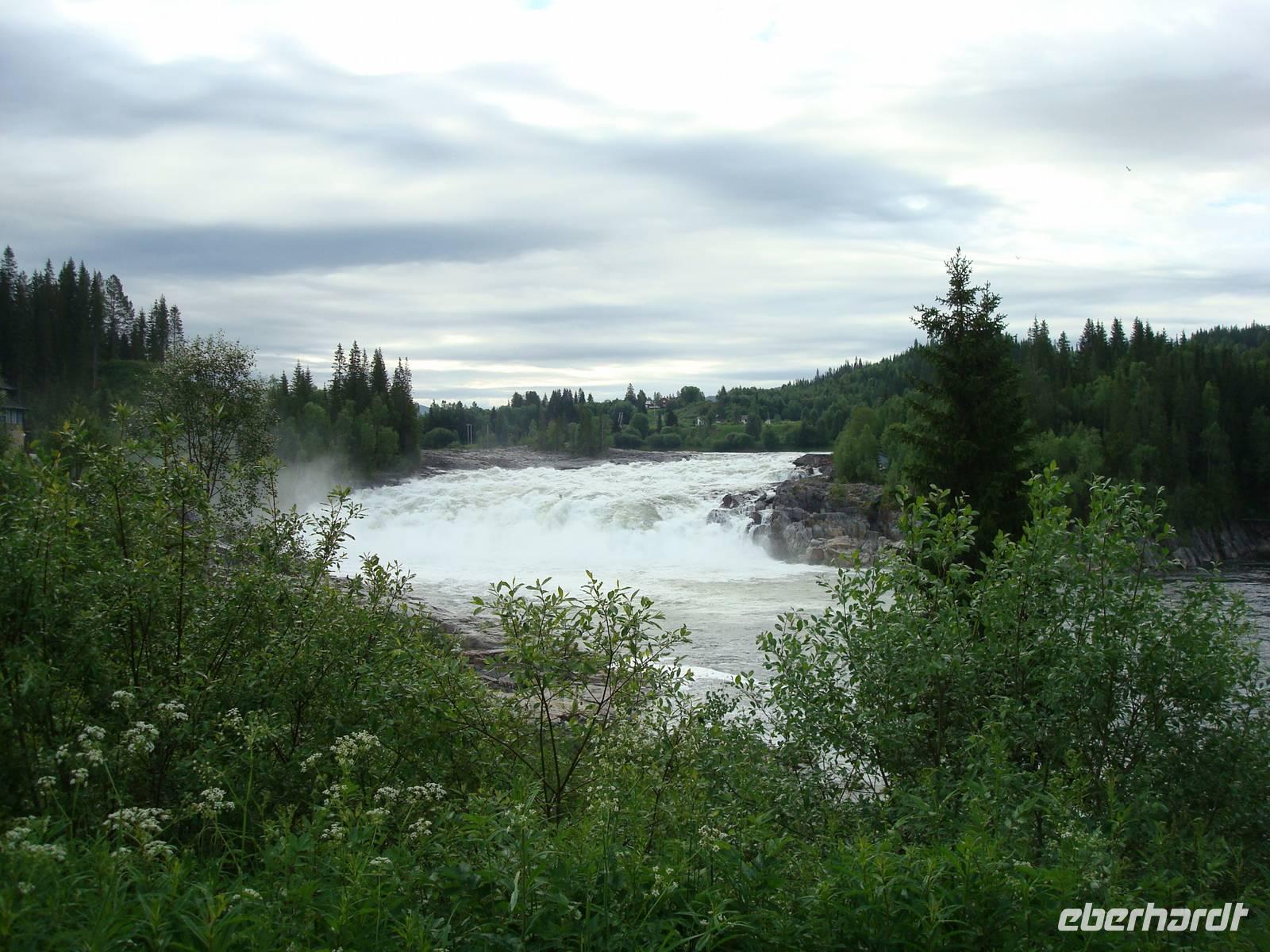 Bei strahlendem Sonnenschein führte uns der erste kurze Abstecher an diesem Tag an einen tosenden Wasserfall, den Laksfossen. Ganz besonders viel Wasser stürzte heute in die Tiefe. Es war immer noch Schneeschmelze in den Bergen, zudem hatte es viel geregnet. Den nächsten Fotostopp machten wir an einem der bekanntesten Fotomotive des Nordlandes, das Nordlicht. An der Grenze zwischen Nordland und Trondelag, wie als Tor zum Nordland, schimmert das Nordlicht über der Straße. Am Formofoss, in noch ganz unberührter Natur, war Mittagspause typisch Norwegisch: lauschiges Plätzchen, Picknick und Toiletten im Grünen J Vorbei am Snasavatnet gelangten wir nach Stiklestad, eines der wichtigsten Nationaldenkmäler Norwegens. Nun waren wir auf den Spuren Olaf's des Heiligen und folgten diesen entlang des Trondheimfjordes nach Trondheim. Vorbei am Flughafen, wo über uns ein Flugzeug startete, J kamen wir in die Stadt der Radfahrer