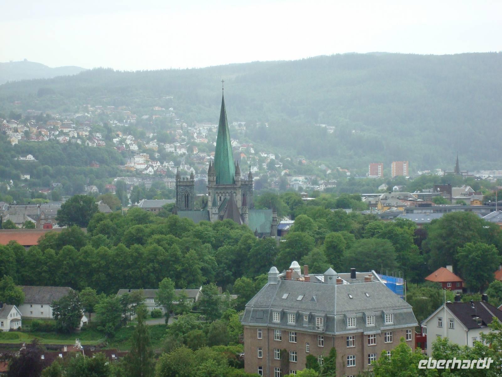 Angekommen am Dom begrüßte uns Diana zur Führung. Die Geschichte von Olaf und die Baugeschichte des Domes brachte sie uns in 30 Minuten sehr anschaulich herüber. Ohne Pause ging es sofort weiter mit Claudia zur Stadtrundfahrt. Von der Festung Kristiansten genossen wir die Aussicht auf die Stadt. Natürlich schauten wir und auch die Raritäten Trondheims an: wie die alte Stadtbrücke, den Fahrradlift und die Skansenbrücke. Im gigantischen Clarion Hotel und Congresscenter, ganz in der Nähe des Rockmuseums und der Anlegestelle der Hurtigrute, war unsere heutige Übernachtung.