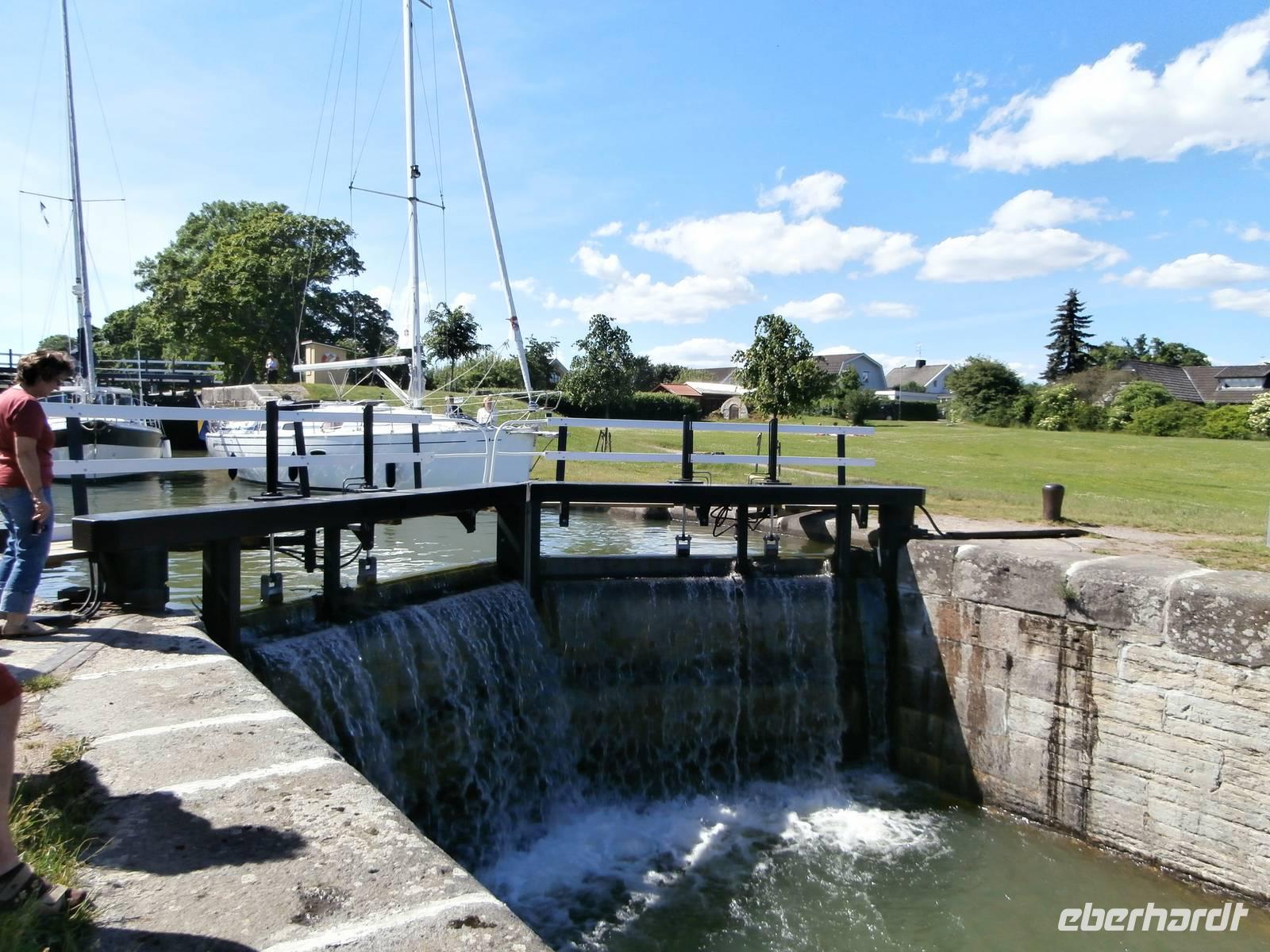 Hier können wir teilhaben an der Anhebung der Schiffe im Kanal auf ein höheres Niveau.