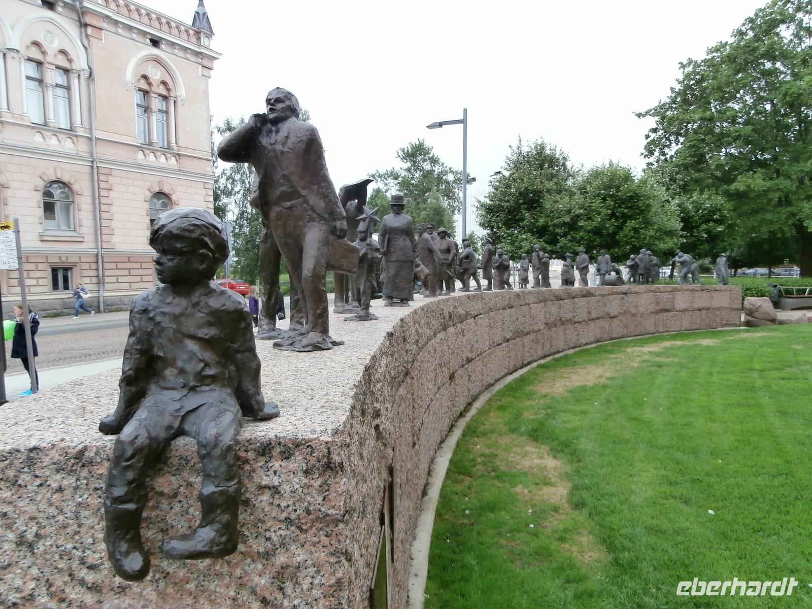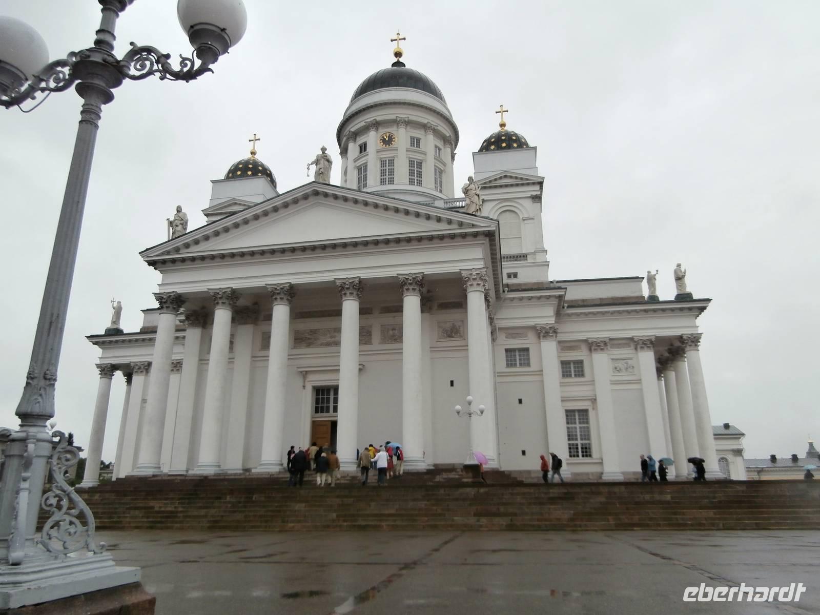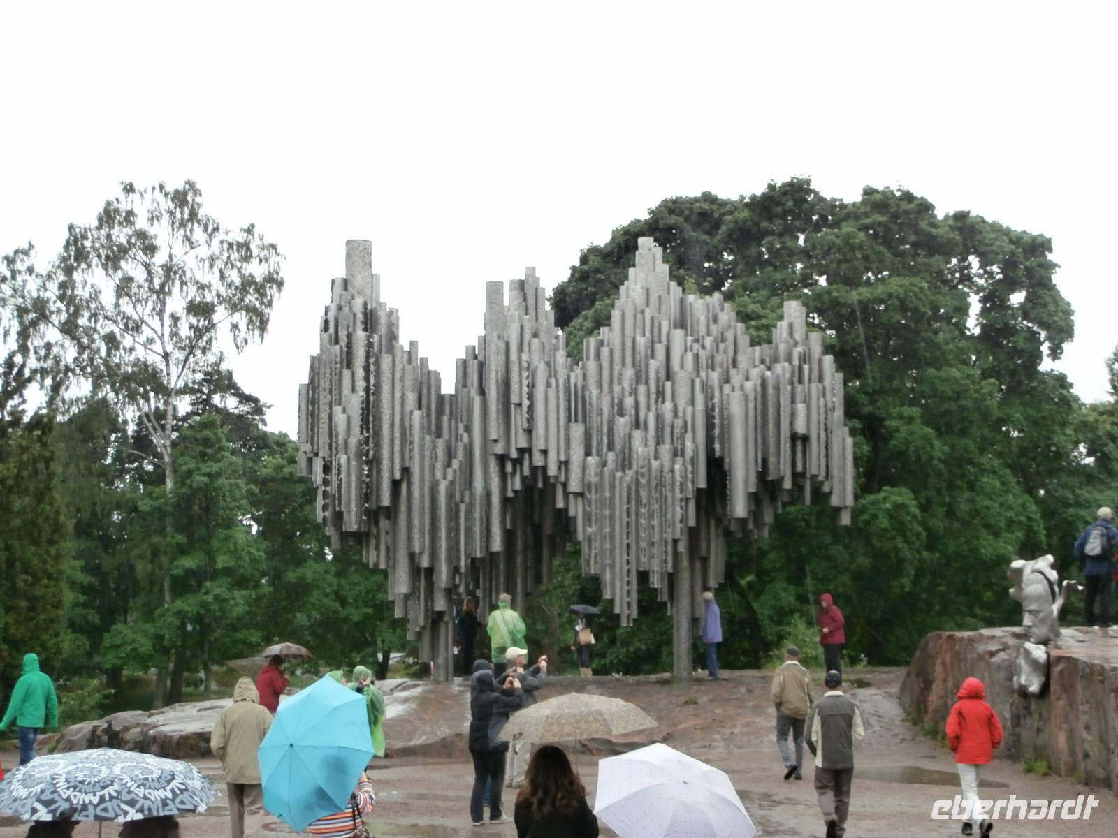 Schauerartige Regengüsse erwarten uns in Helsinki. Mit dem örtl. Reiseleiter Andre Landefort und unserem 2. Fahrer Roy brechen wir sofort nach Ankunft zur Stadtrundfahrt in Helsinki auf. Unterwegs verabschieden wir uns noch von unserem Fahrer und Chef der Busfirma, Tilo Schreiter, mit ihm sind wir von Dresden aus gestartet und er fliegt heute wieder zurück. Am Senatsplatz besuchen wir den Dom, weiter geht's zur Besichtigung der Felsenkirche. Die Uspenski Kathedrale können wir nur bei Regen im Foto festhalten, zeitlich ist uns eine Besichtigung nicht möglich. Aber am Sibelius-Denkmal machen wir Halt und bei Regen muss fotografiert werden. Nach Freizeit und Mittagsimbiss geht es aus Helsinki heraus und weiter nach Lahti, an den Schanzen legen wir unseren nächsten Halt ein. Bei viel Regen sehen wir die Schanzen und nach einer Kaffeepause setzen wir die Fahrt fort. Herr Ast, unser Reisegst auf der 2. Reihe, meldet lautstark einen Elch und auch ein Bär wird uns von Frau Wenzel gemeldet, welch eine Aufregung im Bus. Am Abend kommen wir in Jyväskylä im Sokos Hotel Alexandra an.